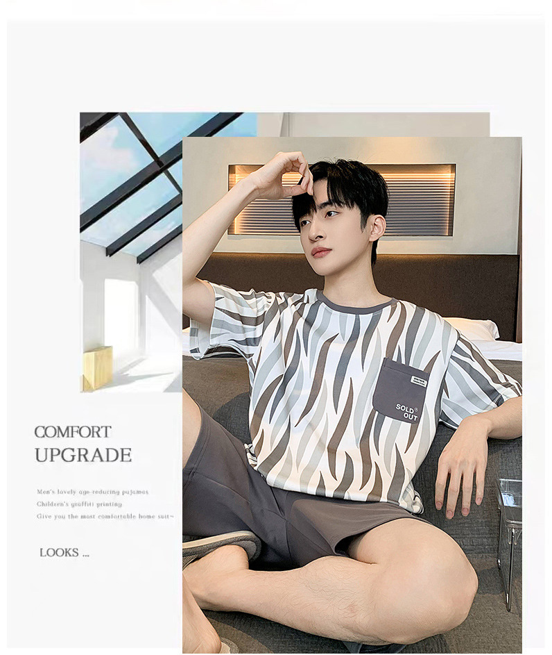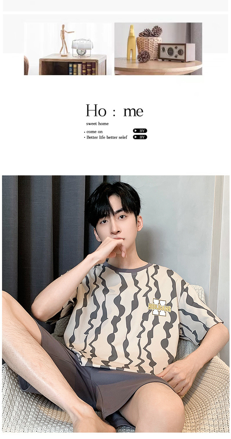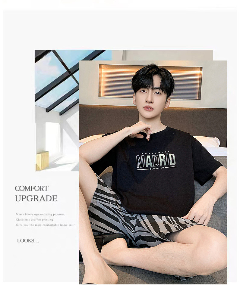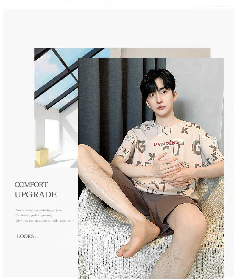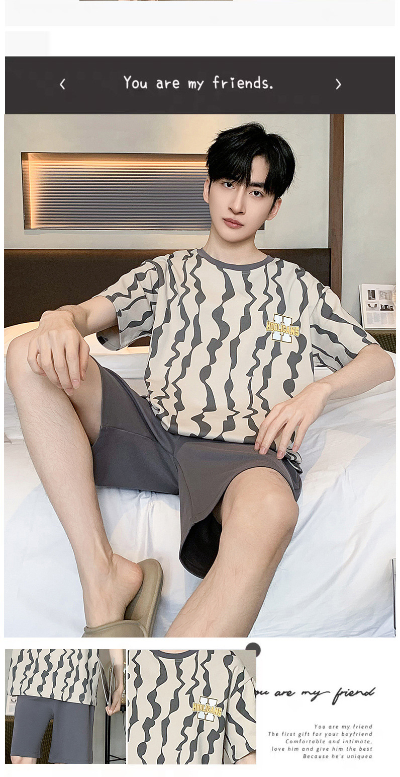 2024 algodón de punto de verano 6535 hombre cuello redondo mangas cortas pantalones cortos pijamas sueltos ropa casera casera