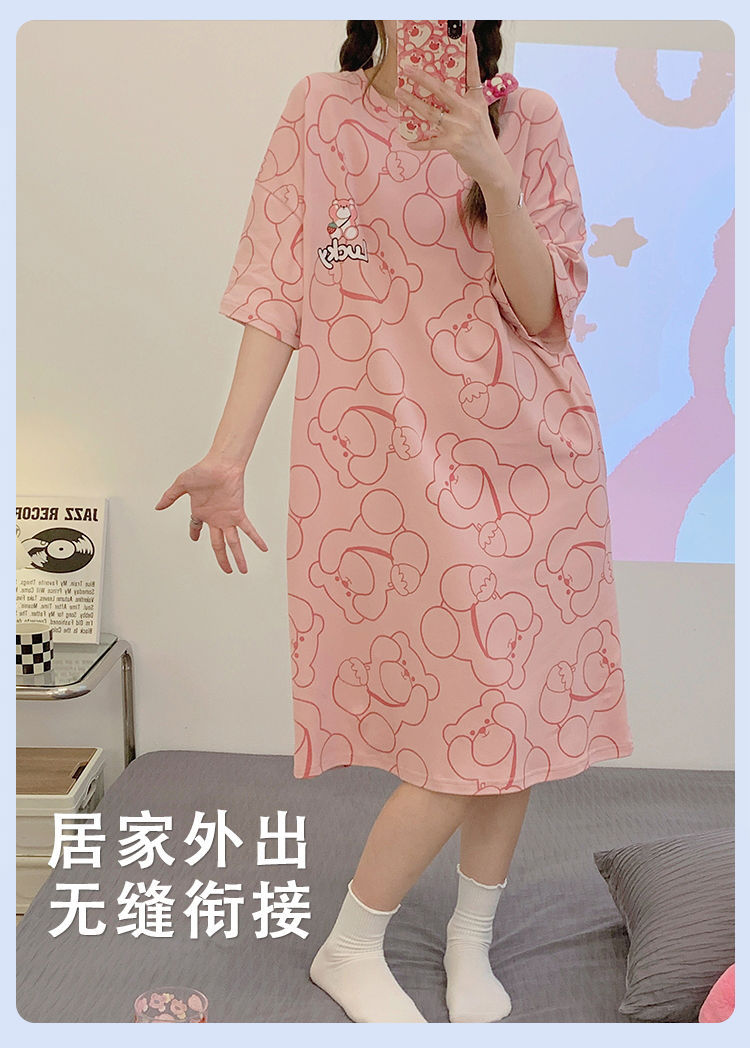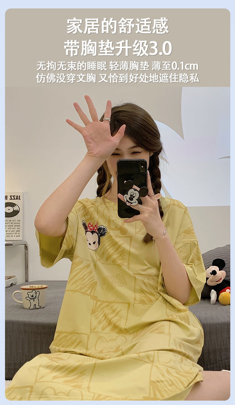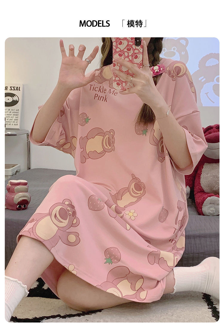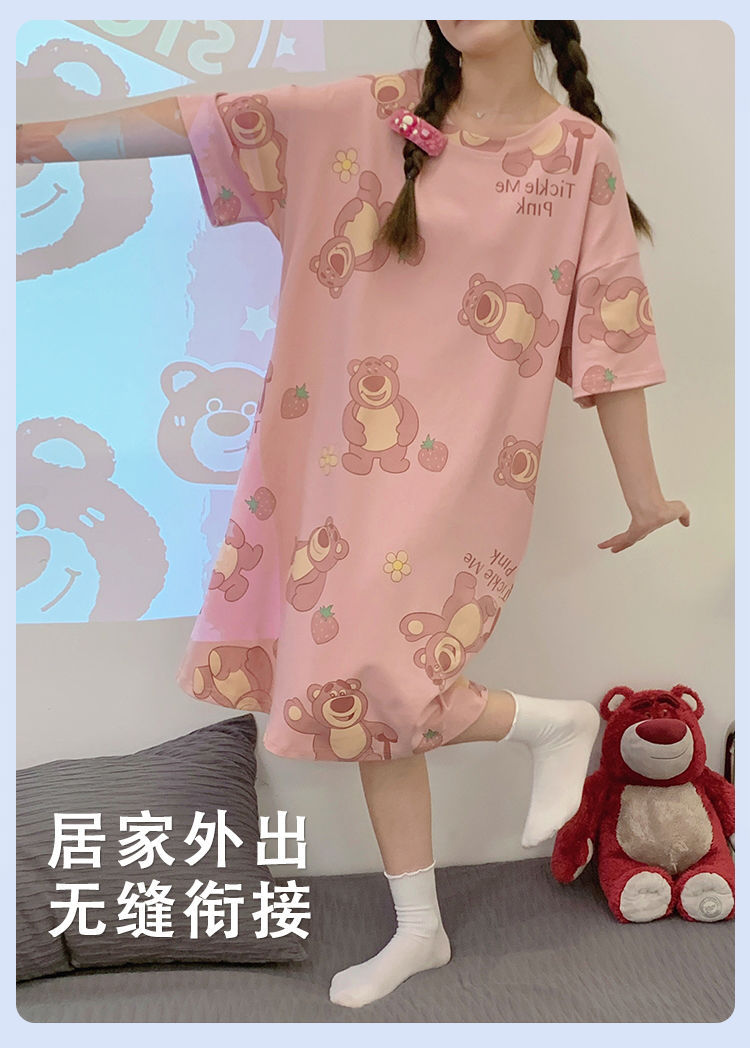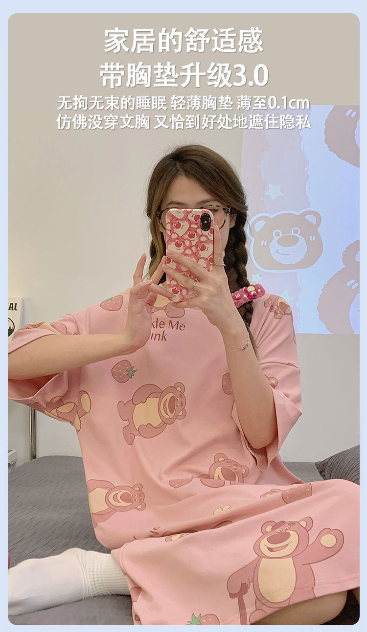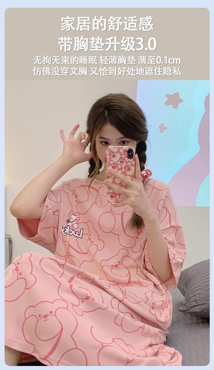 2024 verano pijama de mangas cortas cojín de pecho dibujos animados pijama dulce vestido suelto engordado ropa de hogar de tamaño grande