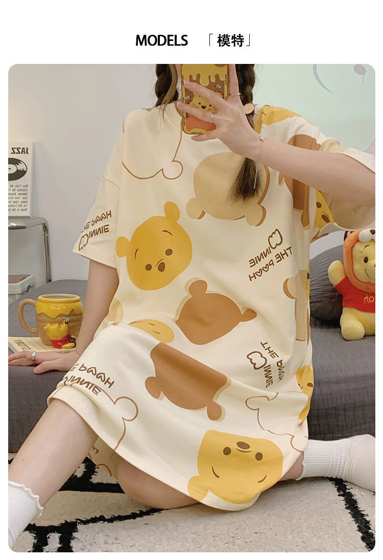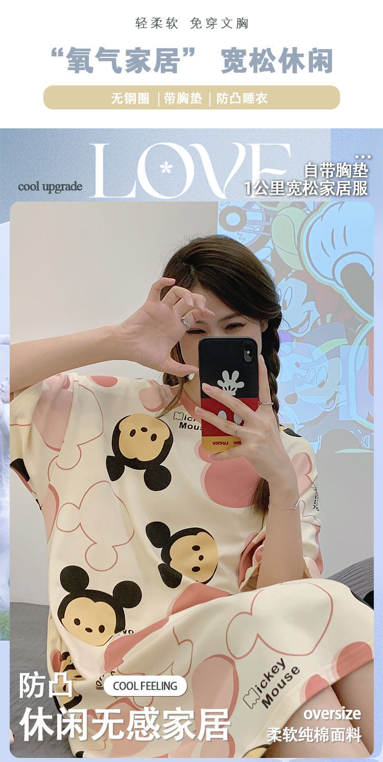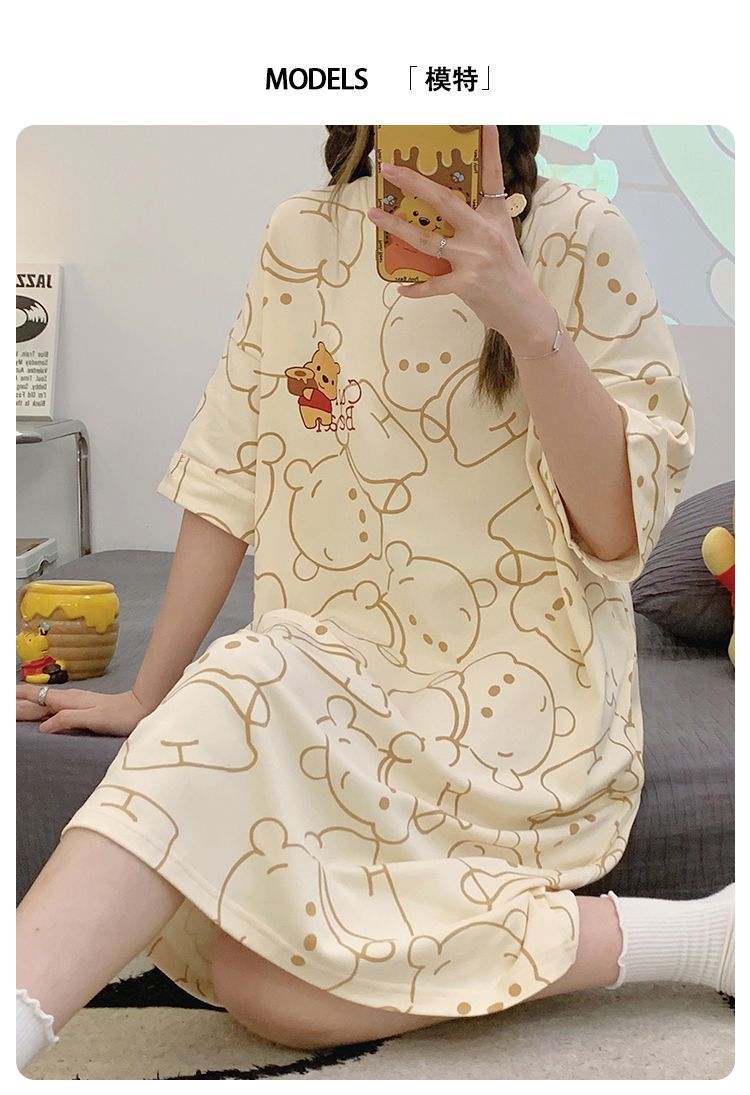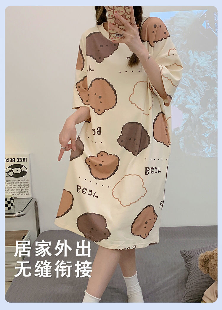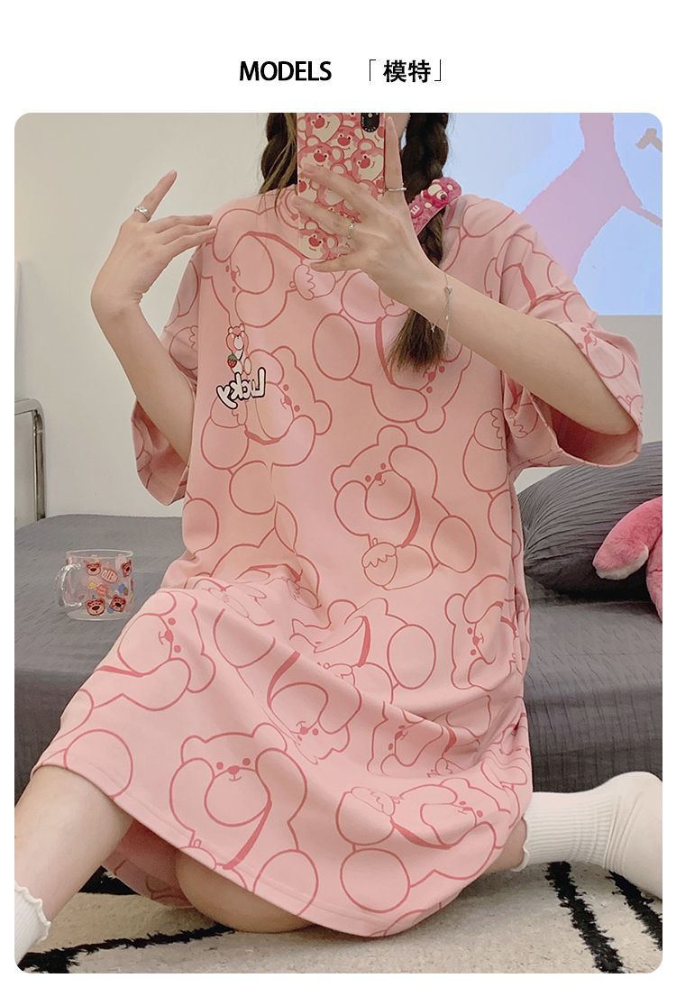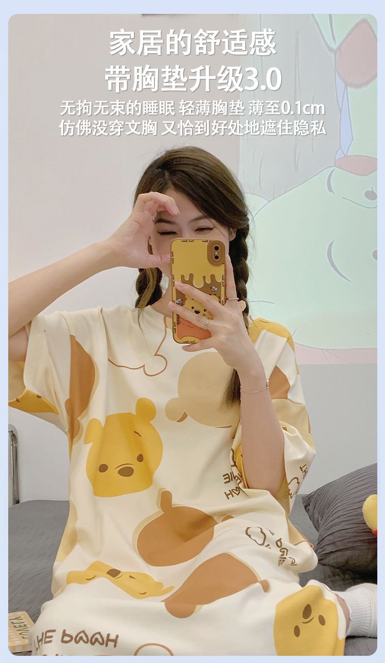 2024 verano pijama de mangas cortas cojín de pecho dibujos animados pijama dulce vestido suelto engordado ropa de hogar de tamaño grande