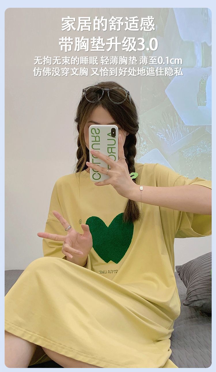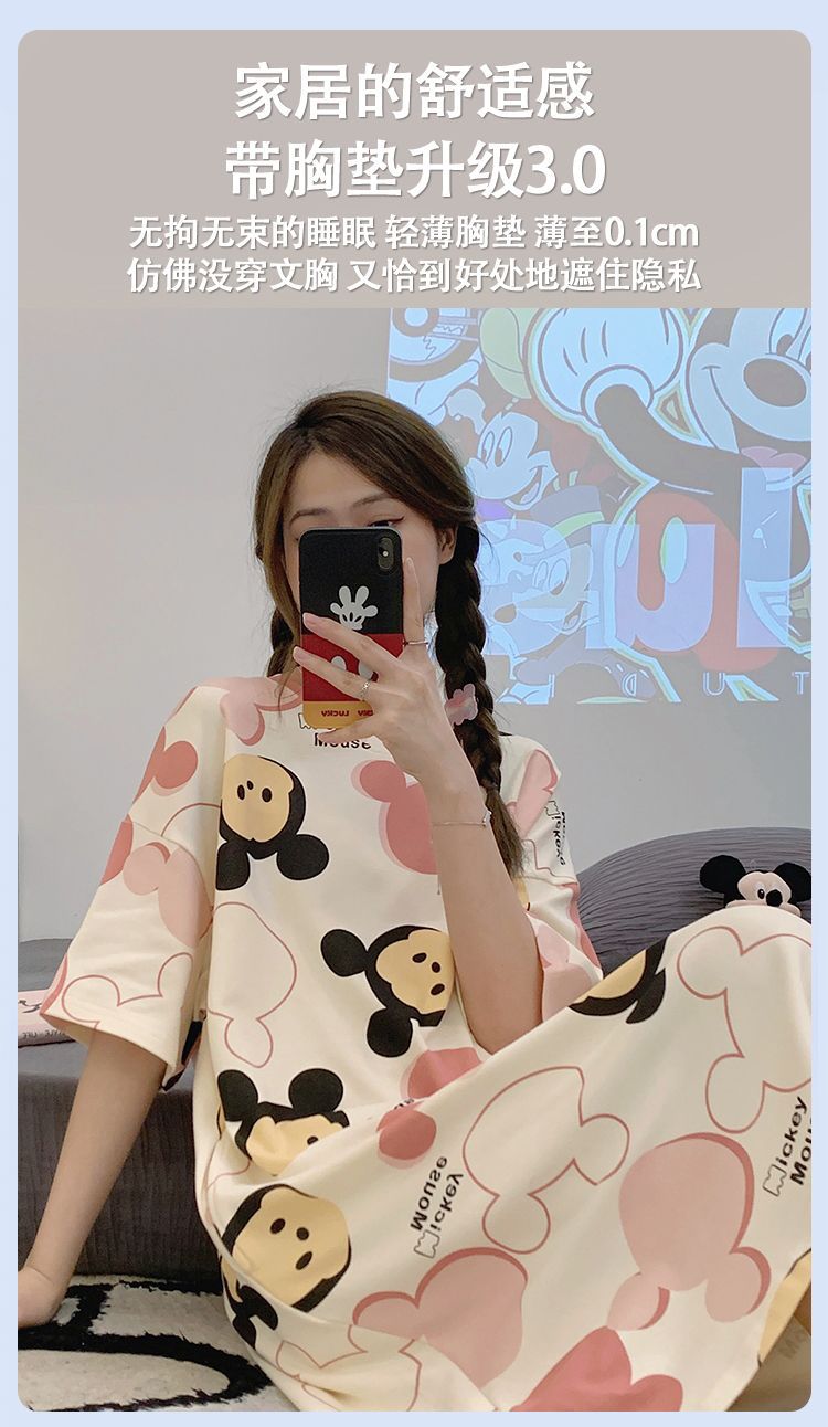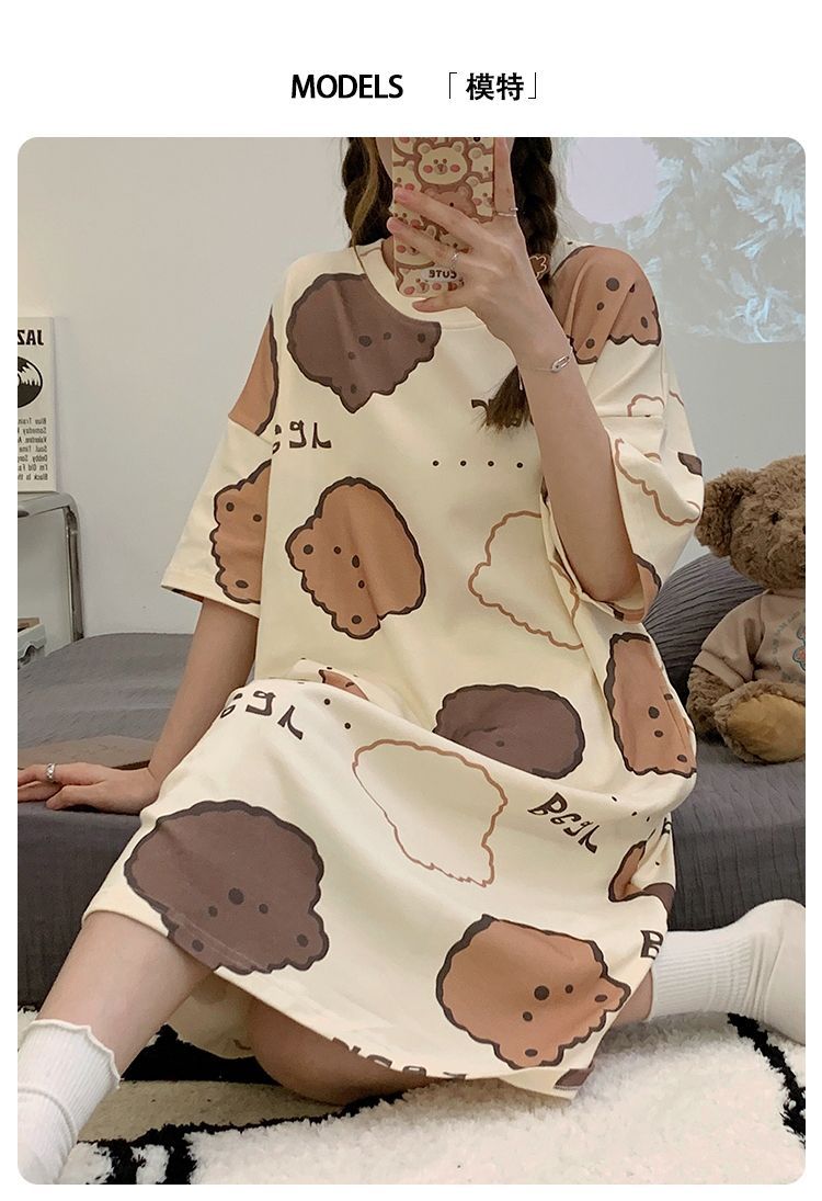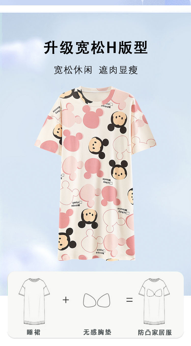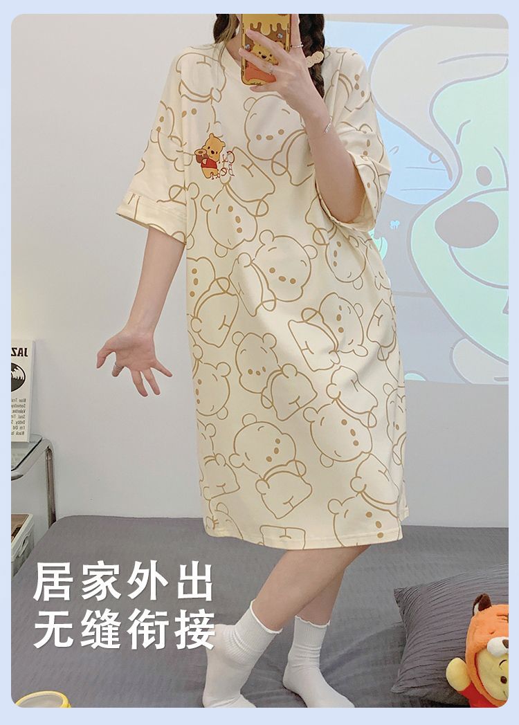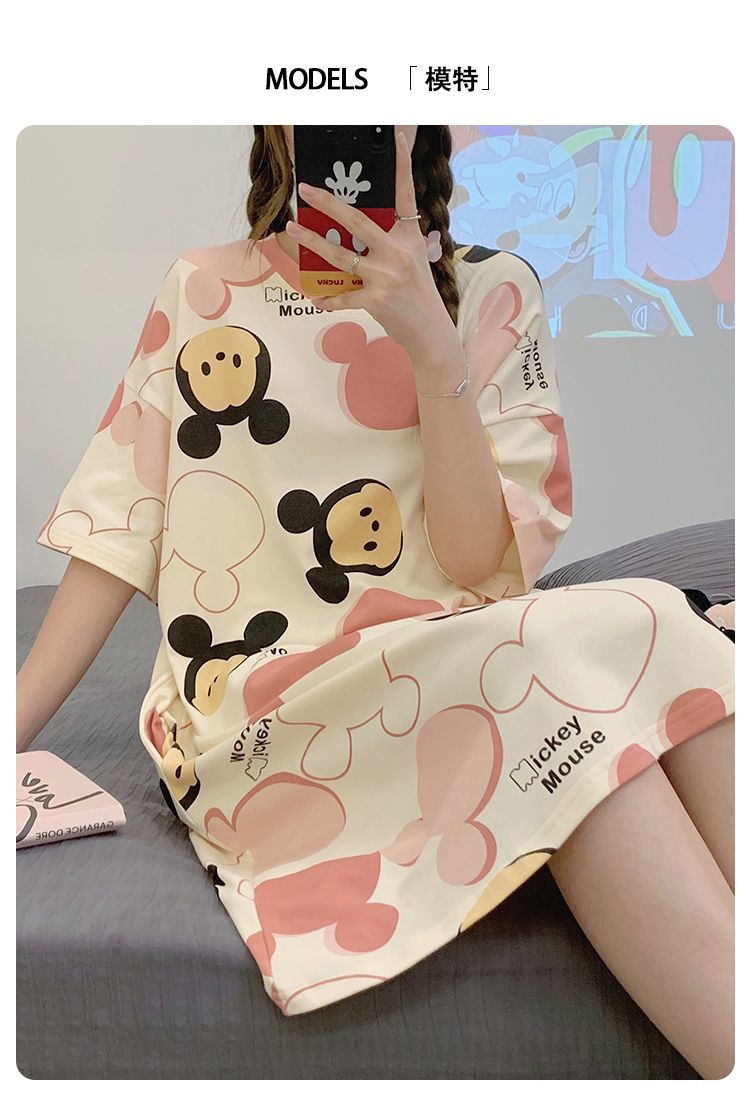 2024 verano pijama de mangas cortas cojín de pecho dibujos animados pijama dulce vestido suelto engordado ropa de hogar de tamaño grande