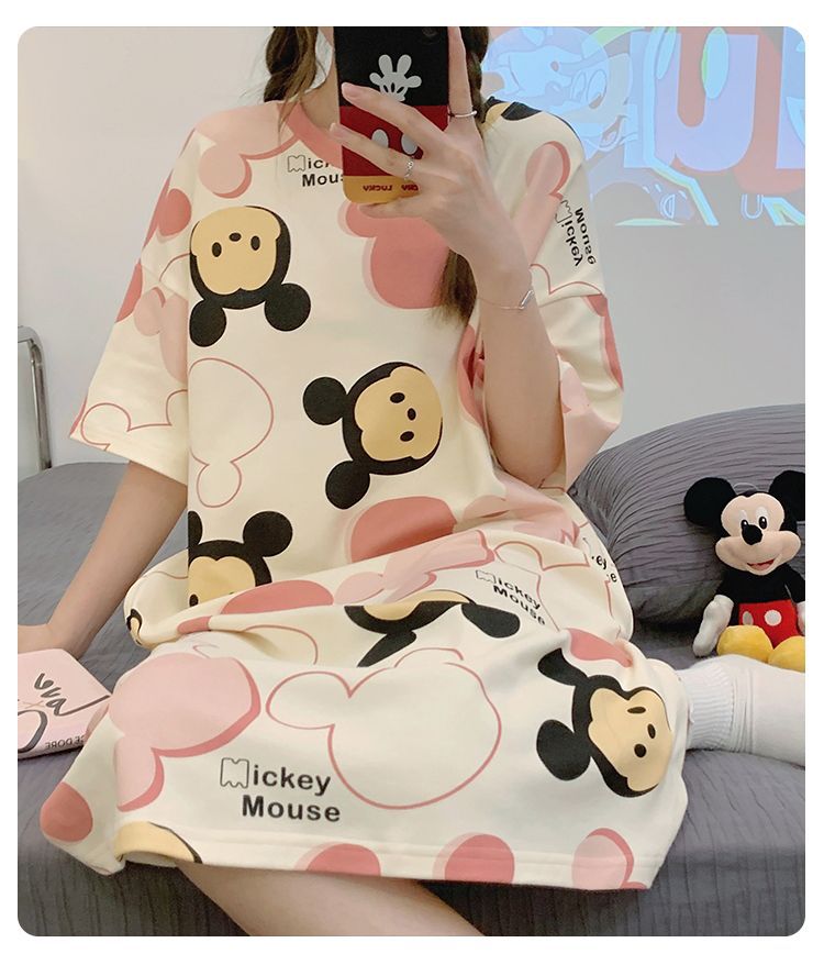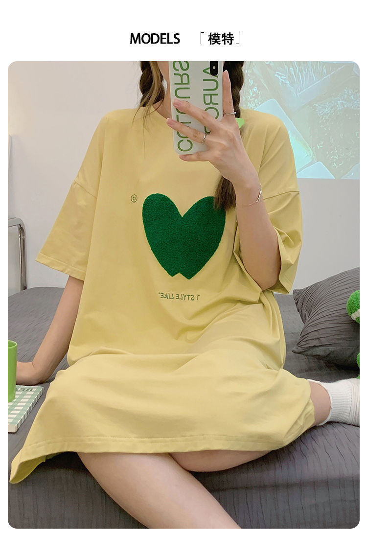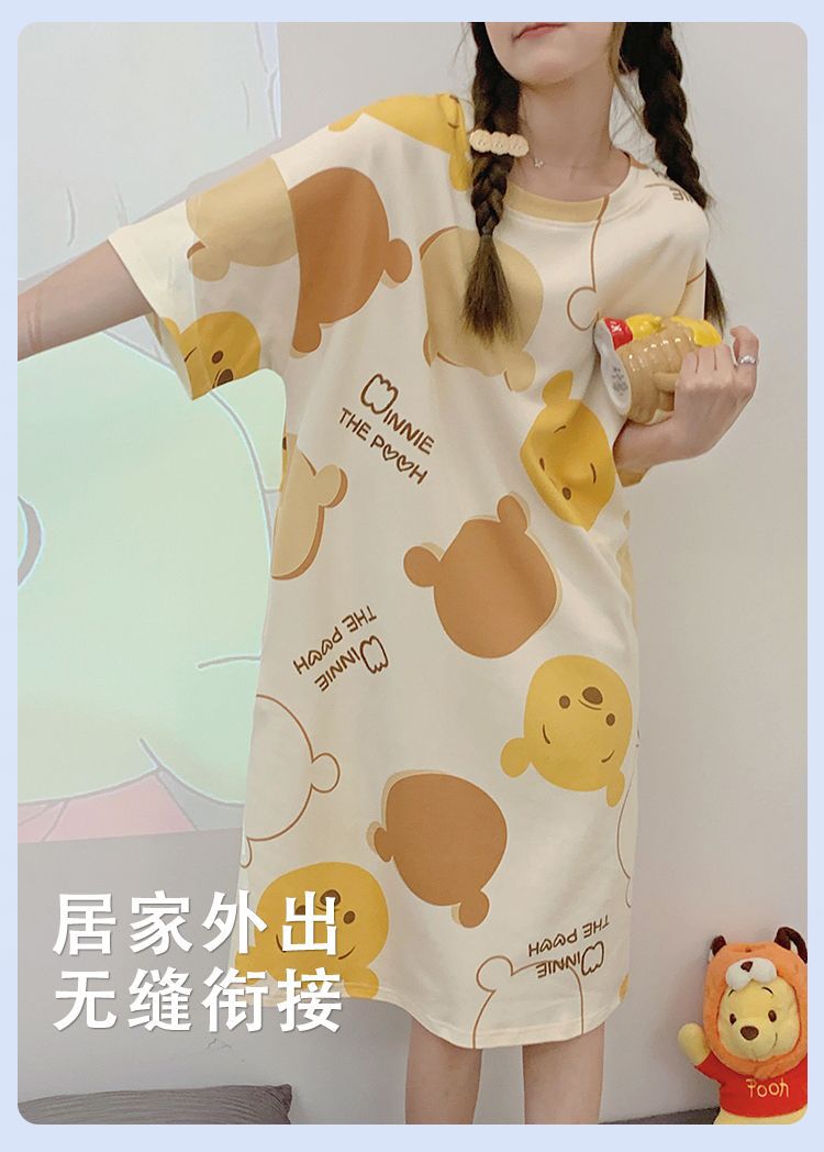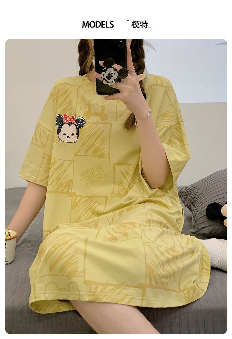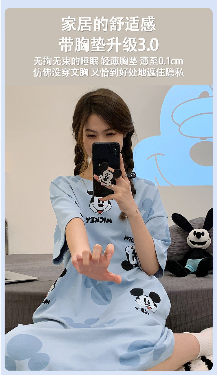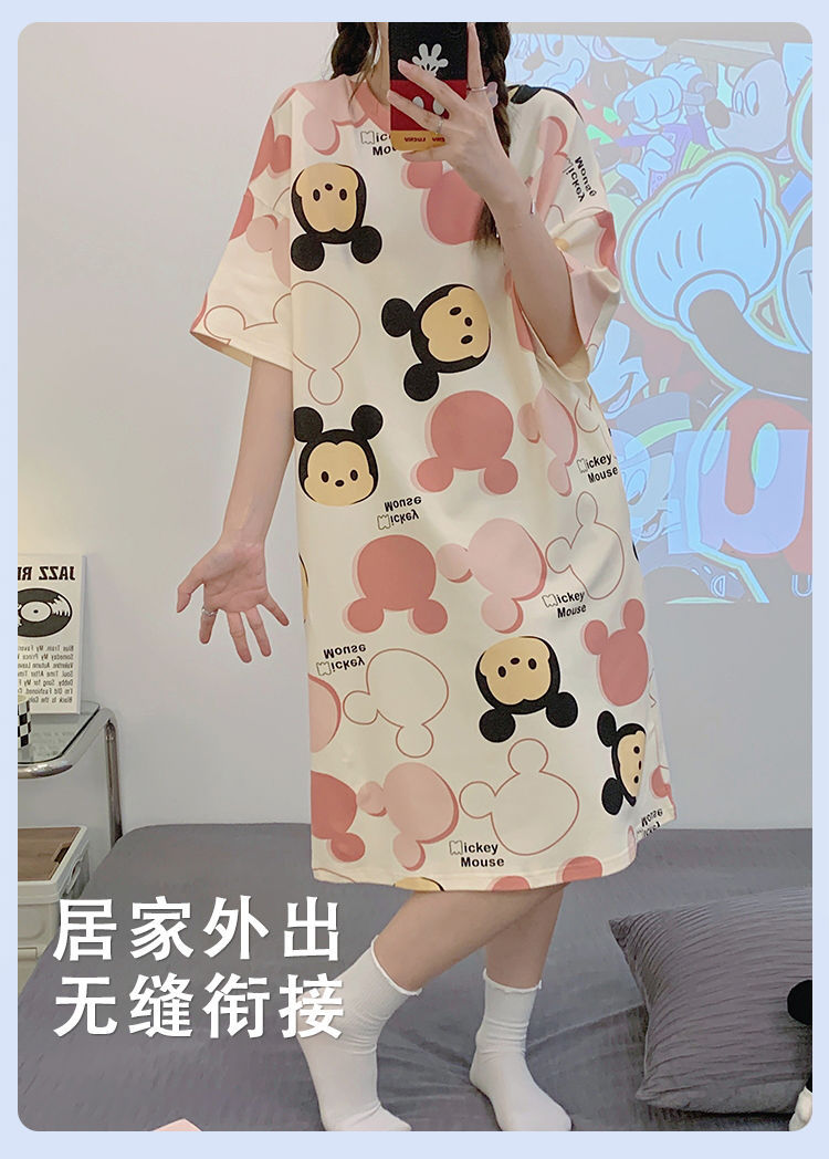 2024 verano pijama de mangas cortas cojín de pecho dibujos animados pijama dulce vestido suelto engordado ropa de hogar de tamaño grande