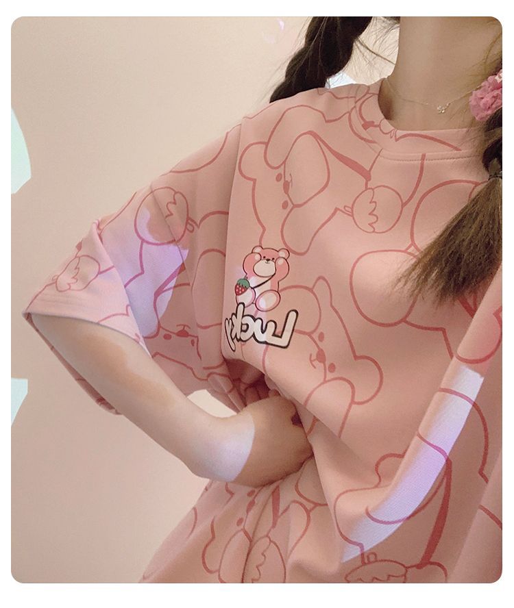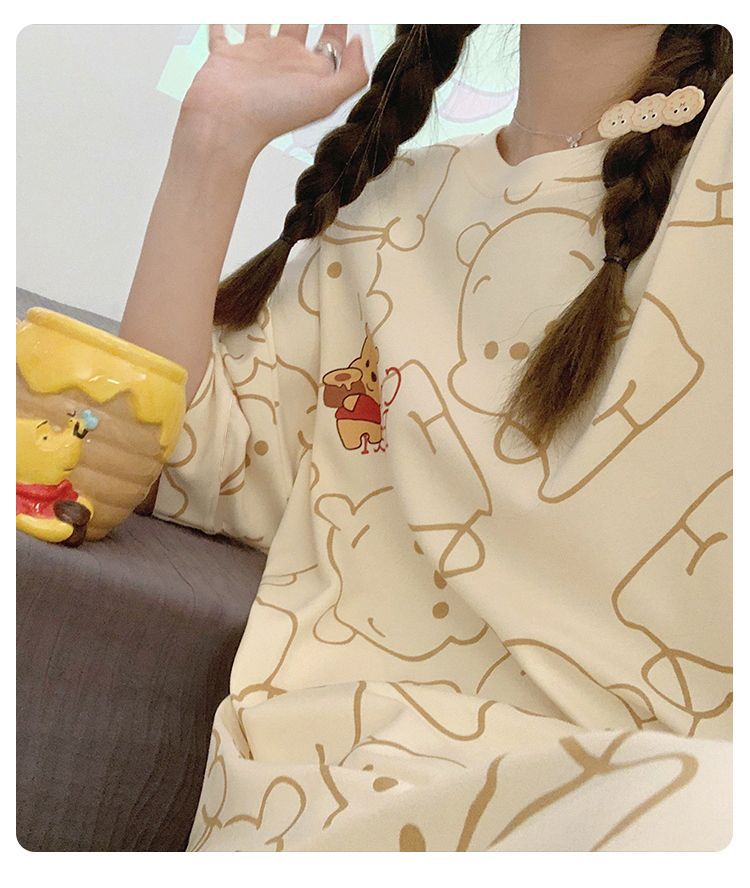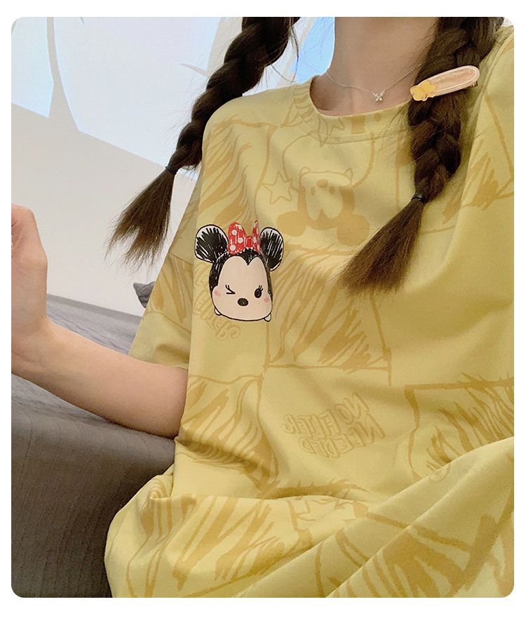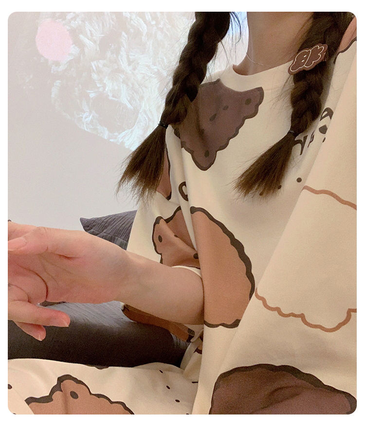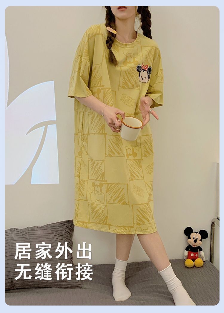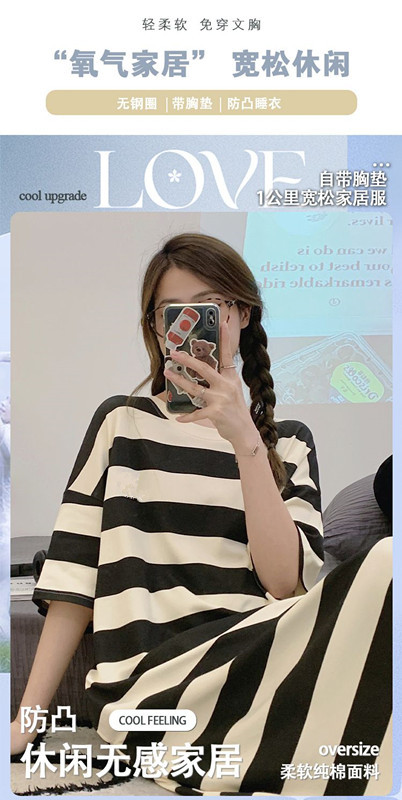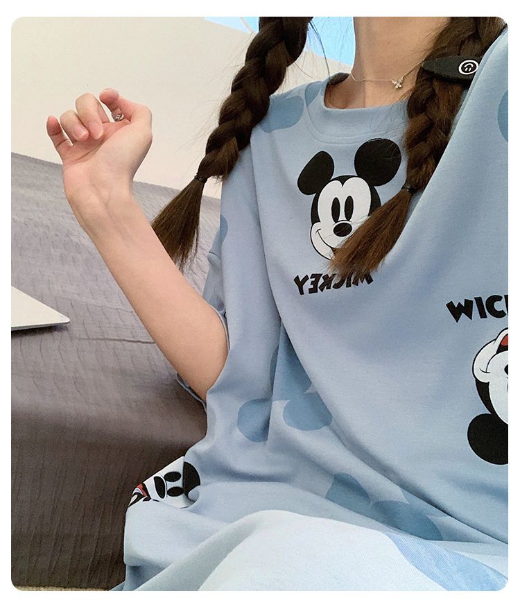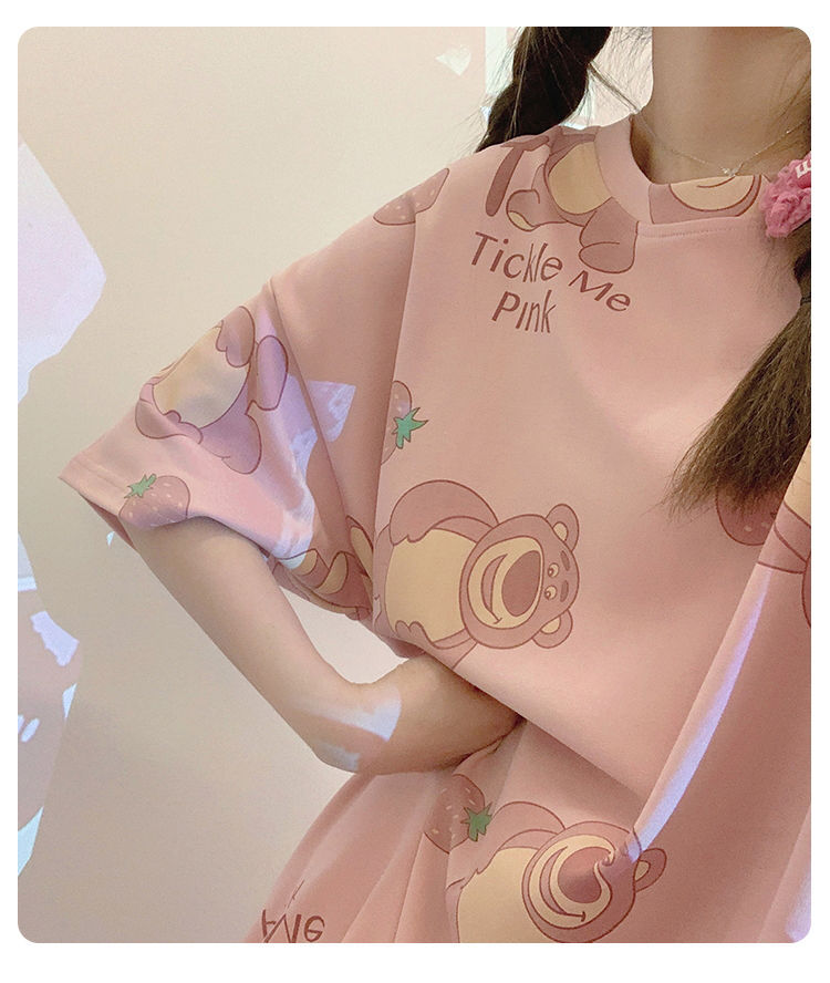 2024 verano pijama de mangas cortas cojín de pecho dibujos animados pijama dulce vestido suelto engordado ropa de hogar de tamaño grande