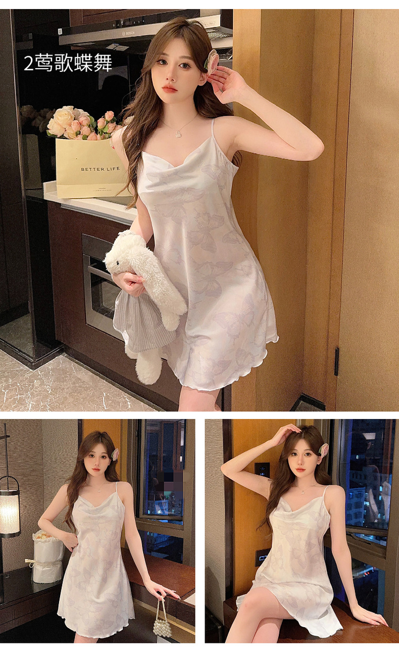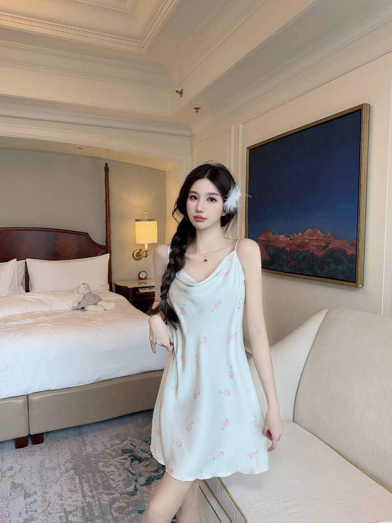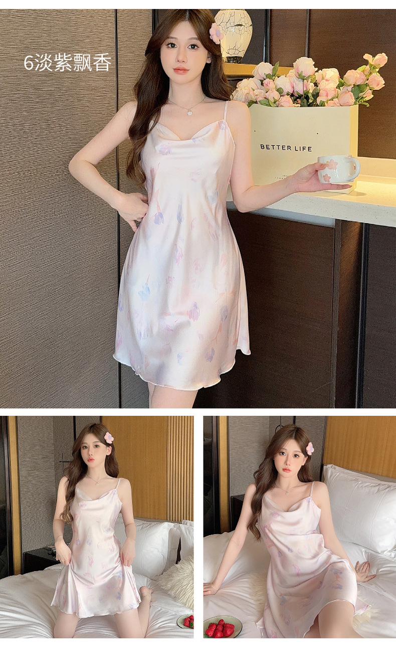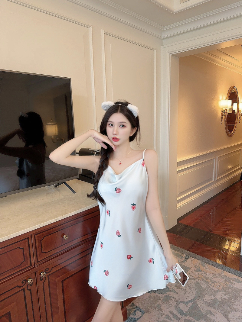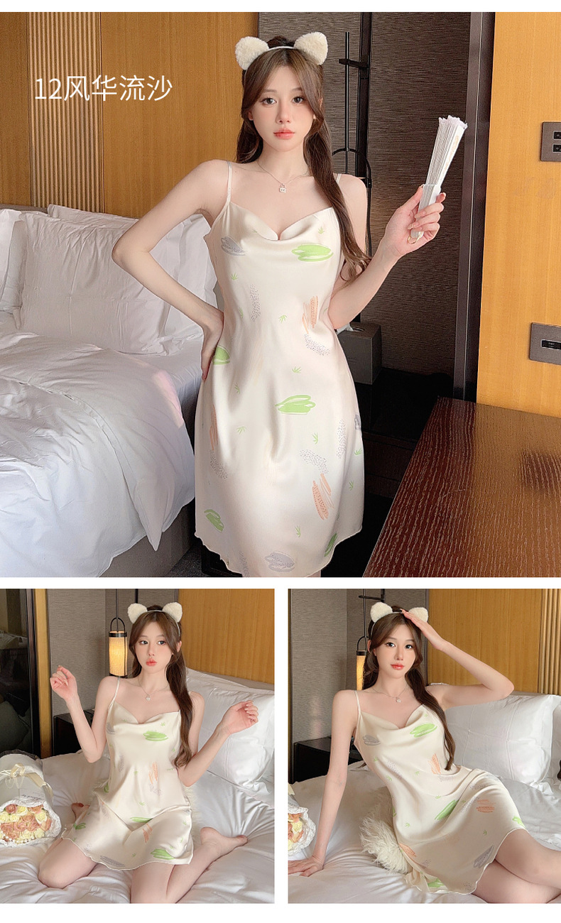 Más de 2024 Correa camisón de verano de las mujeres puro deseo pijamas de alto grado sentido swing collar satén Delgado homewear venta al por mayor