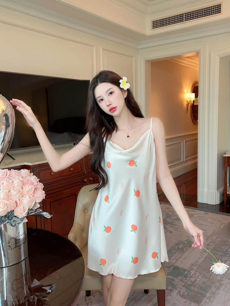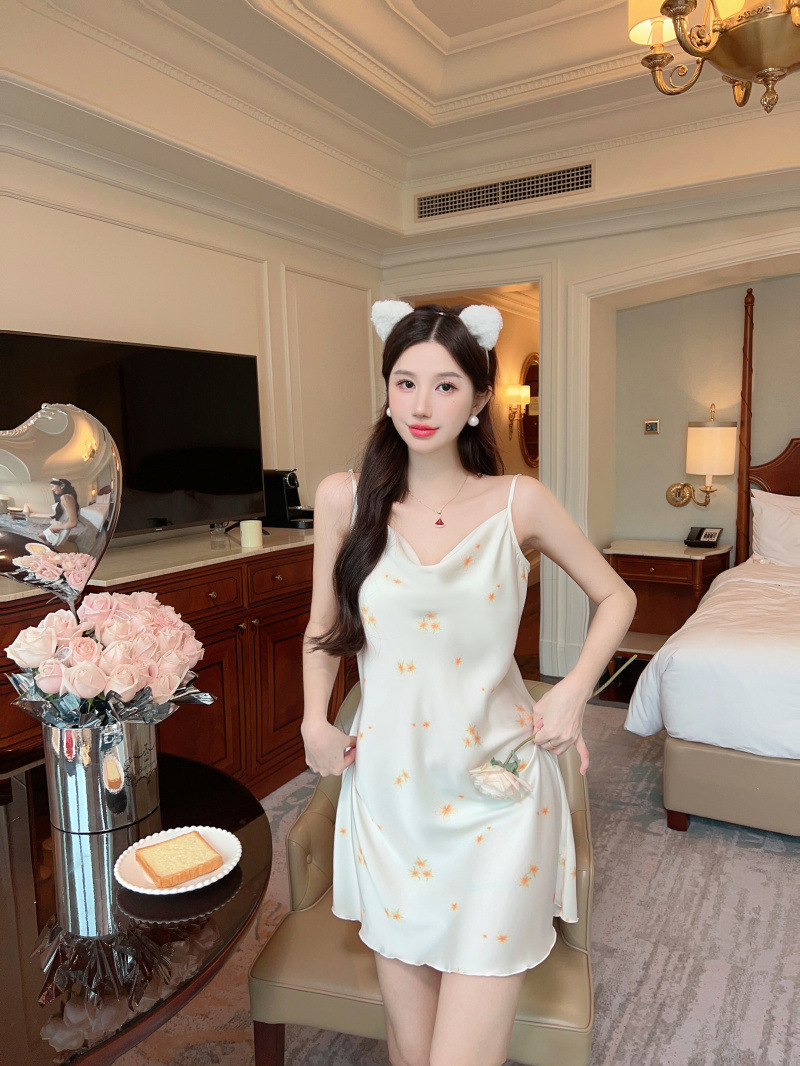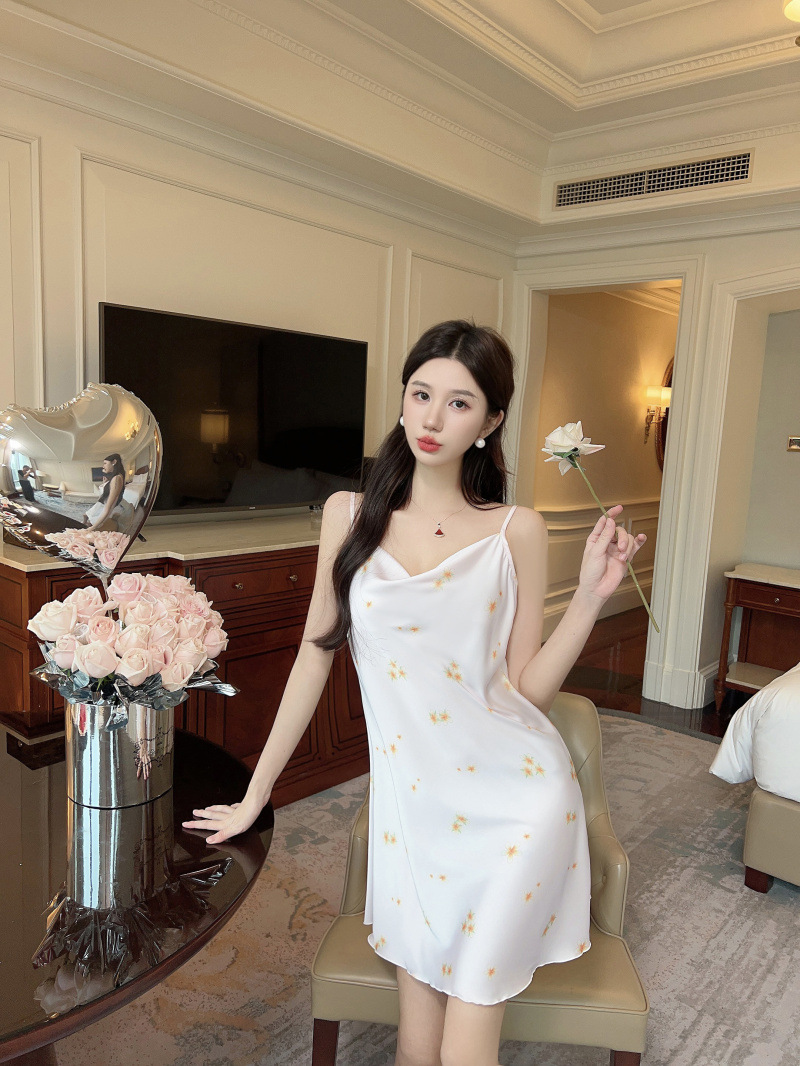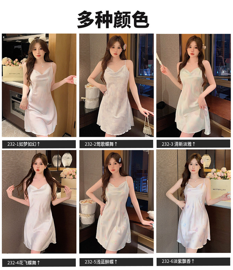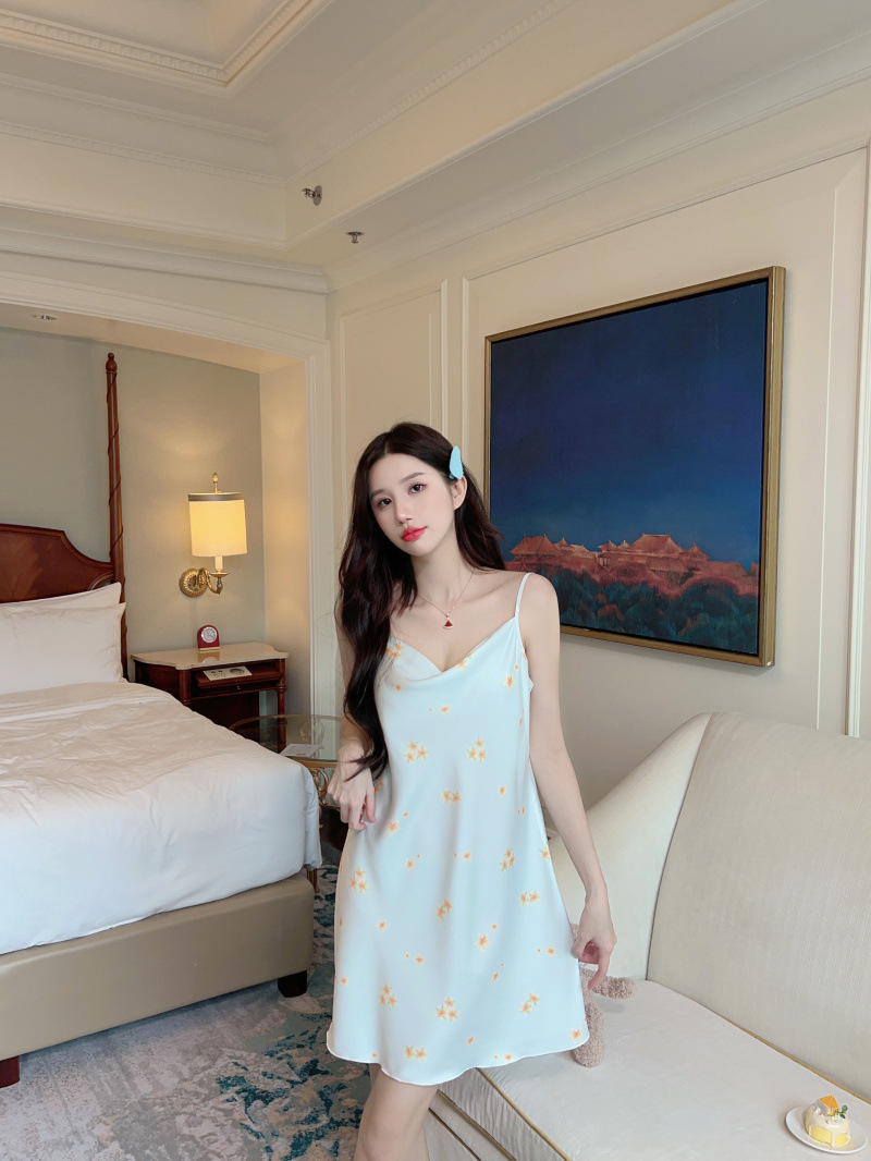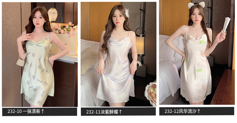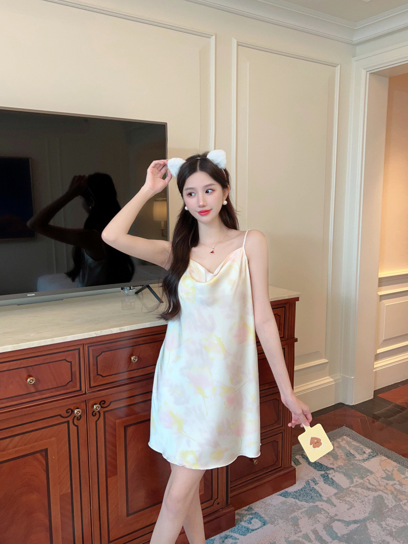 Más de 2024 Correa camisón de verano de las mujeres puro deseo pijamas de alto grado sentido swing collar satén Delgado homewear venta al por mayor