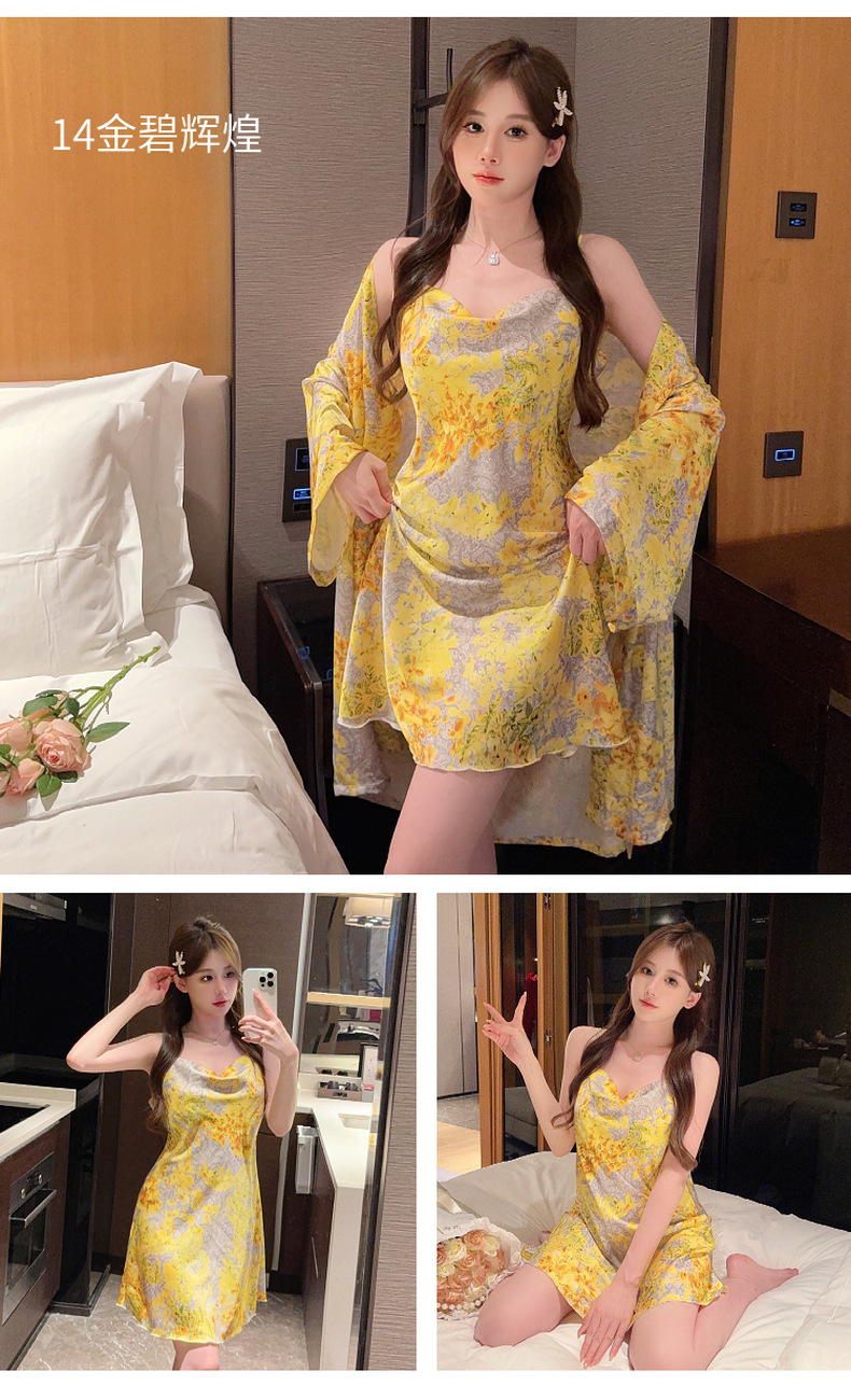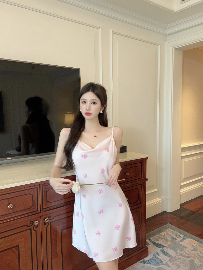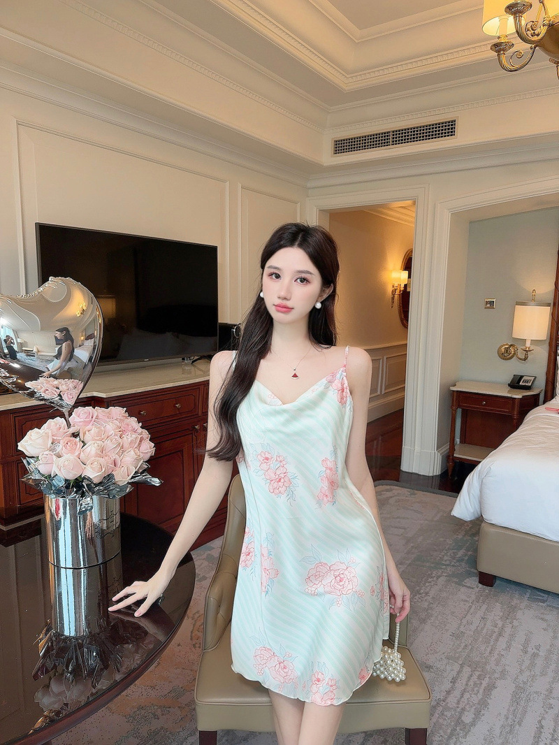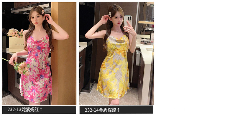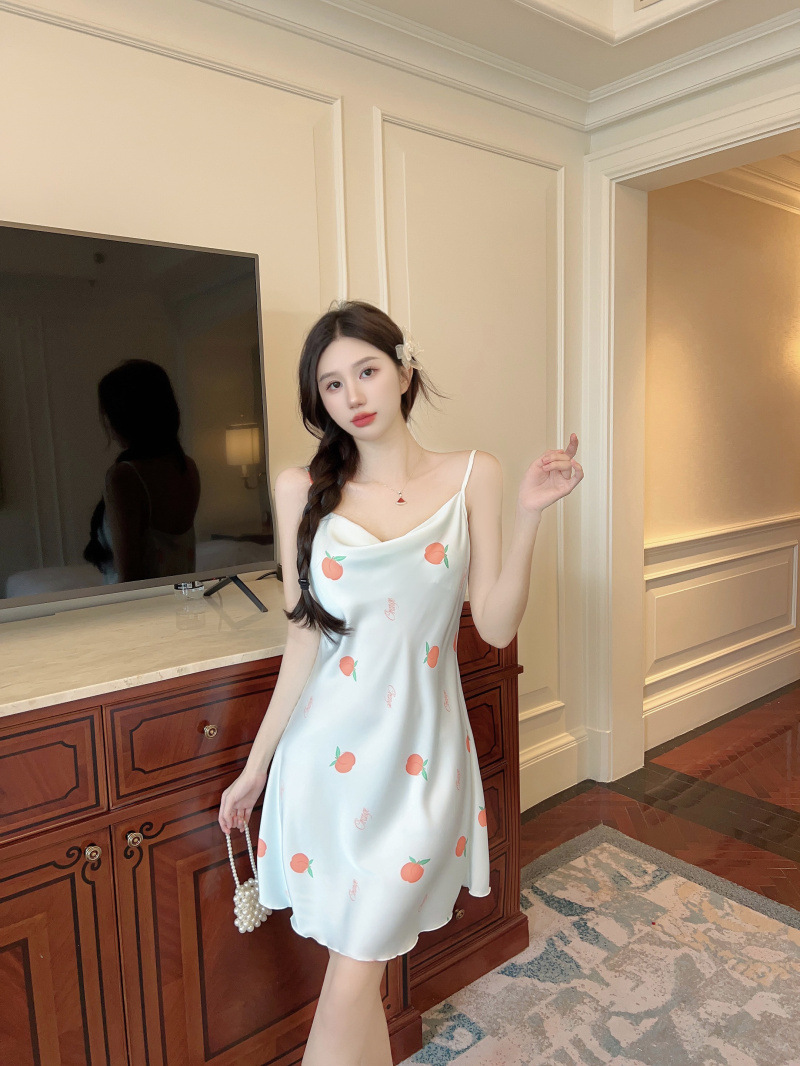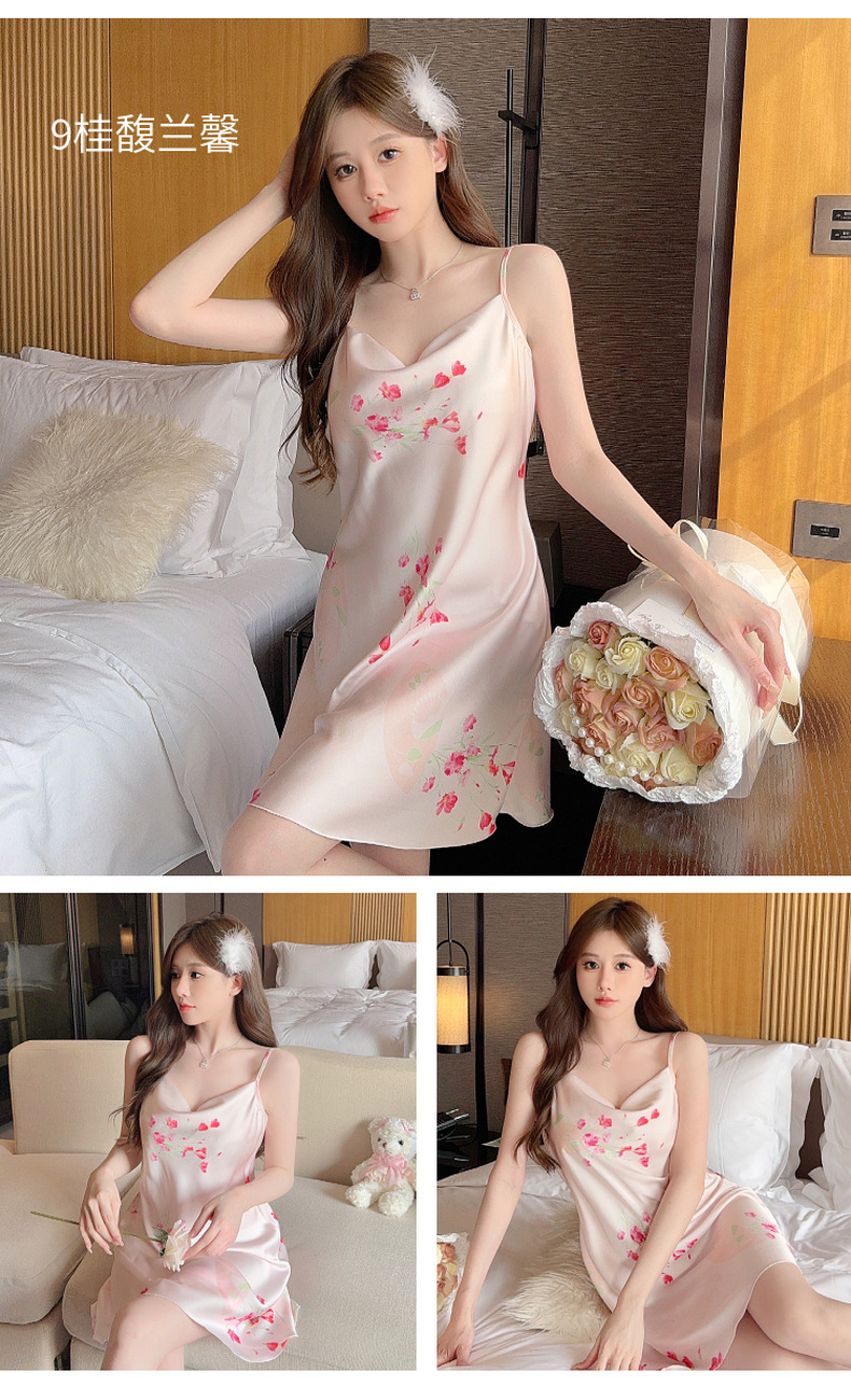 Más de 2024 Correa camisón de verano de las mujeres puro deseo pijamas de alto grado sentido swing collar satén Delgado homewear venta al por mayor