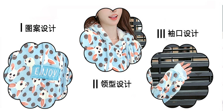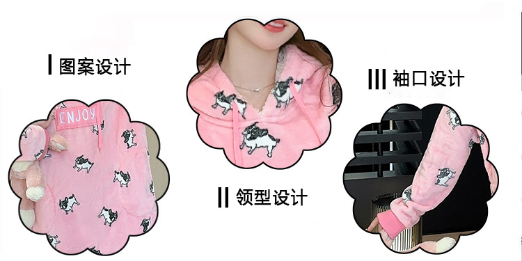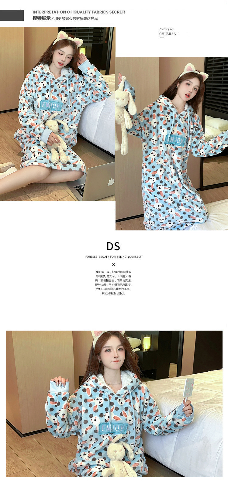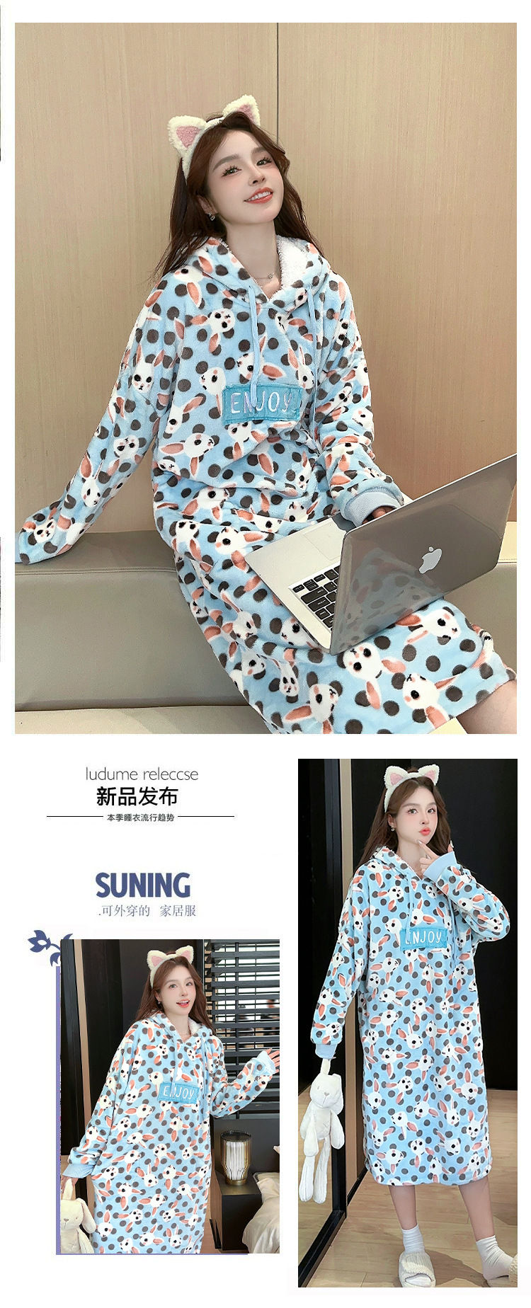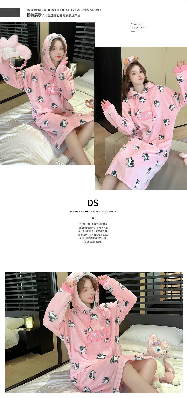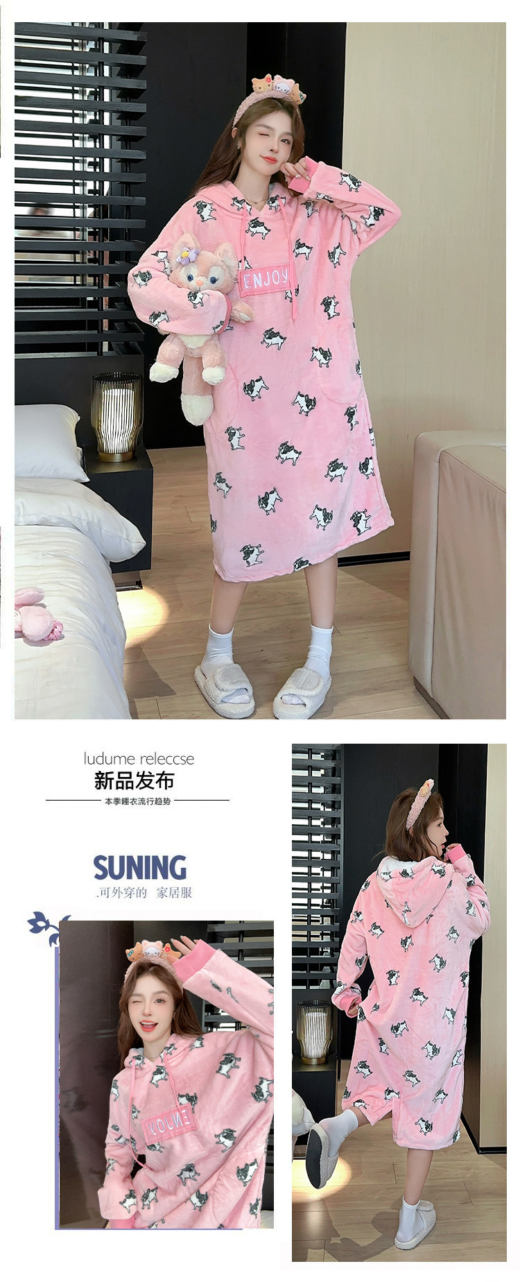 Invierno grueso cálido coral polar camisón de las mujeres dulce lindo princesa estilo con capucha media longitud caliente homewear