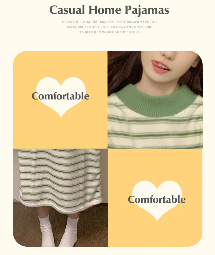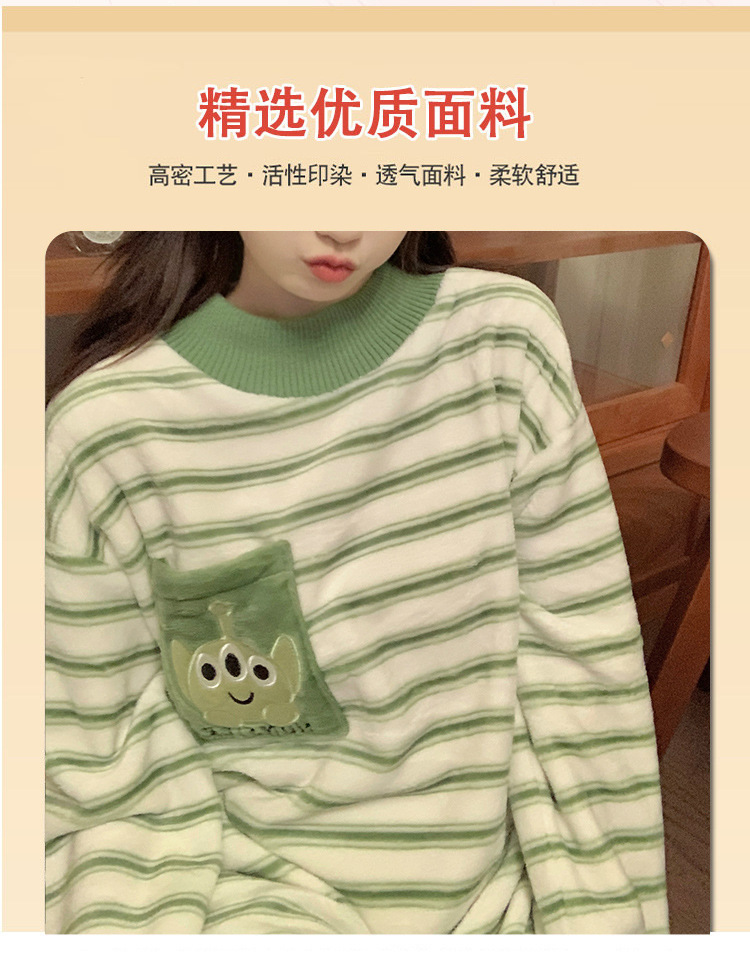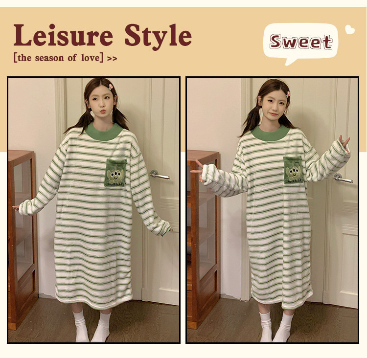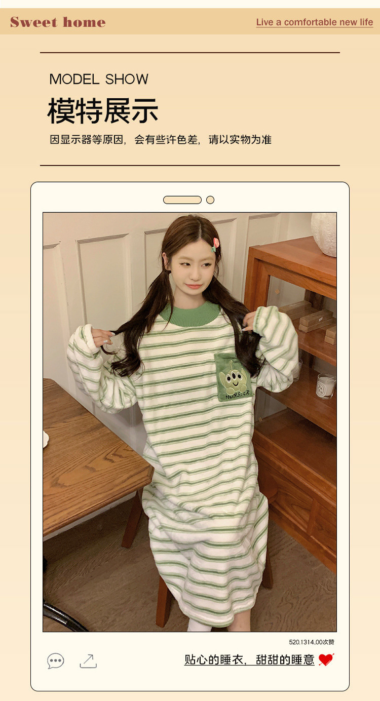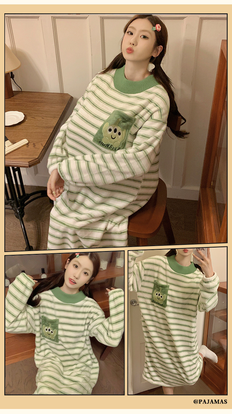 Otoño e invierno camisón de manga larga de las mujeres a rayas cálido espeso pijamas de franela Vestido largo de dibujos animados lindo desgaste del hogar transmisión en vivo