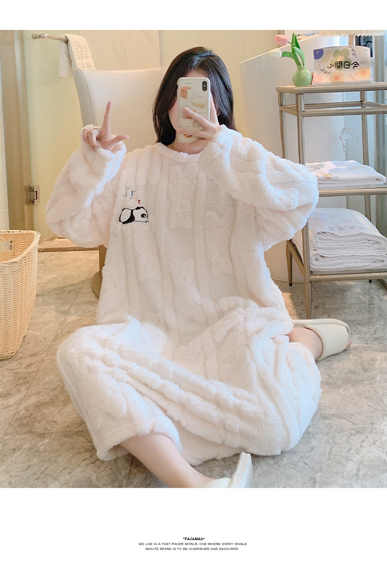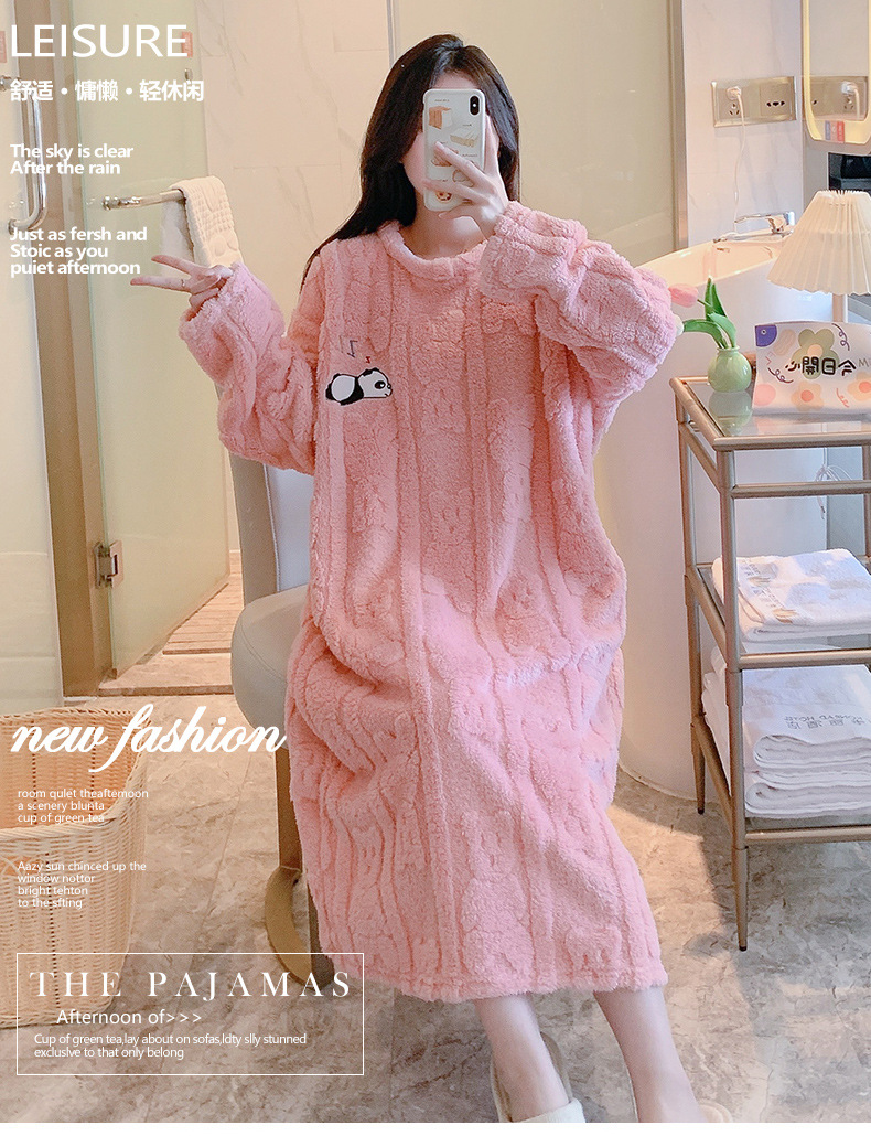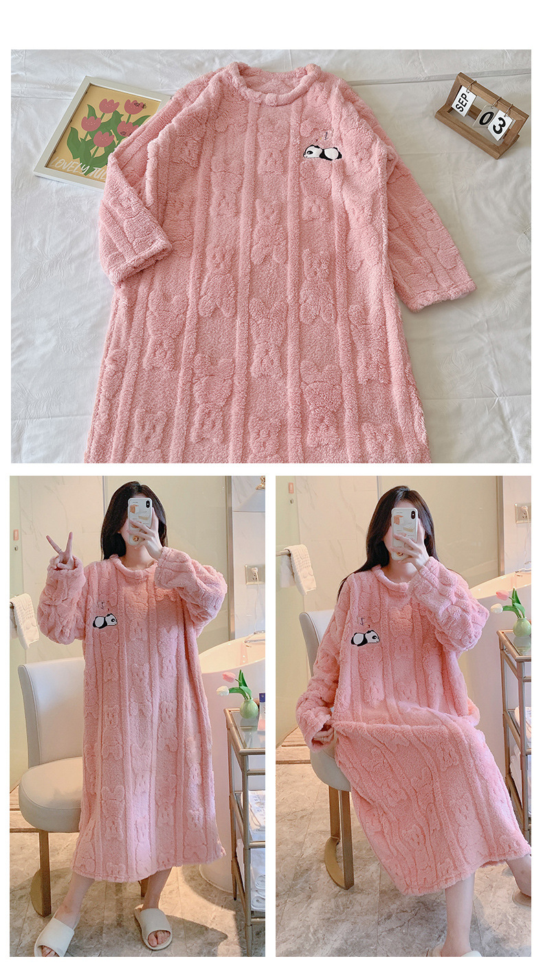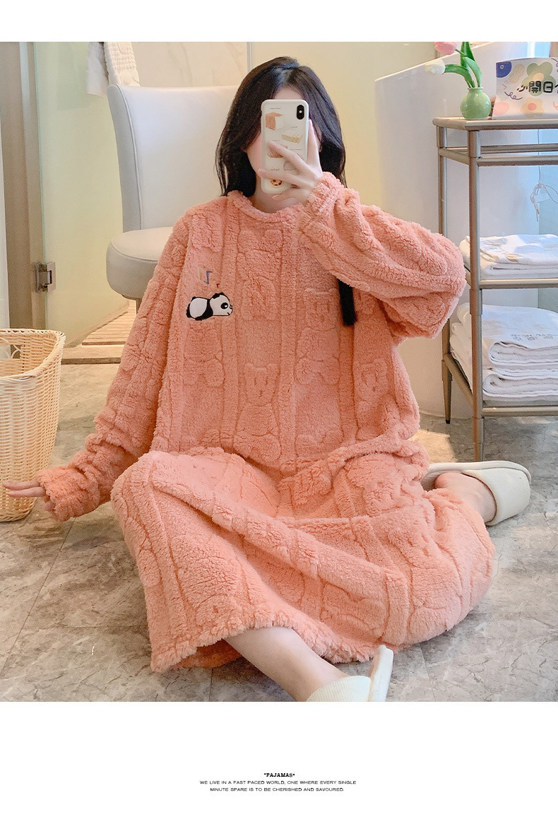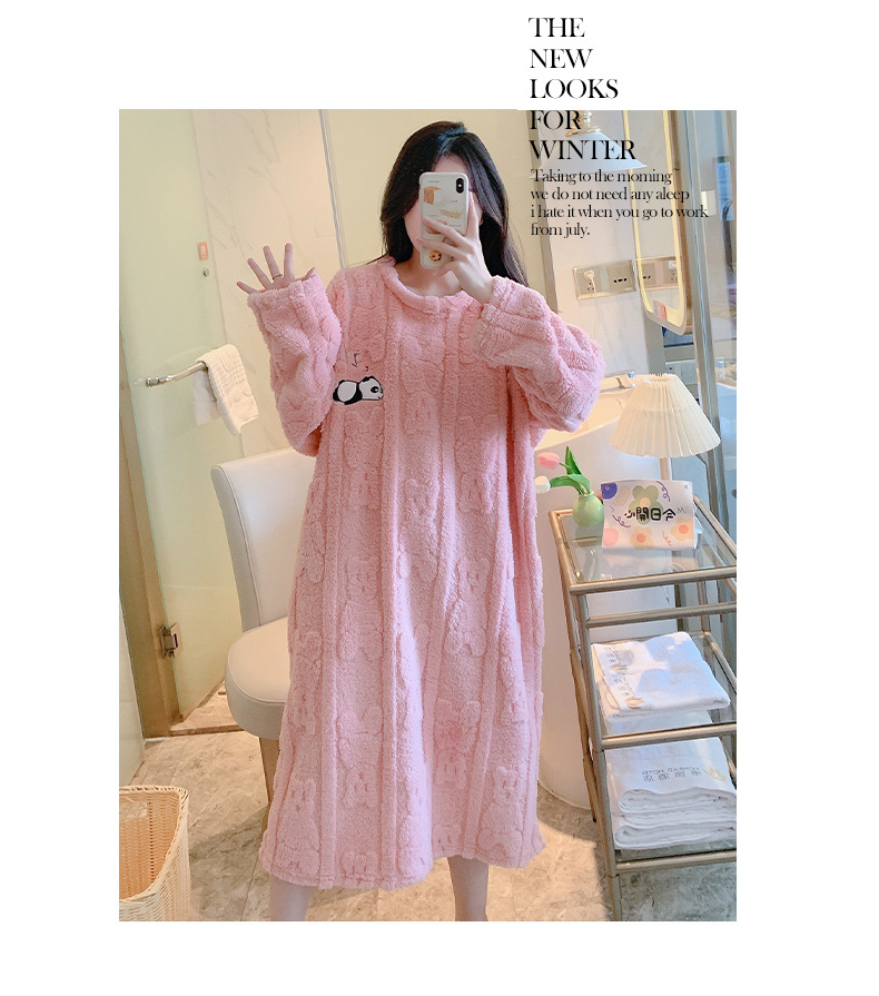 Pijamas de las mujeres de terciopelo Jacquard de invierno dulce princesa estilo de manga larga camisón de longitud media más el tamaño 230 Chubby chica homewear