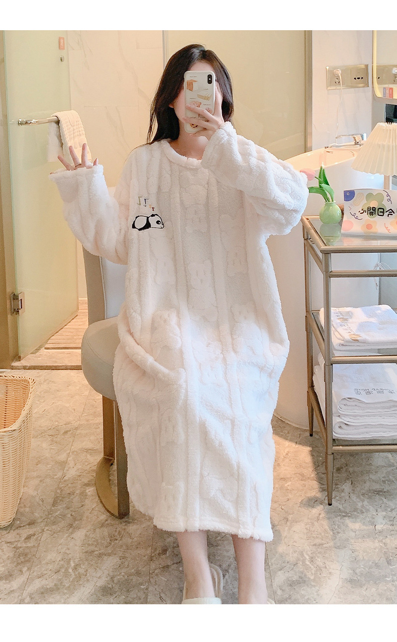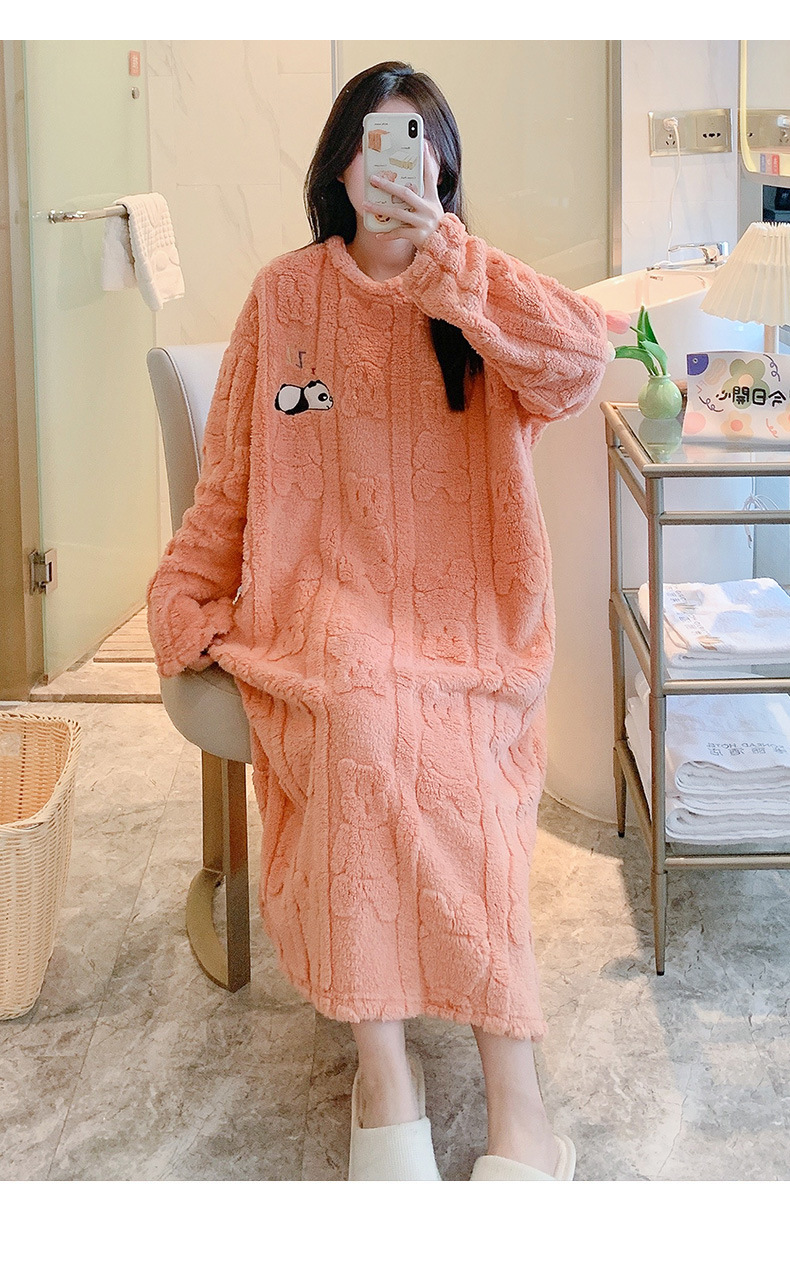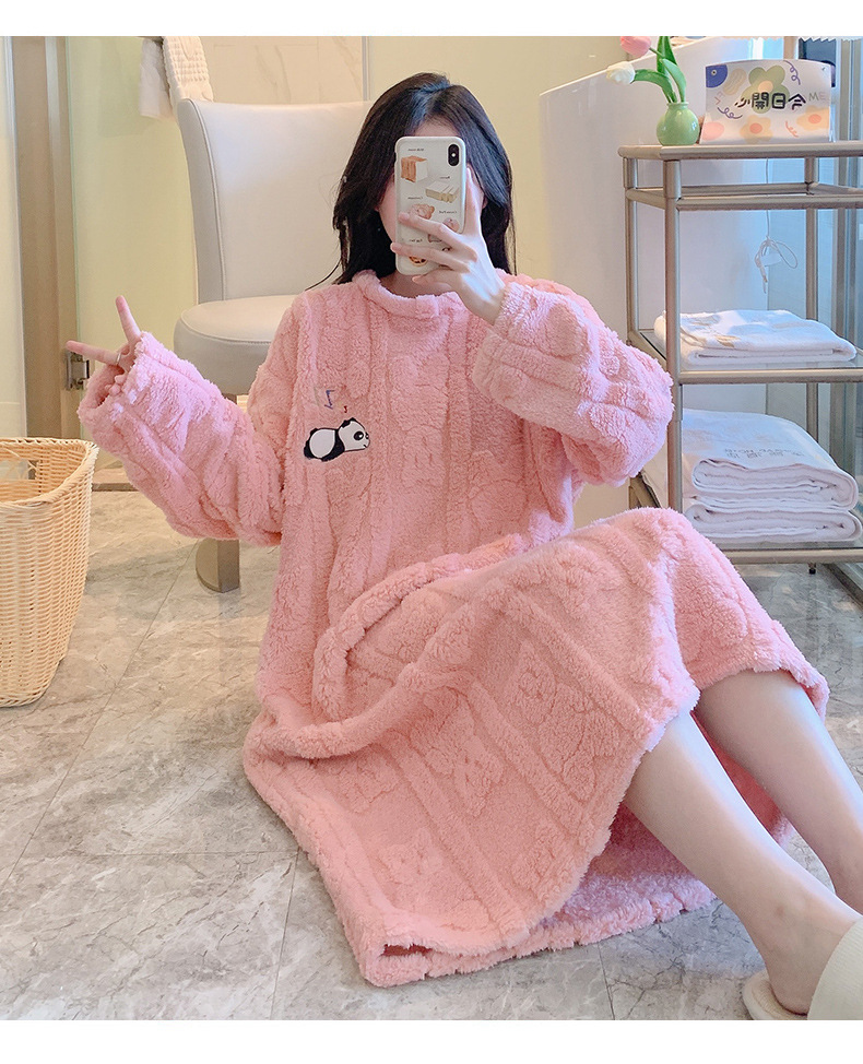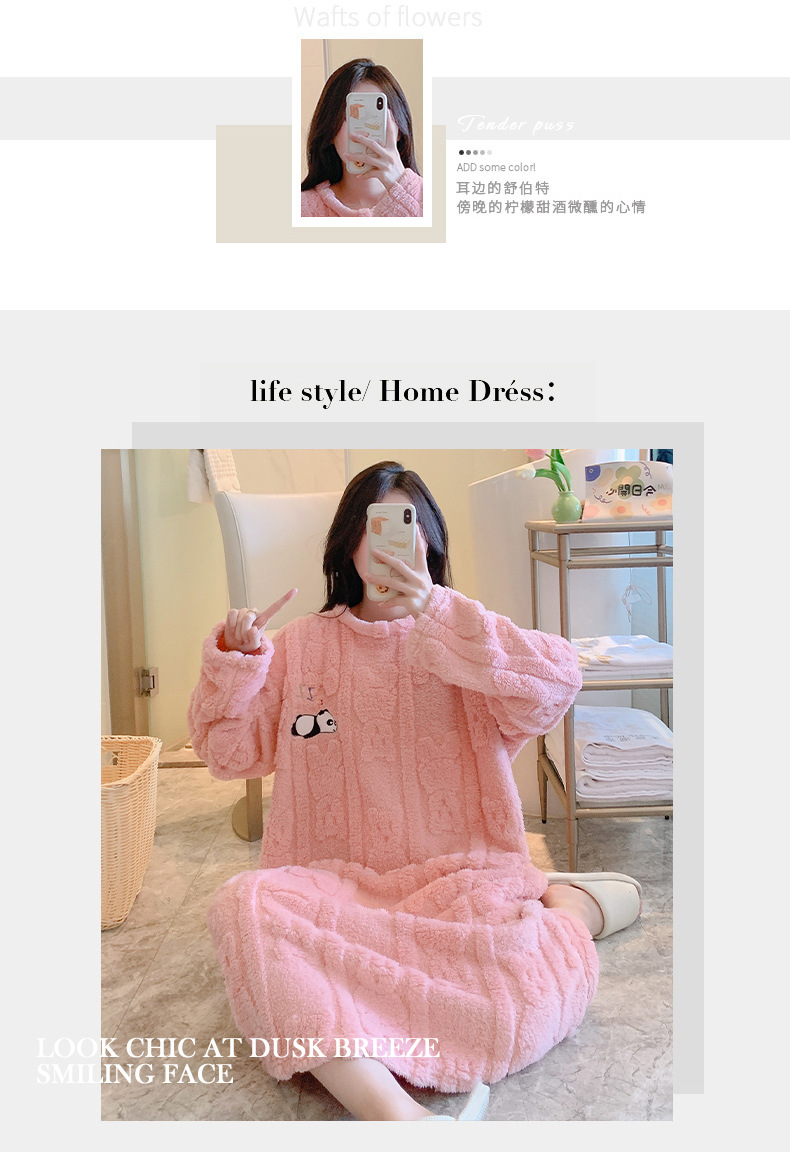 Pijamas de las mujeres de terciopelo Jacquard de invierno dulce princesa estilo de manga larga camisón de longitud media más el tamaño 230 Chubby chica homewear