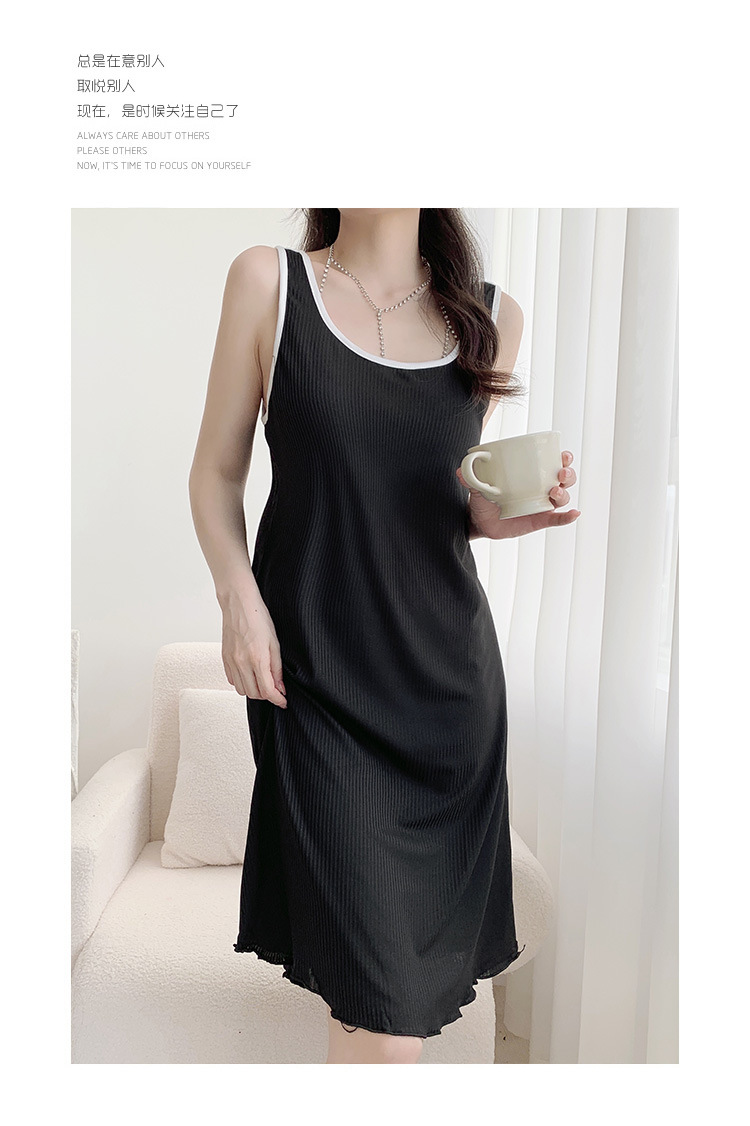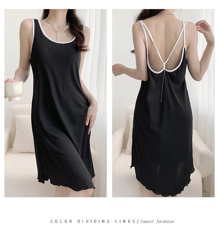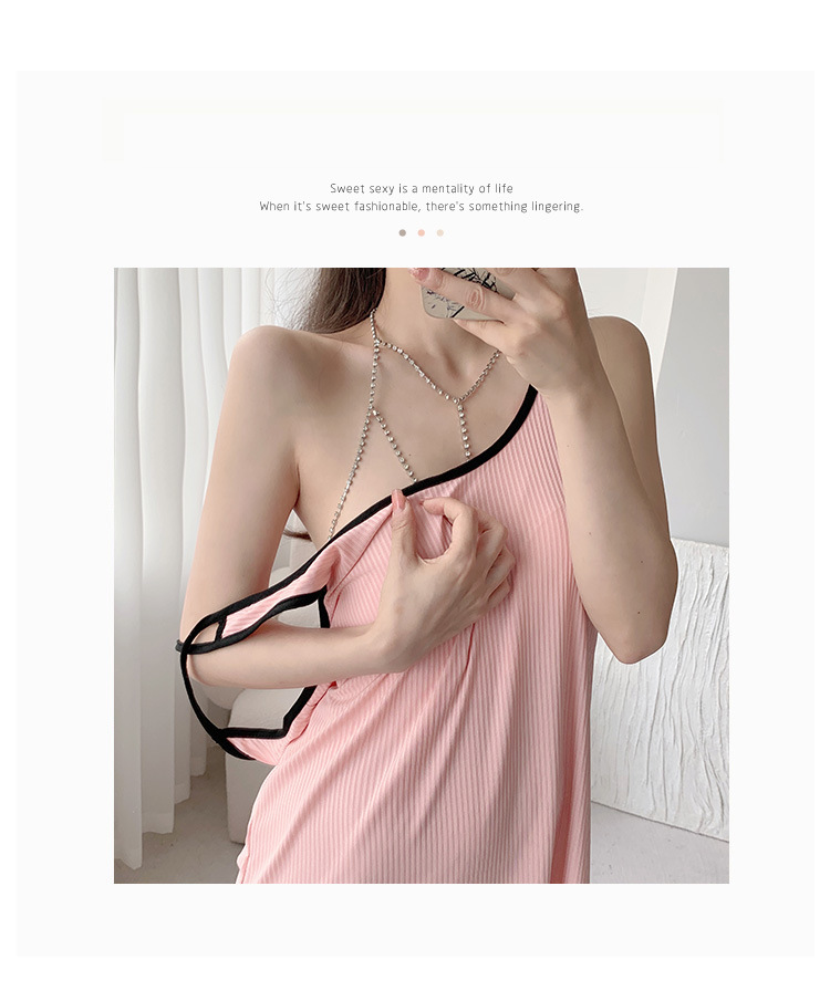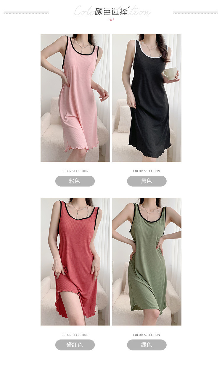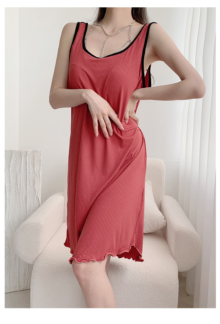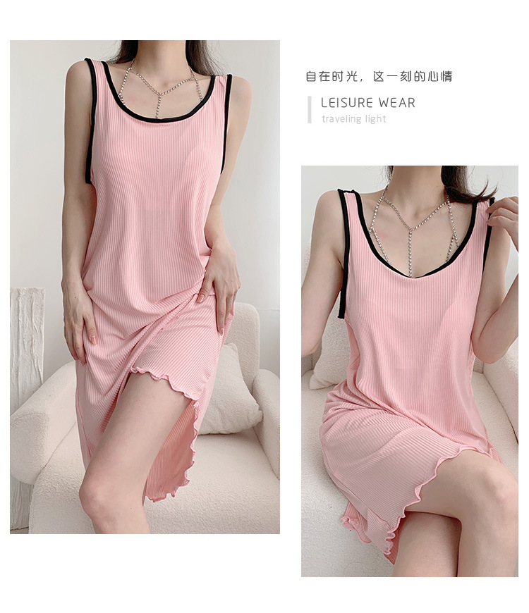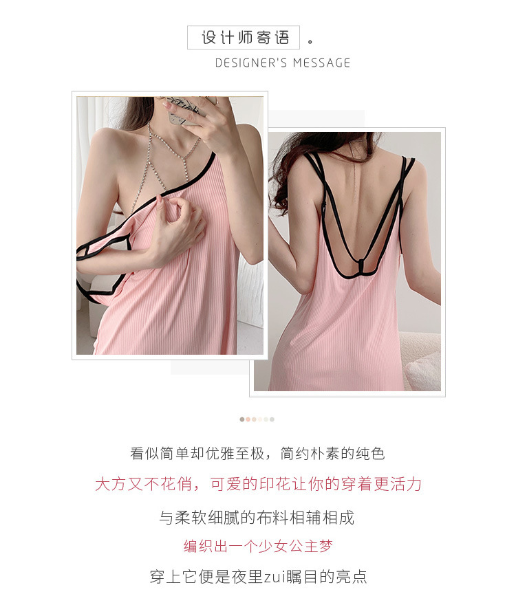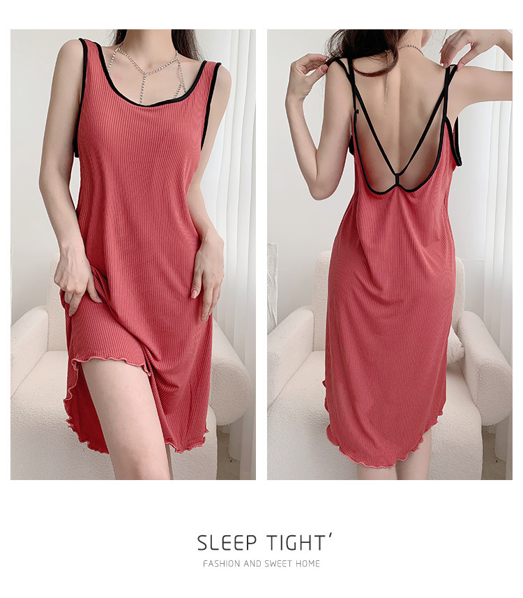 Pijamas de verano con almohadilla en el pecho camisola sexy camisón chica estudiante delgada color sólido flojo dulce desgaste casero