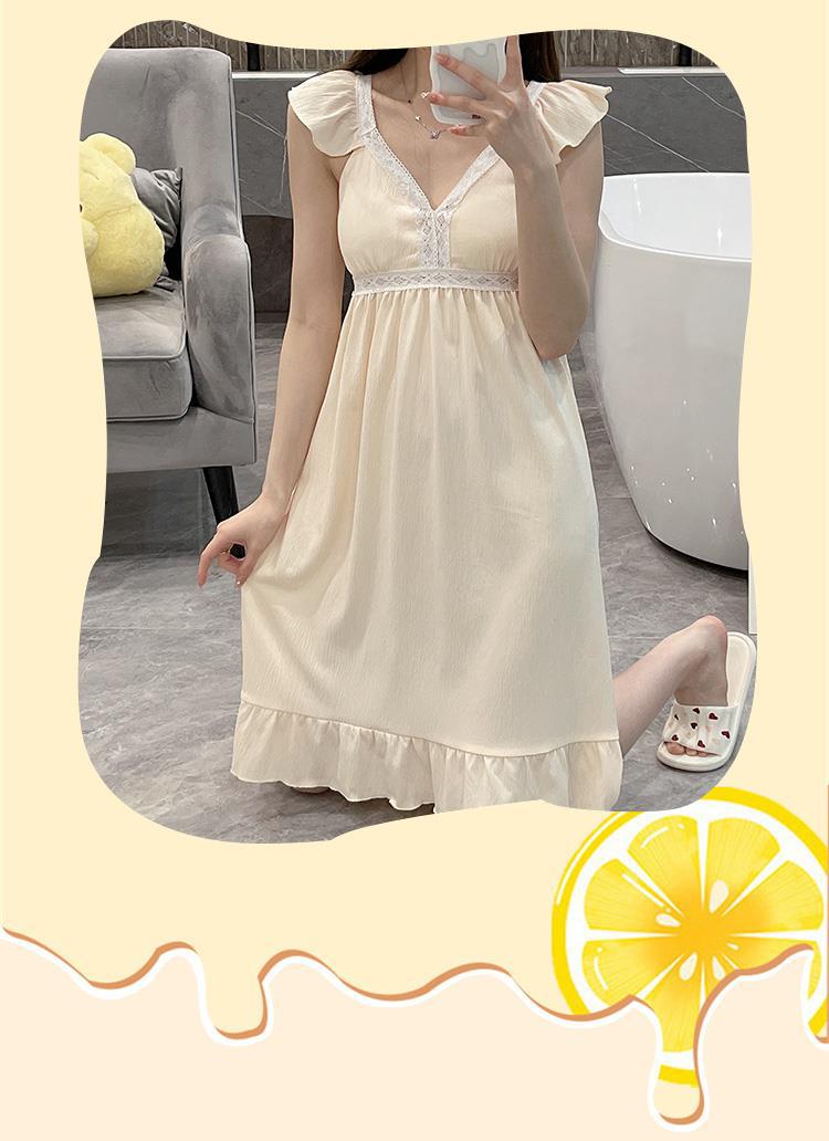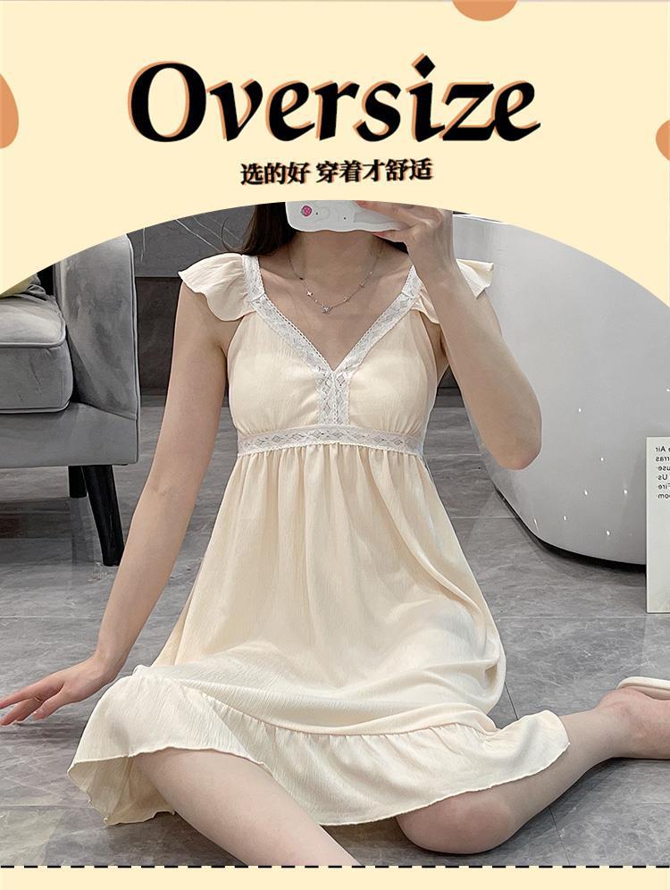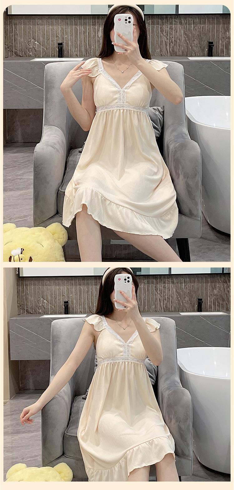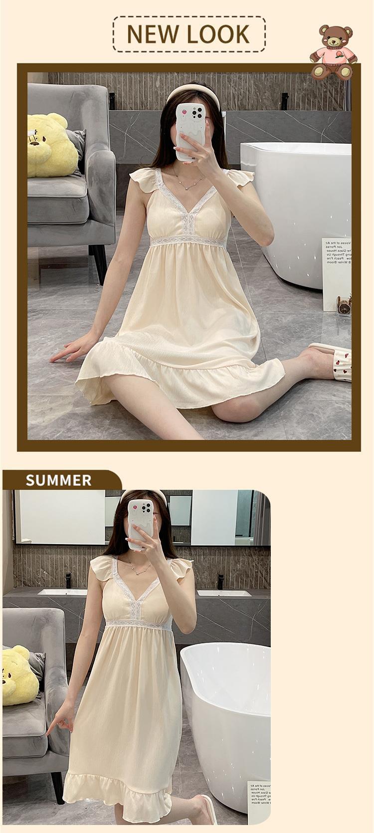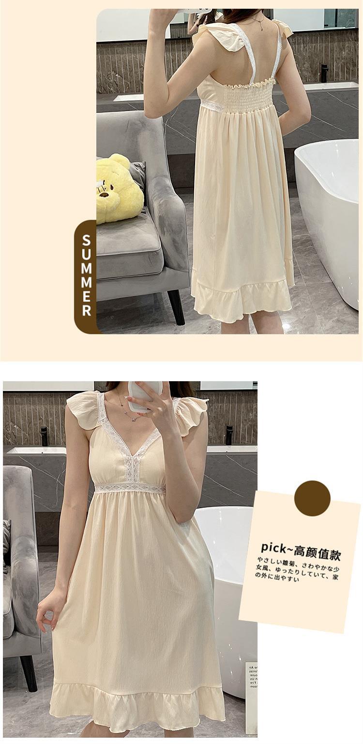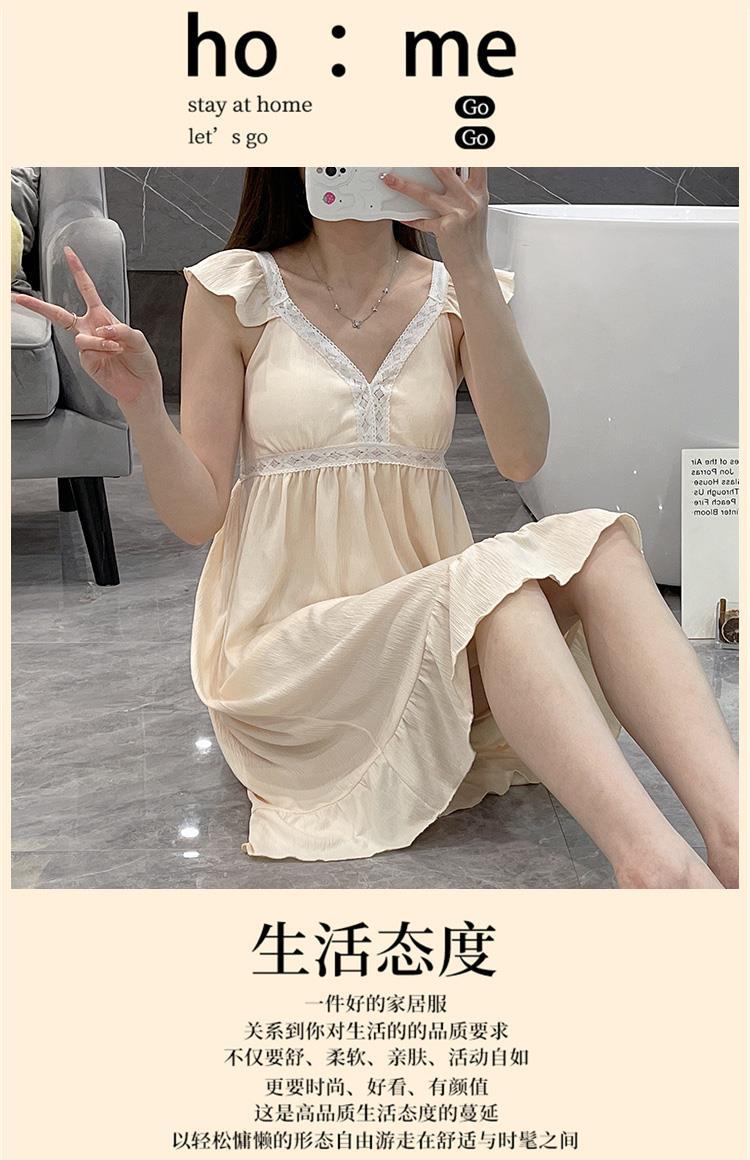 2023 verano pijamas lindo dulce crepé camisón niña con pecho encaje chaleco falda desgaste del hogar