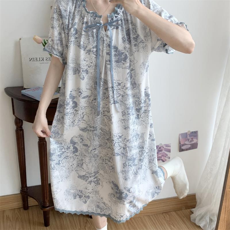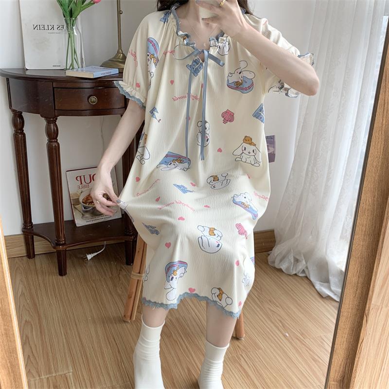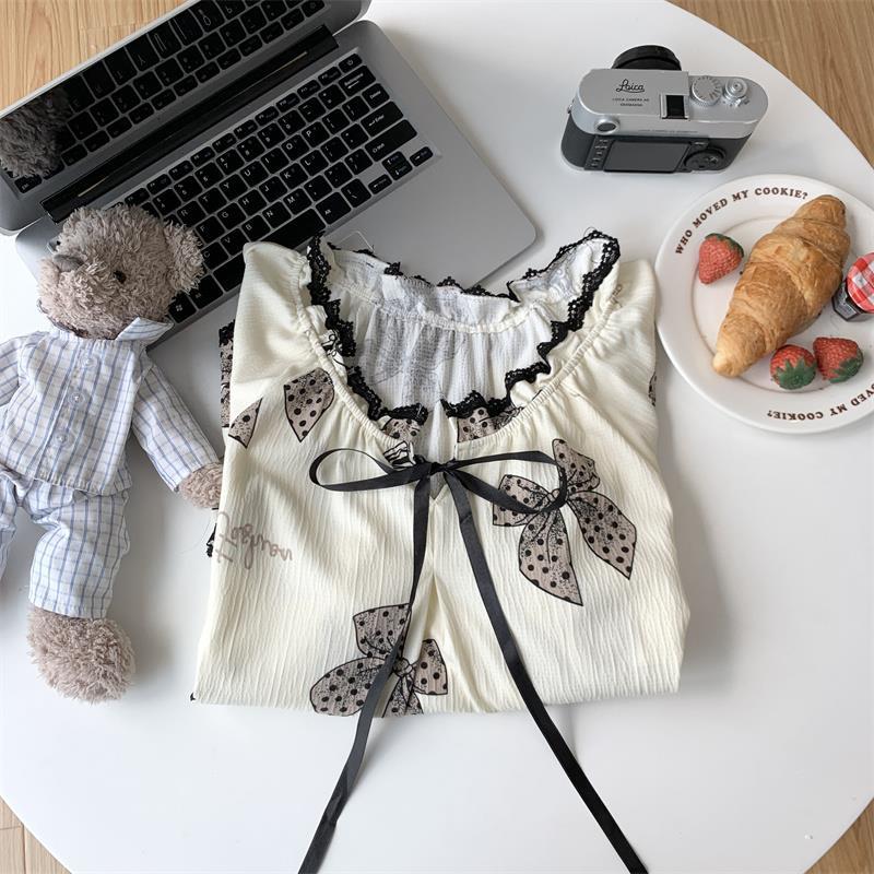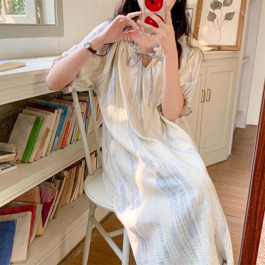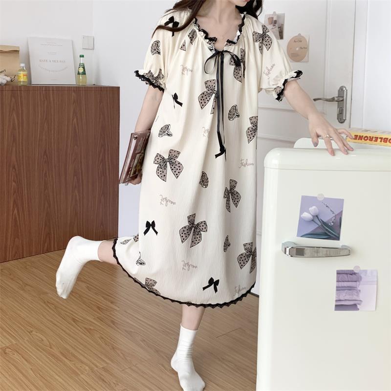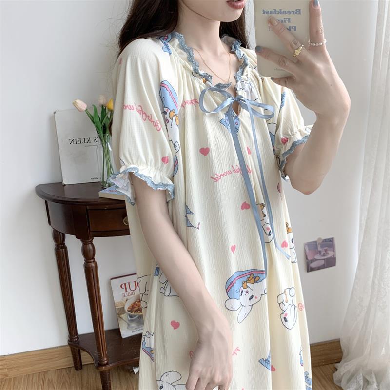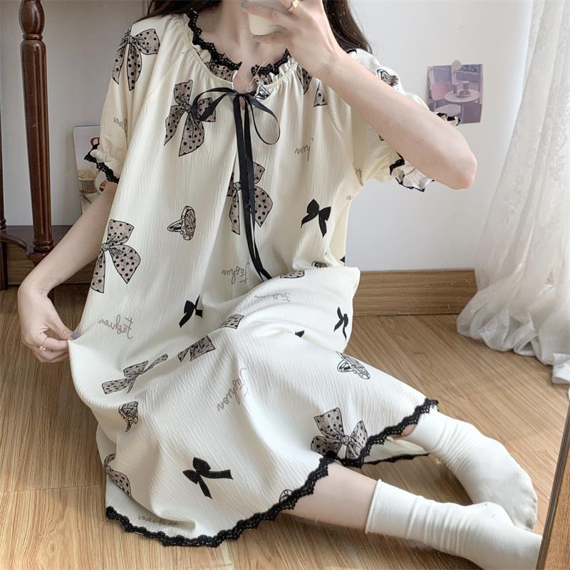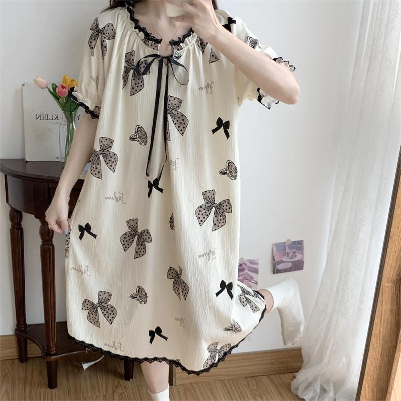 Verano 2023 Pijamas Mujer de manga corta burbuja arruga estudiante lindo ropa exterior suelta ropa de hogar camisón Mujer Princesa estilo