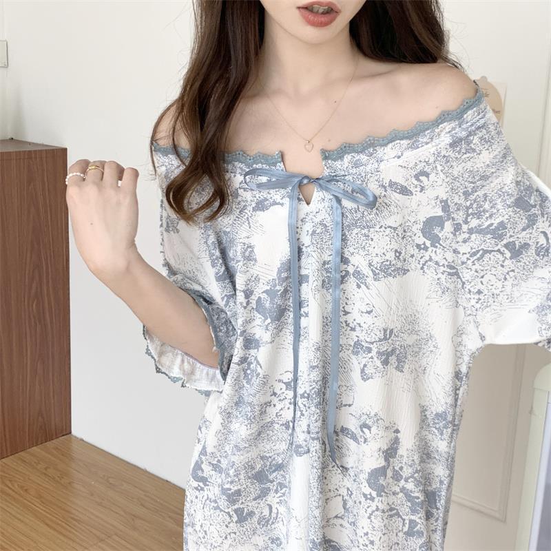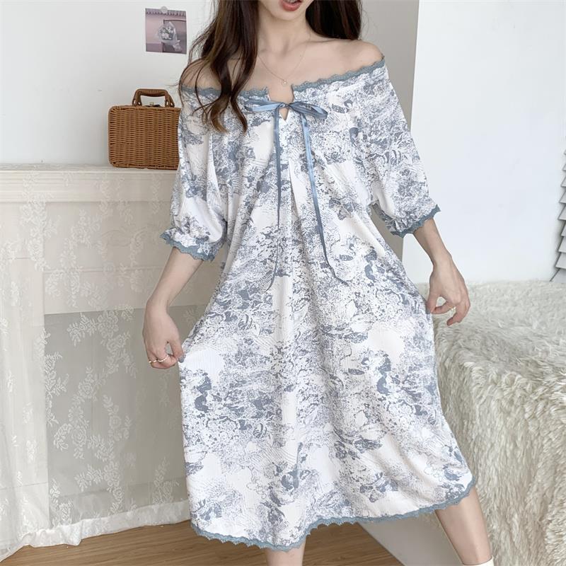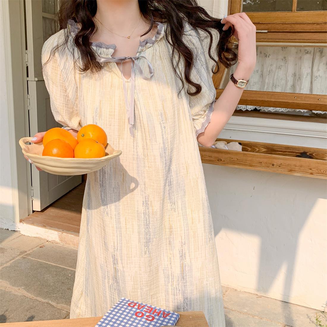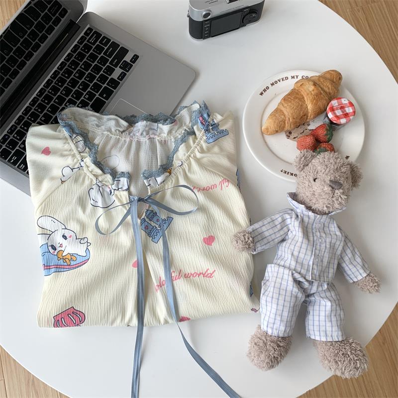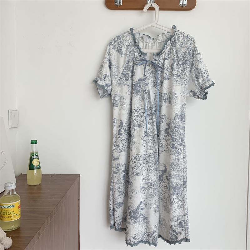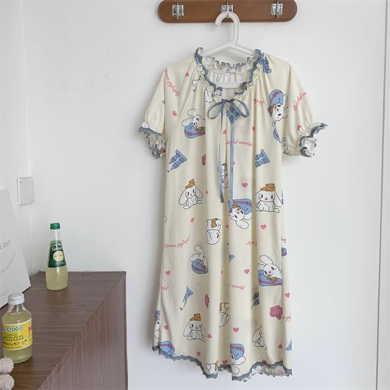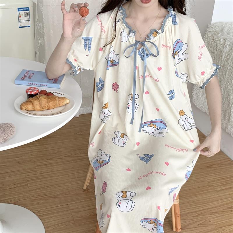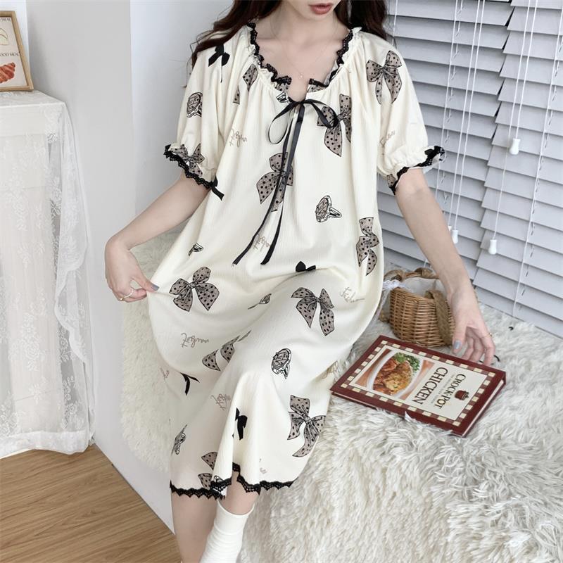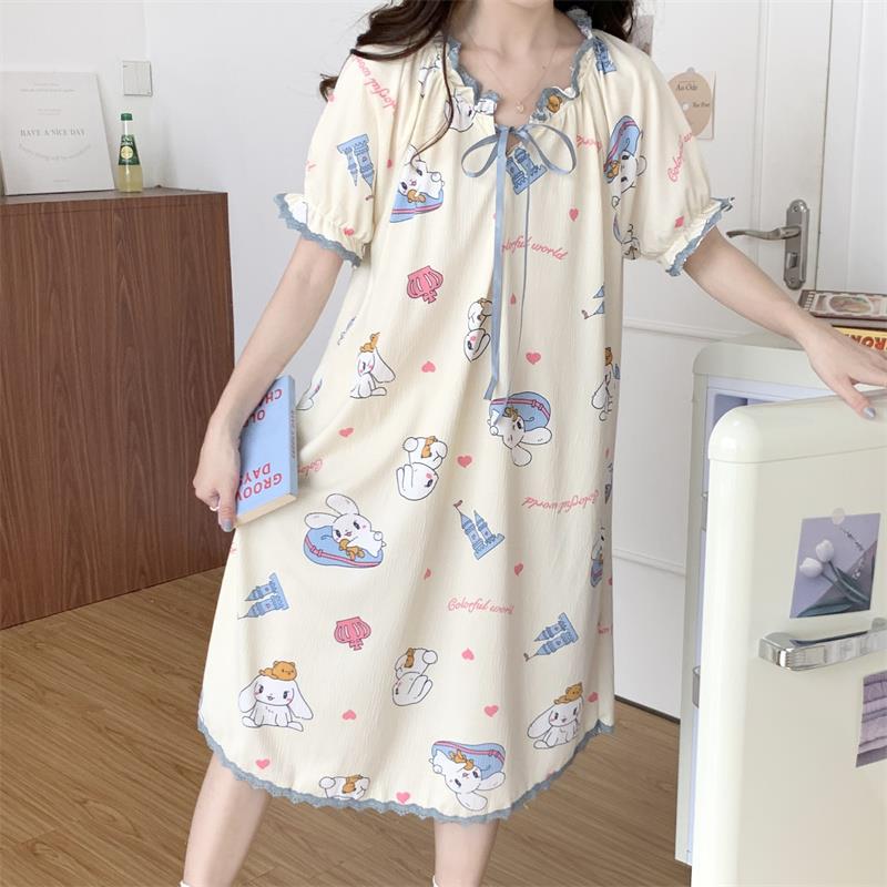 Verano 2023 Pijamas Mujer de manga corta burbuja arruga estudiante lindo ropa exterior suelta ropa de hogar camisón Mujer Princesa estilo