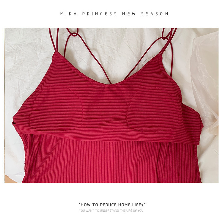 Pijamas de verano con almohadilla en el pecho sexy belleza volver Correa camisón las mujeres color sólido flojo dulce desgaste del hogar