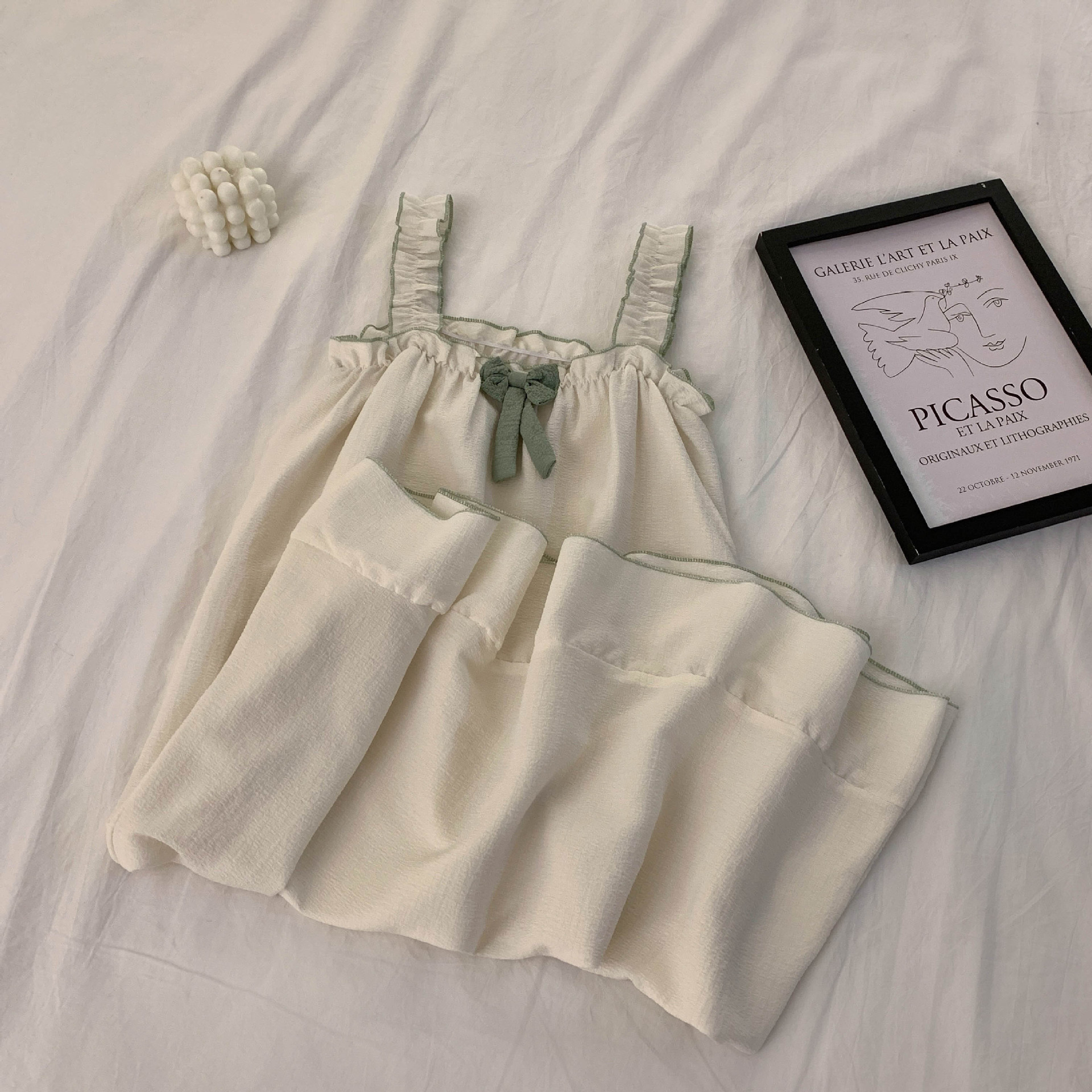Verano Correa camisón mujeres lindo encaje burbuja pijamas de algodón princesa estilo dulce lindo homewear