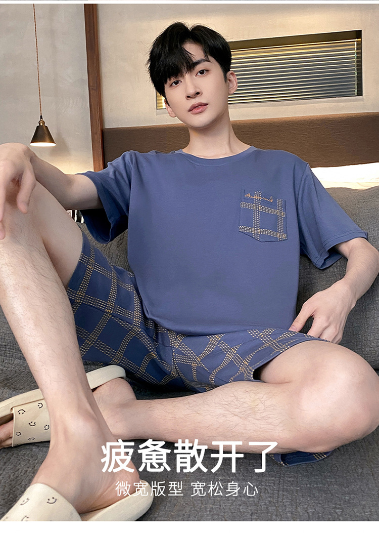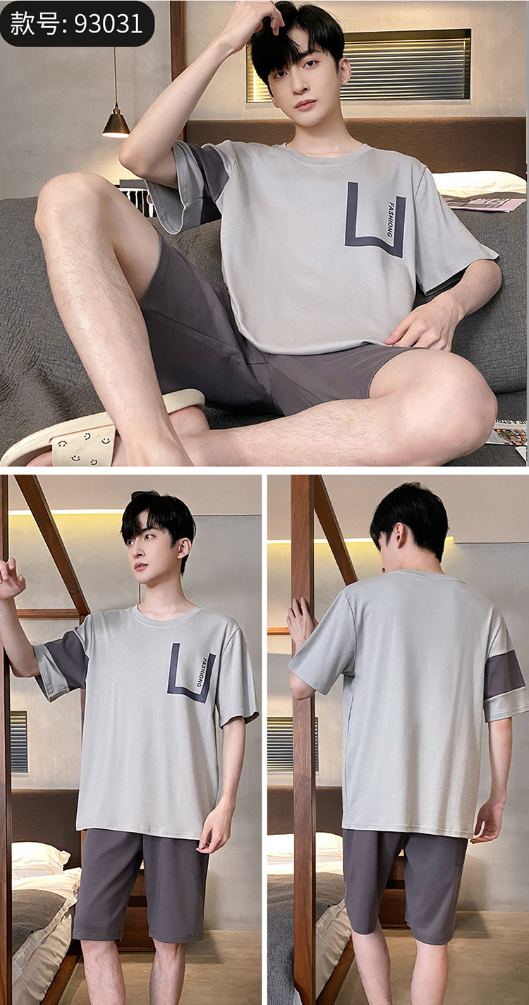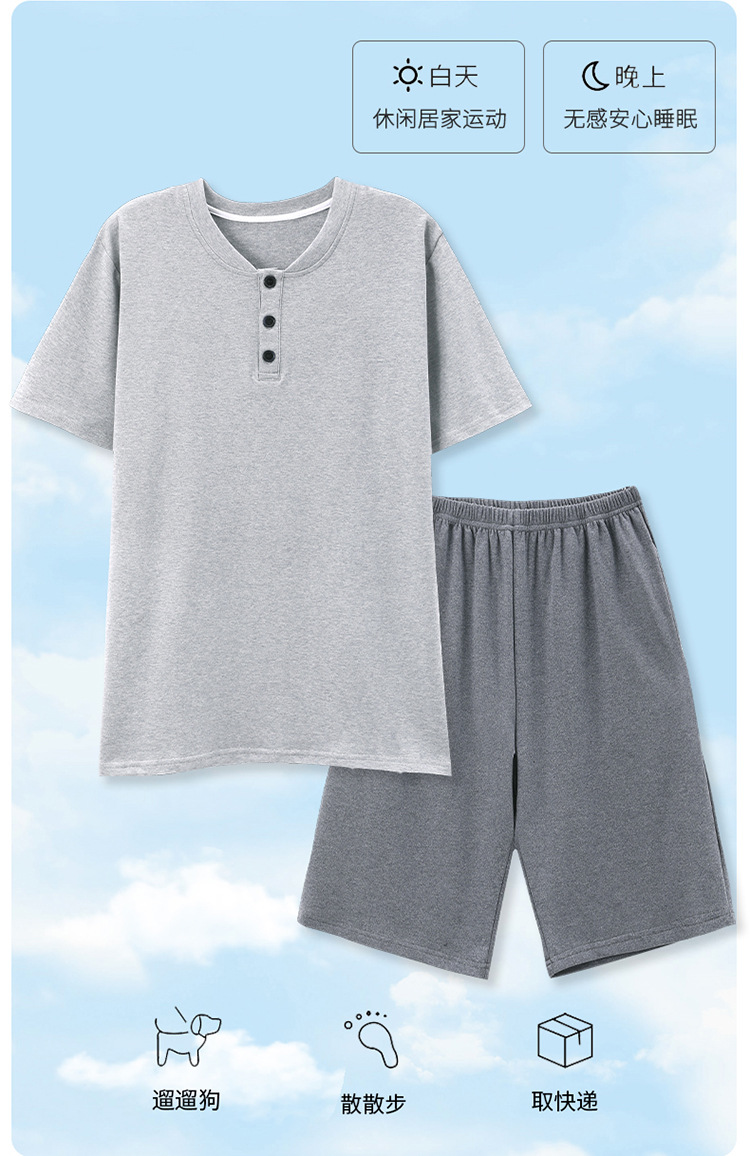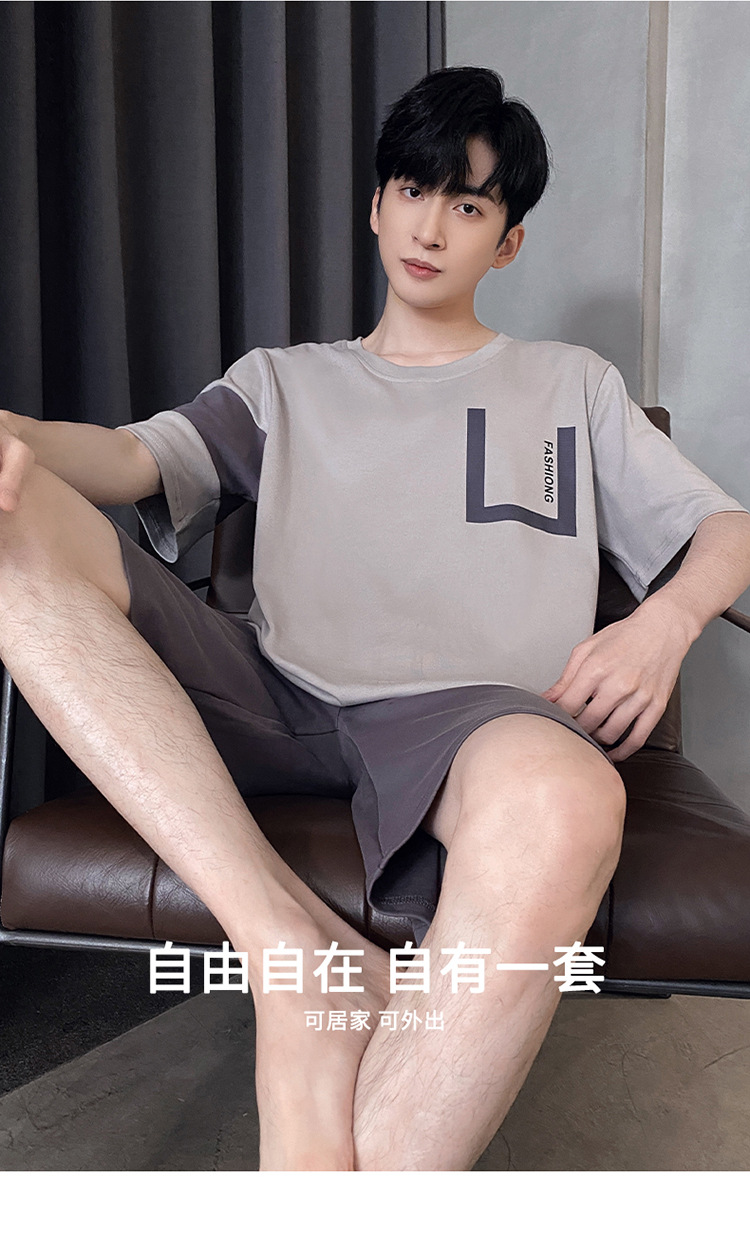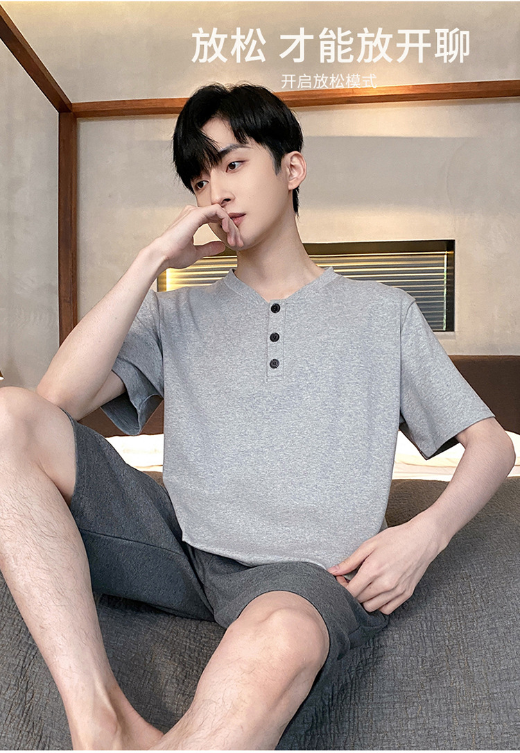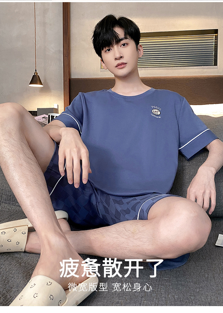 Pijamas de verano de los hombres de algodón artificial de cuello redondo jersey de manga corta pantalones cortos traje casual desgaste del hogar se puede usar fuera supermercado