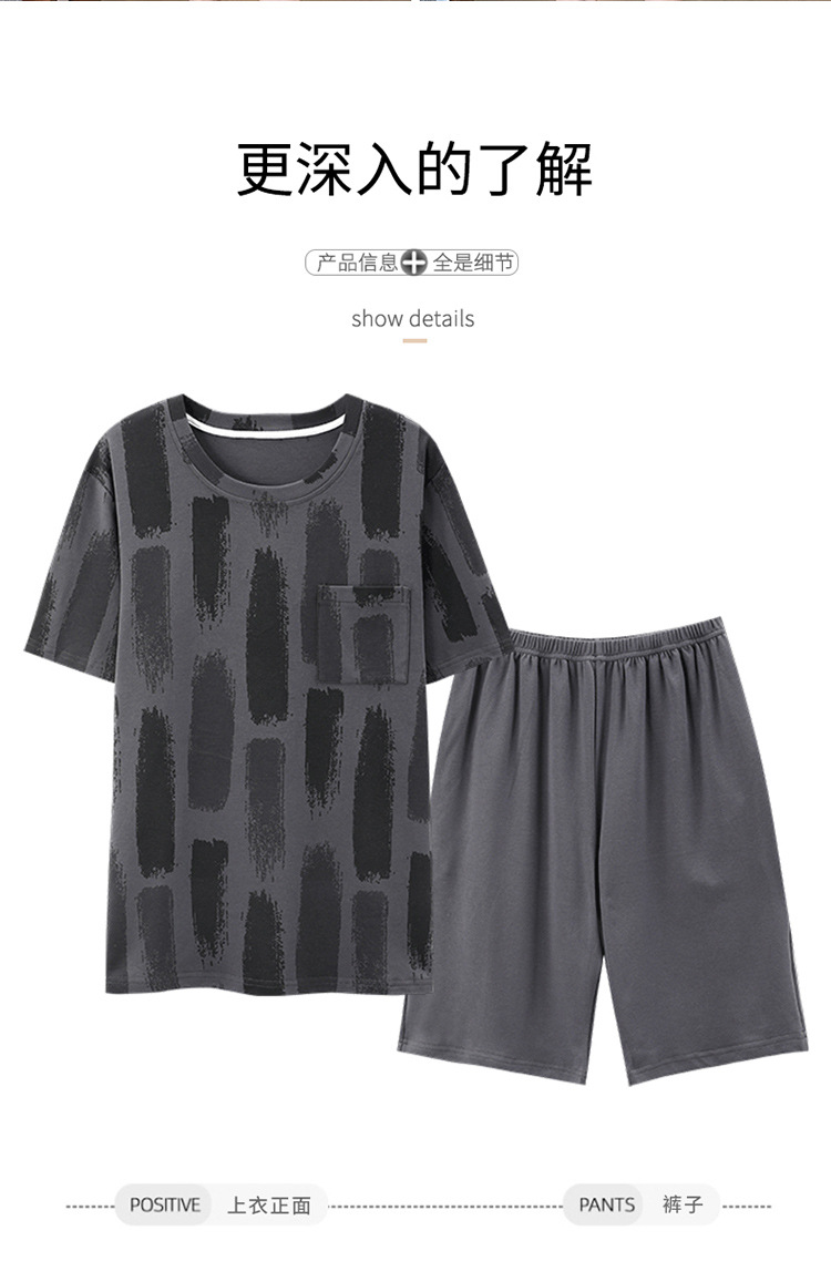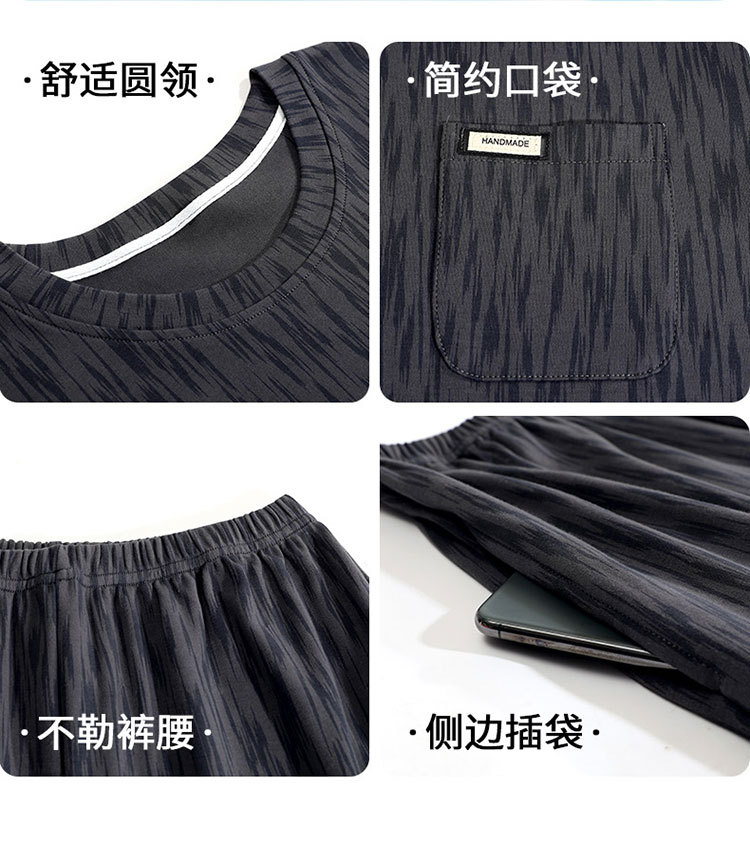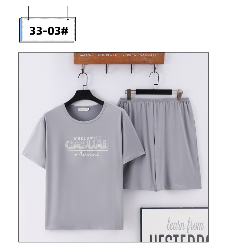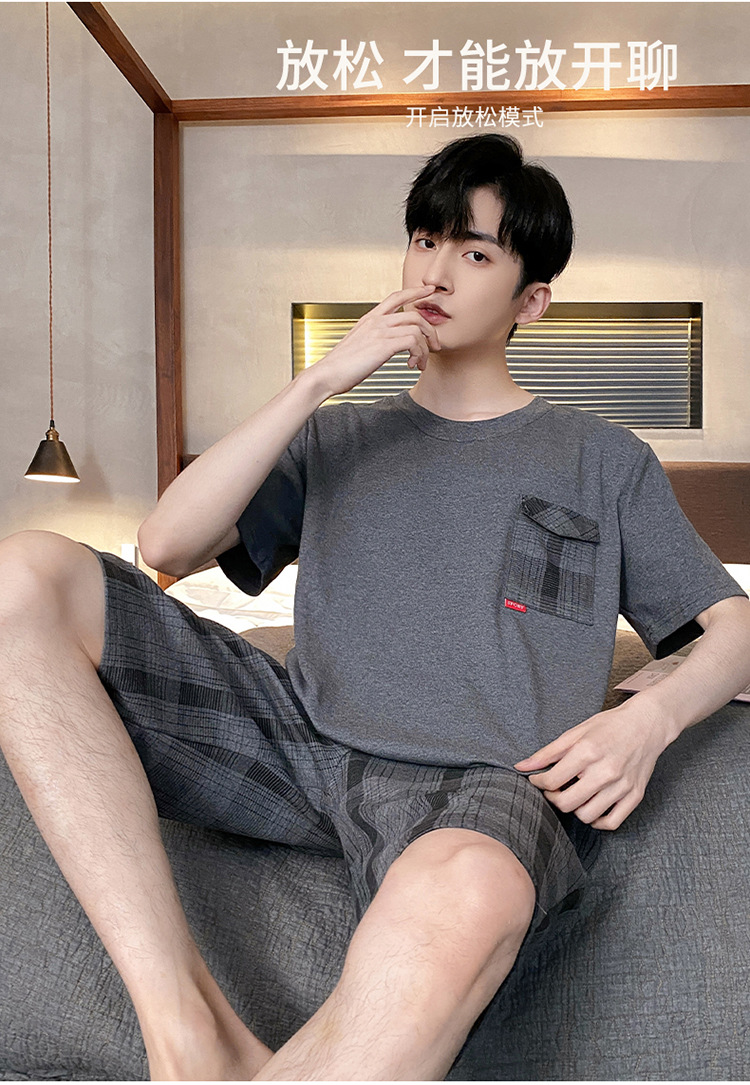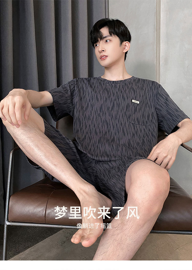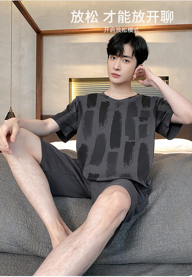 Pijamas de verano de los hombres de algodón artificial de cuello redondo jersey de manga corta pantalones cortos traje casual desgaste del hogar se puede usar fuera supermercado