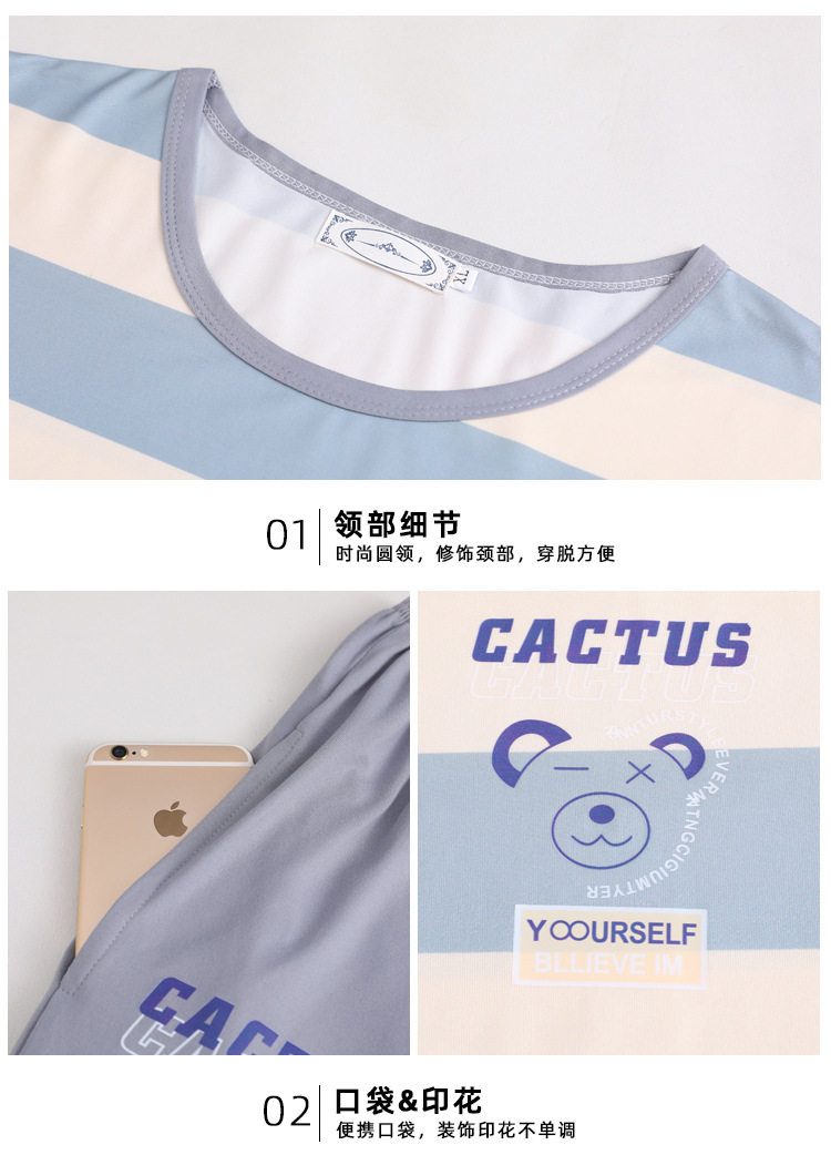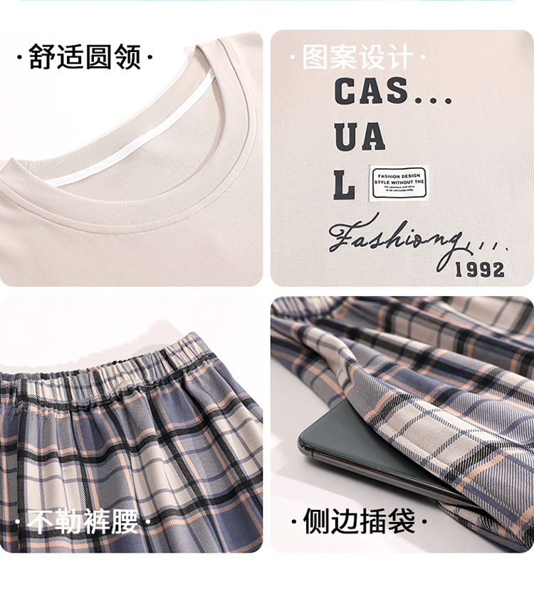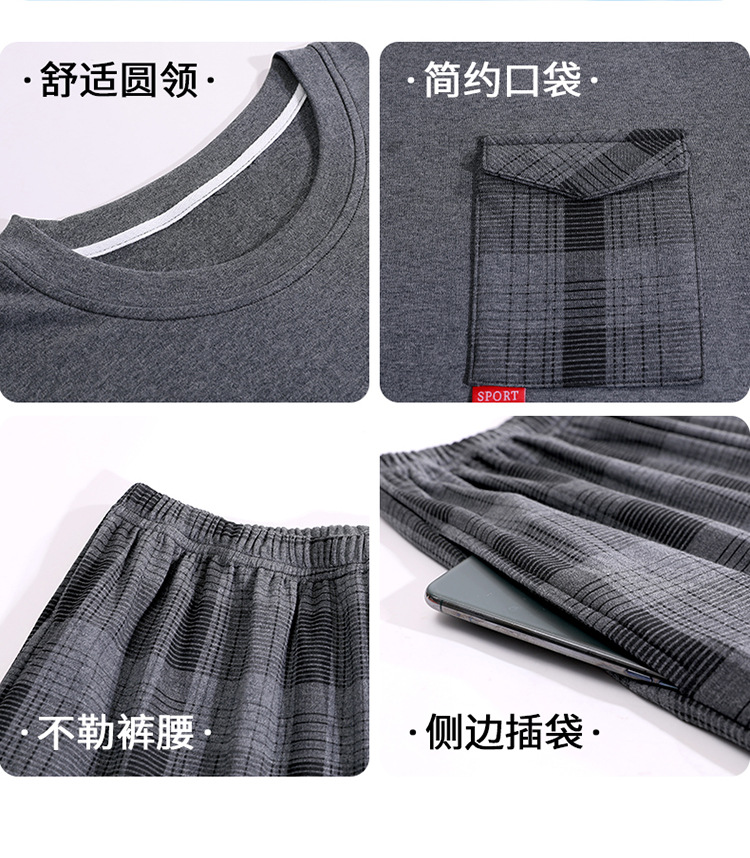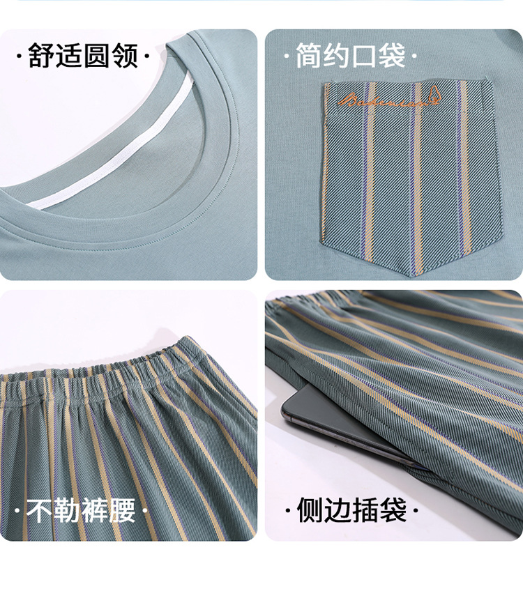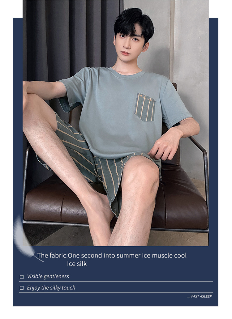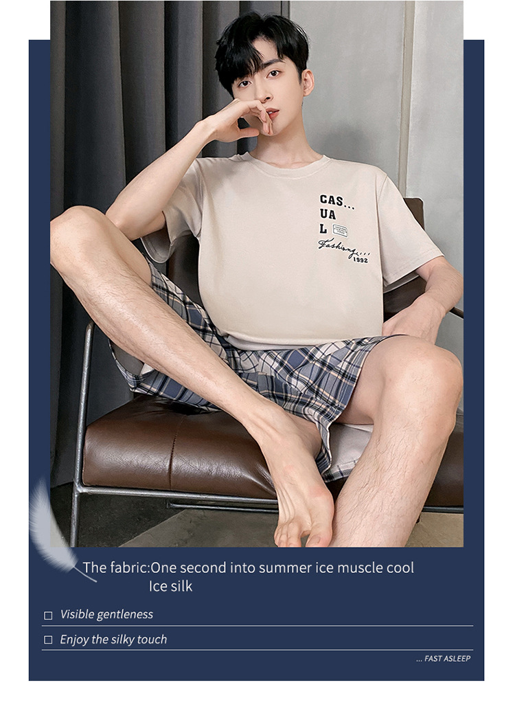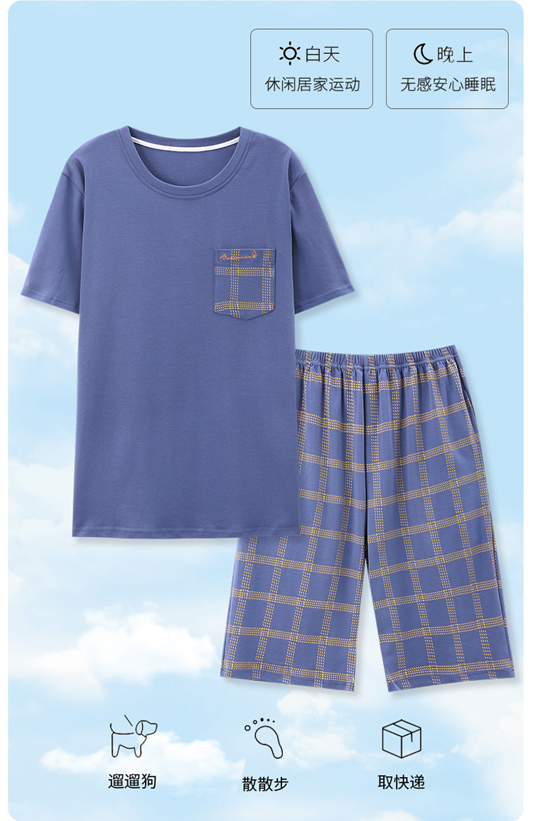 Pijamas de verano de los hombres de algodón artificial de cuello redondo jersey de manga corta pantalones cortos traje casual desgaste del hogar se puede usar fuera supermercado