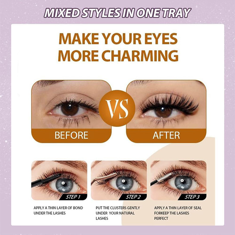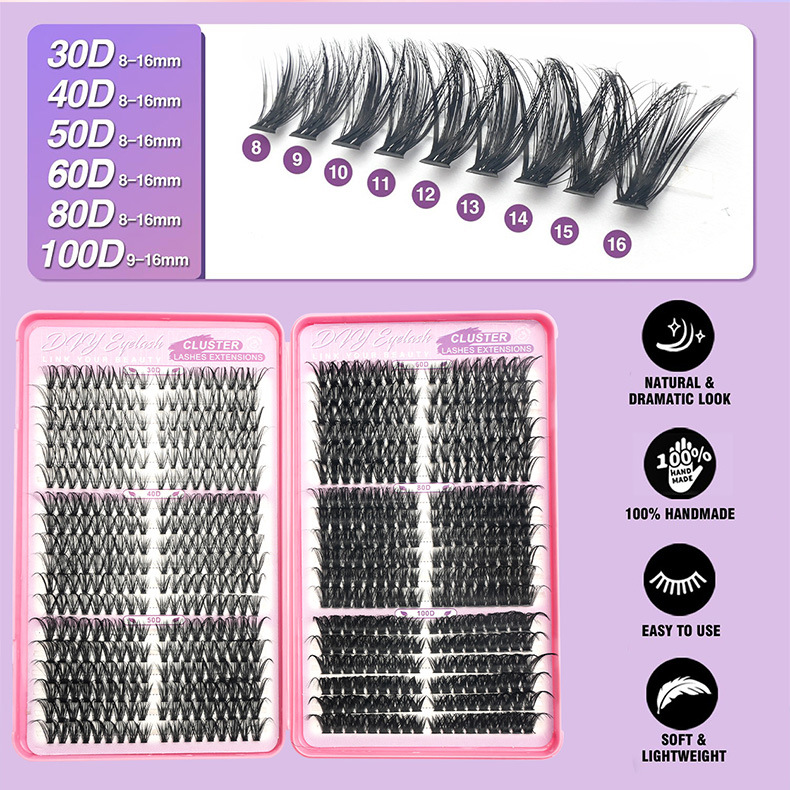 36 filas de 648 pestañas falsas 30D - 100D transfronterizas DIY Europa y América Amazon venta caliente conjunto de cabello segmentado gradiente