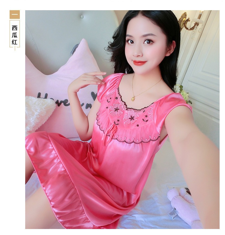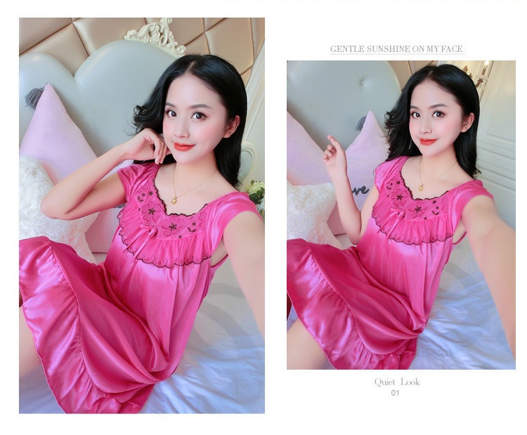 2023 verano camisón de seda de hielo de las mujeres de seda de hielo sedoso de encaje sexy suave cómodo pijamas desgaste del hogar al por mayor