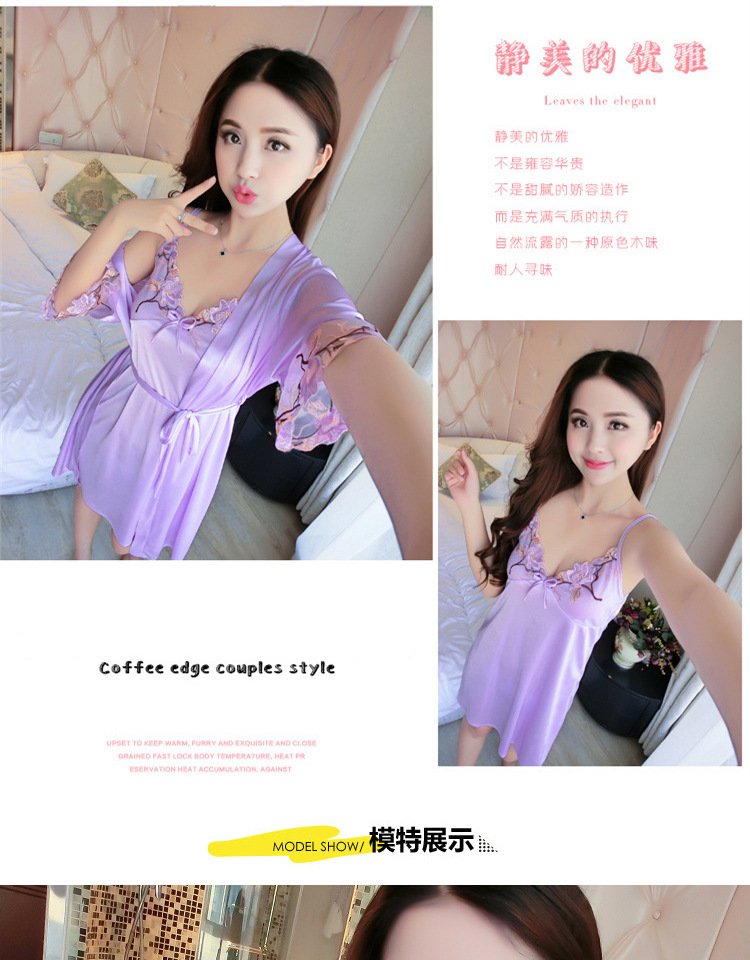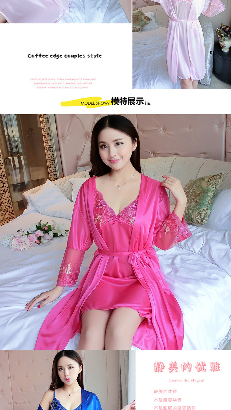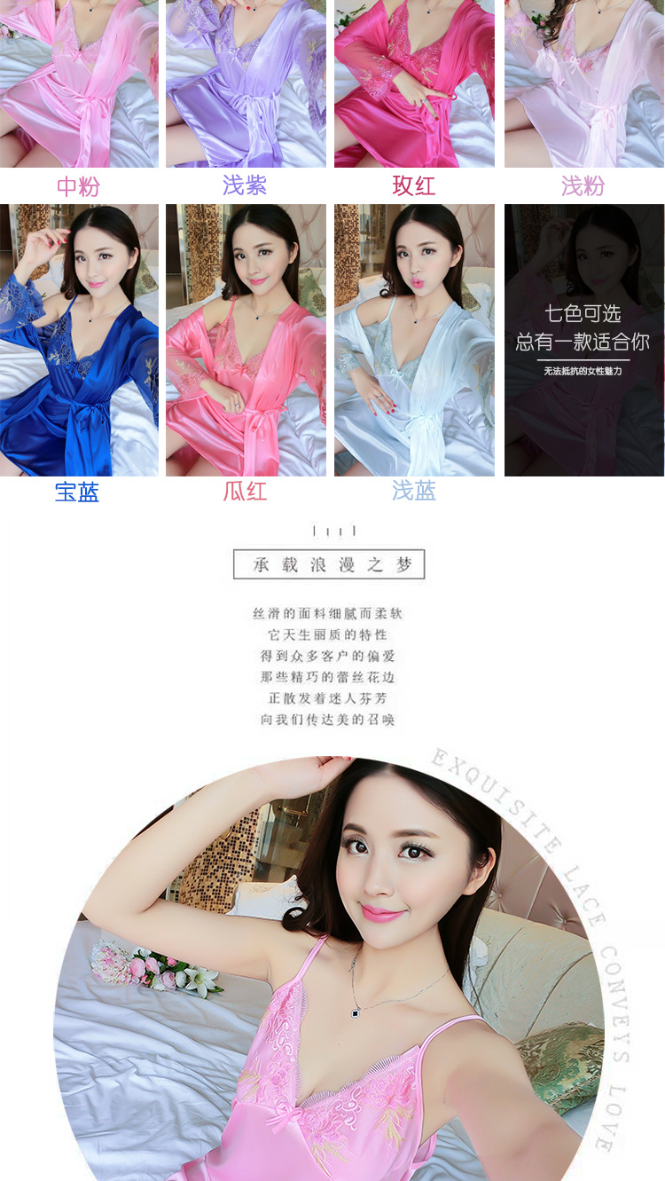 Pijamas de las mujeres de primavera y verano sexy correa de seda de hielo camisón seductora delgada de dos piezas más tamaño suelta desgaste del hogar Comercio exterior