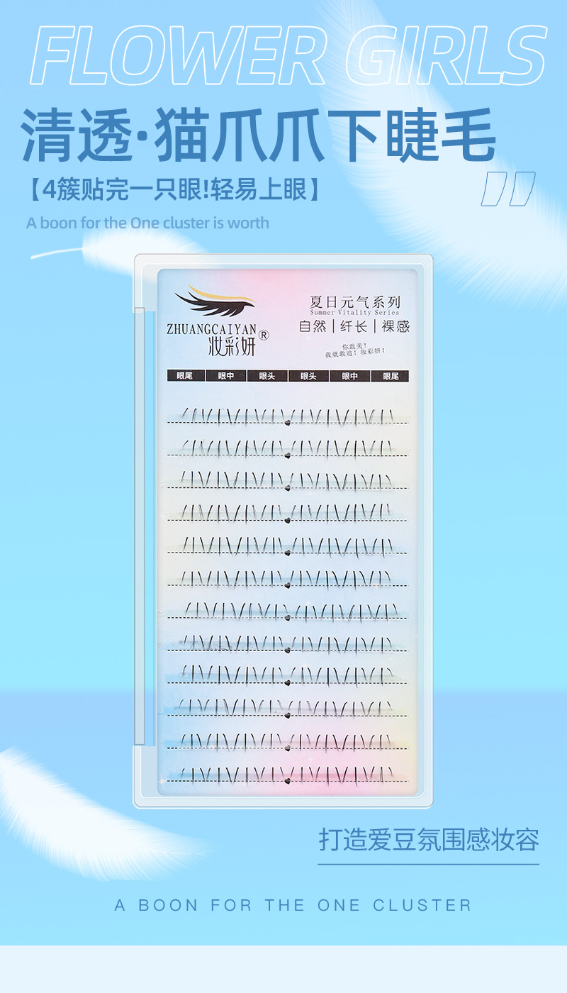 Las pestañas debajo de las garras del gato perezoso de gran capacidad perezoso demonio ultrafina terrier natural un solo racimo de cómic pestañas largas