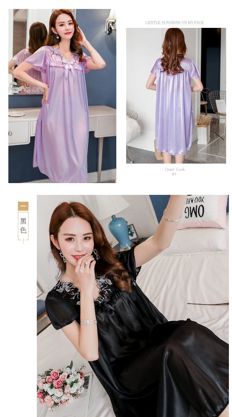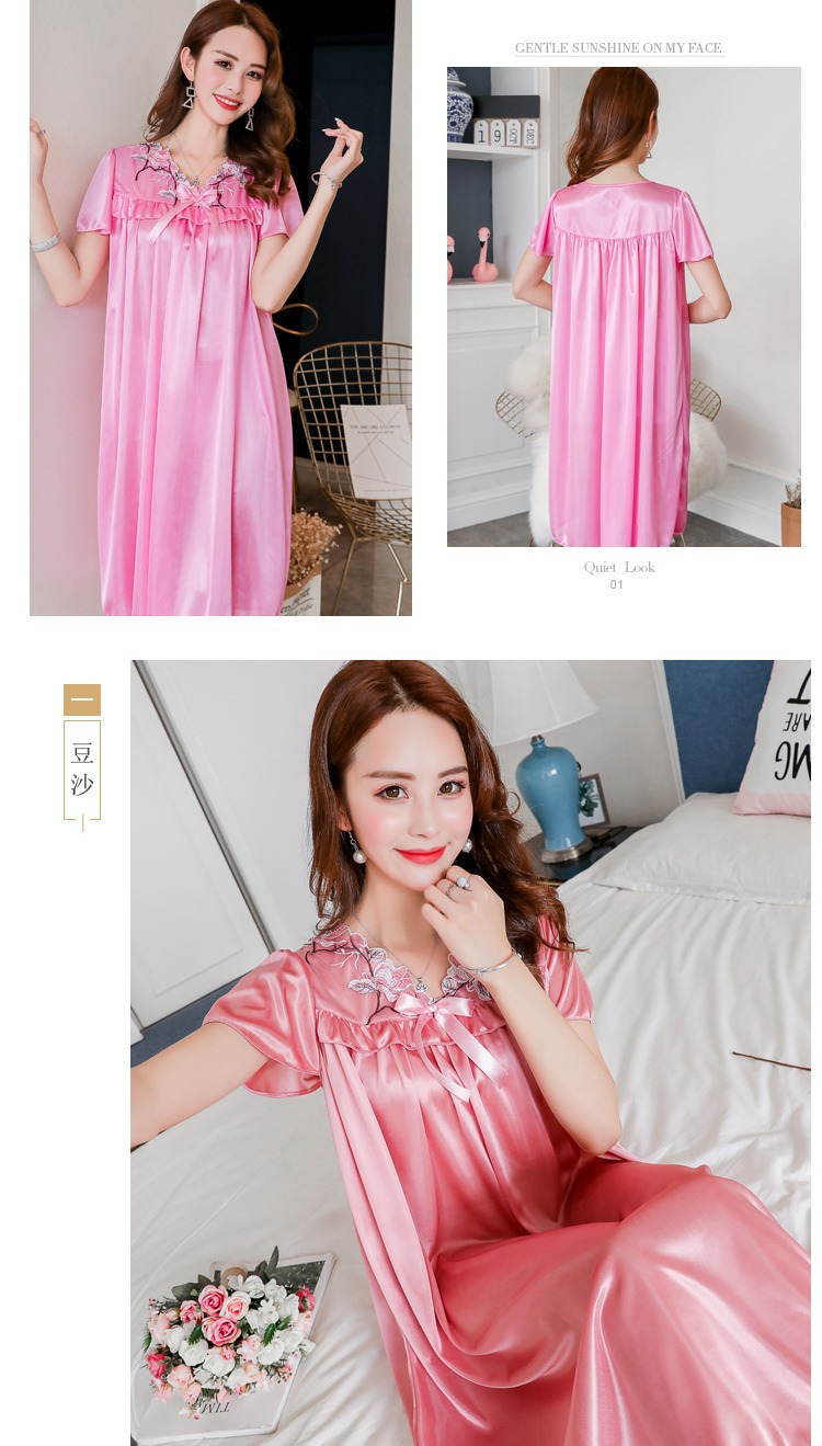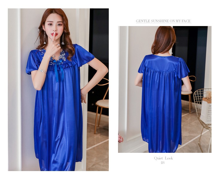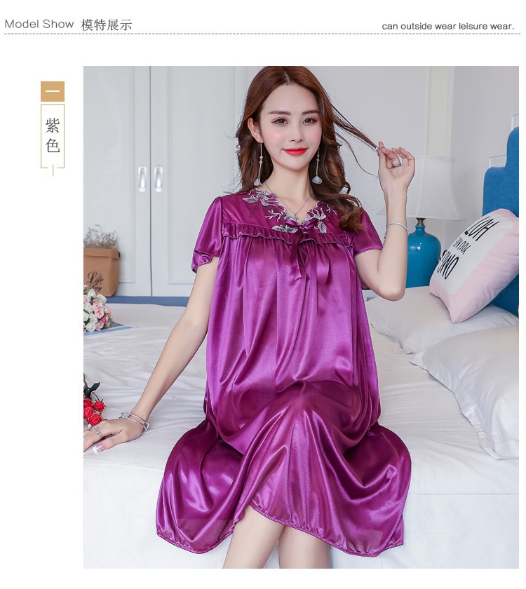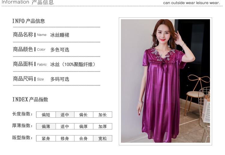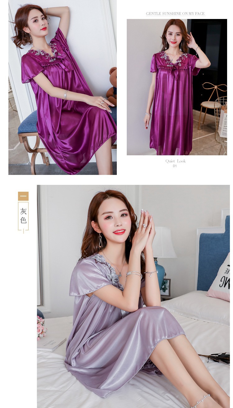 2023 camisón de seda de hielo de verano vestido largo de mujer delgado sedoso suave y cómodo pijamas de mujer ropa para el hogar de mediana edad Comercio exterior