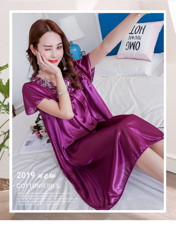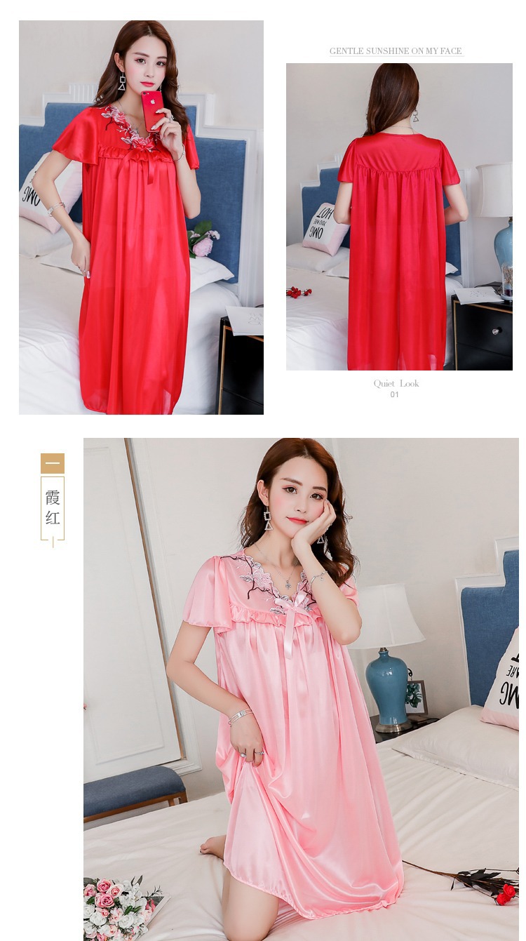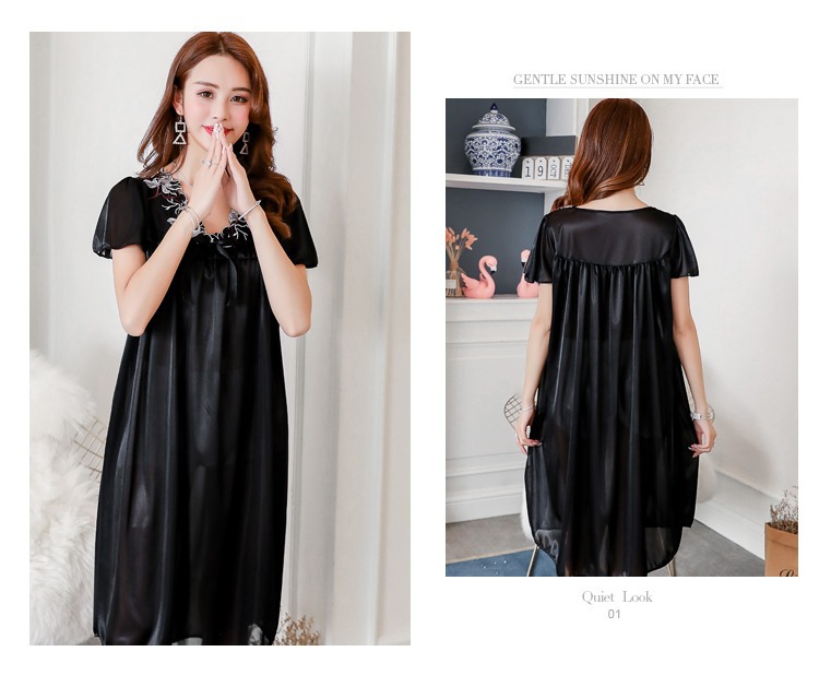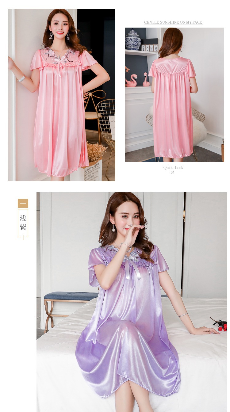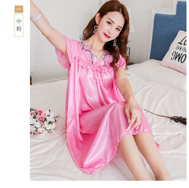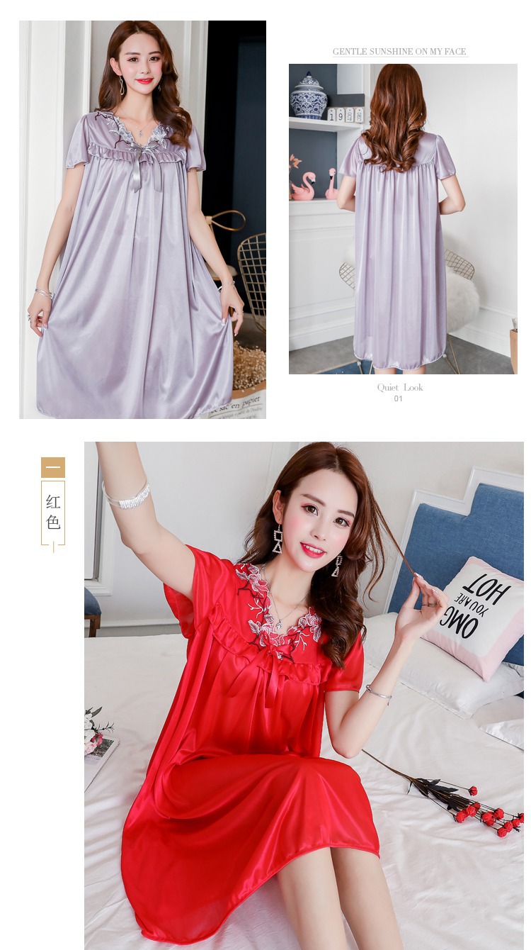 2023 camisón de seda de hielo de verano vestido largo de mujer delgado sedoso suave y cómodo pijamas de mujer ropa para el hogar de mediana edad Comercio exterior