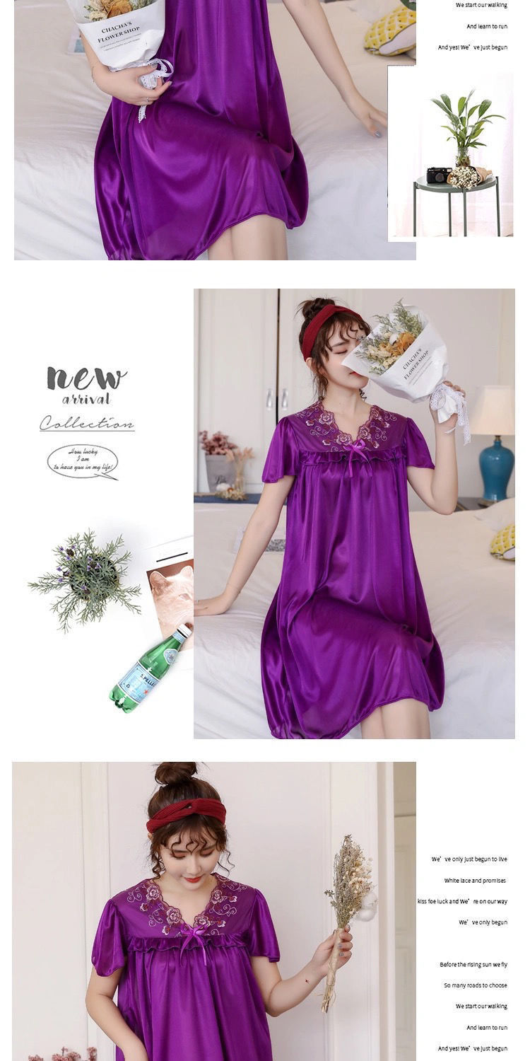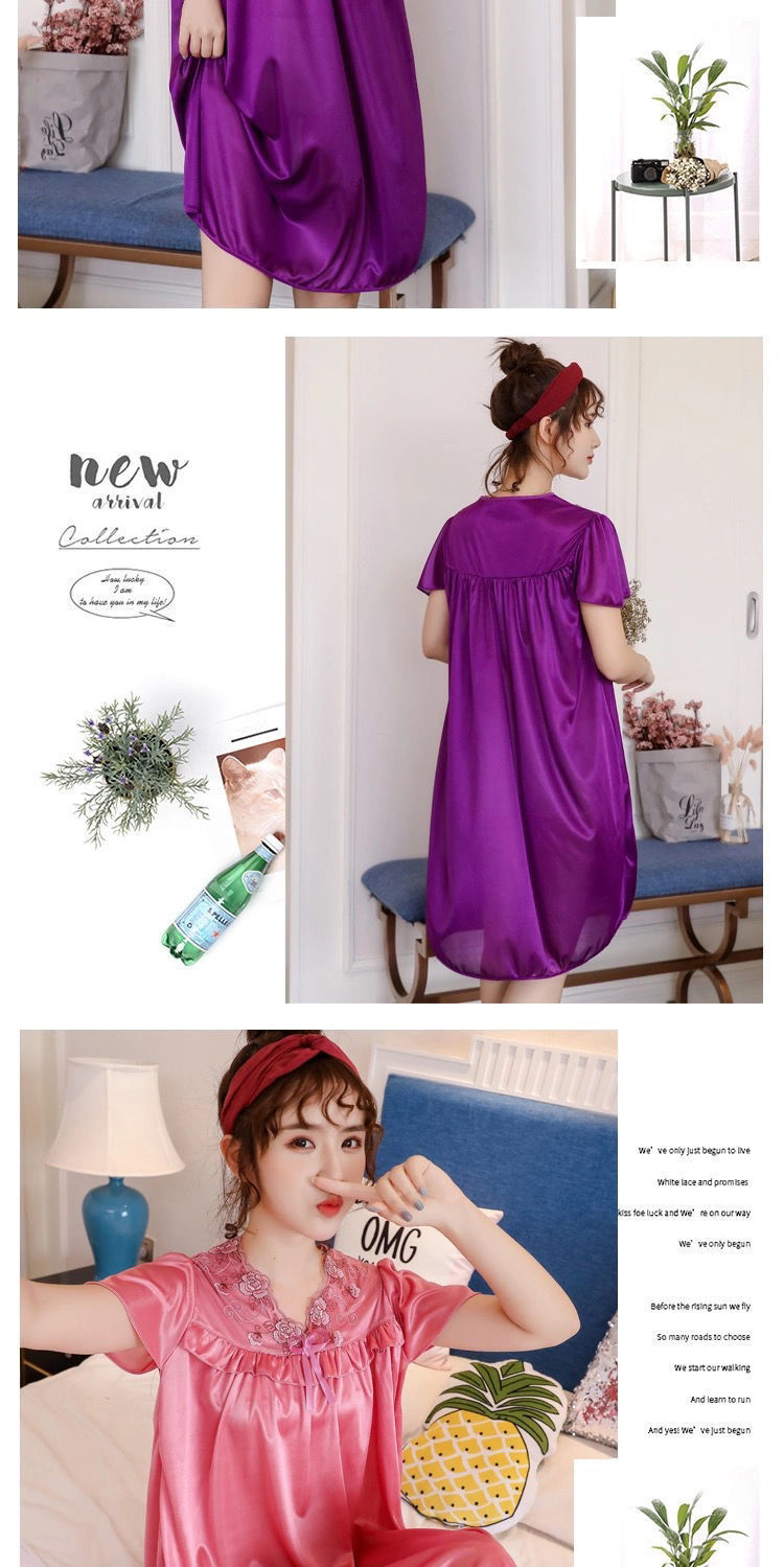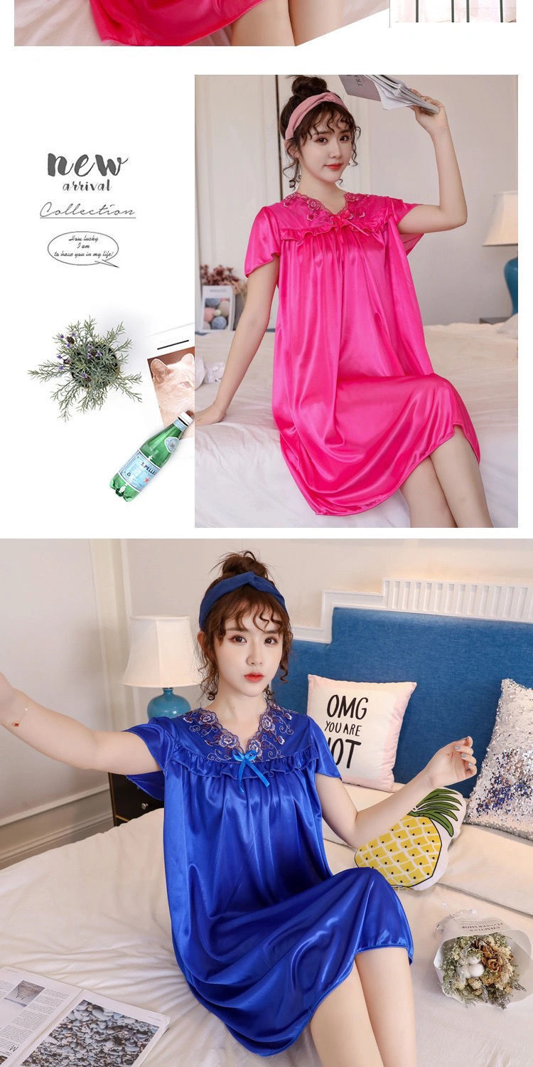 2023 camisón de seda de hielo de verano Vestido largo de mujer fina seda de hielo de mediana edad suave y cómodo pijamas ropa para el hogar al por mayor comercio exterior