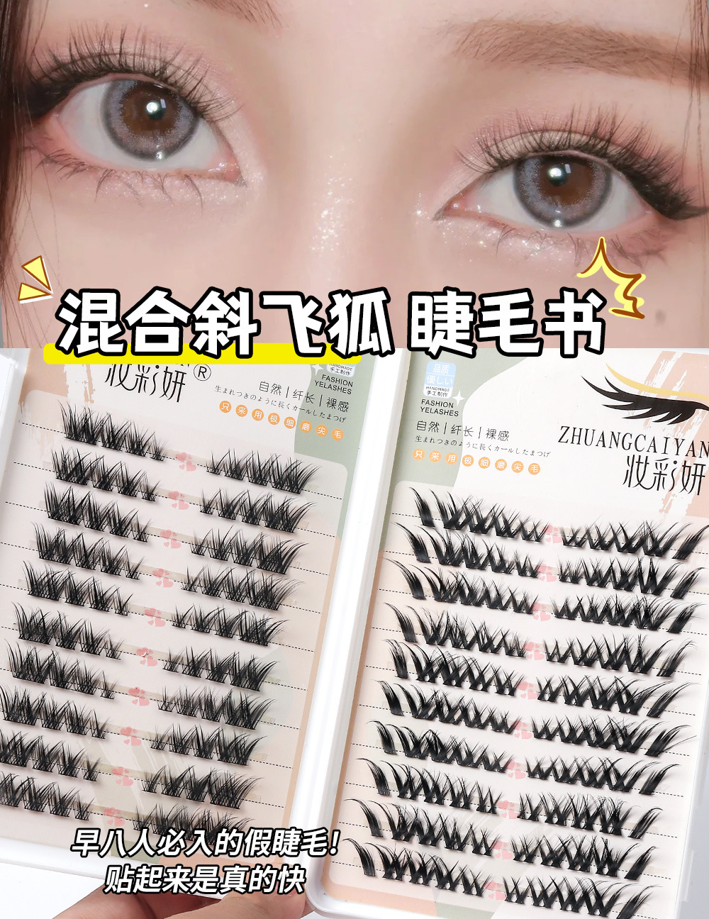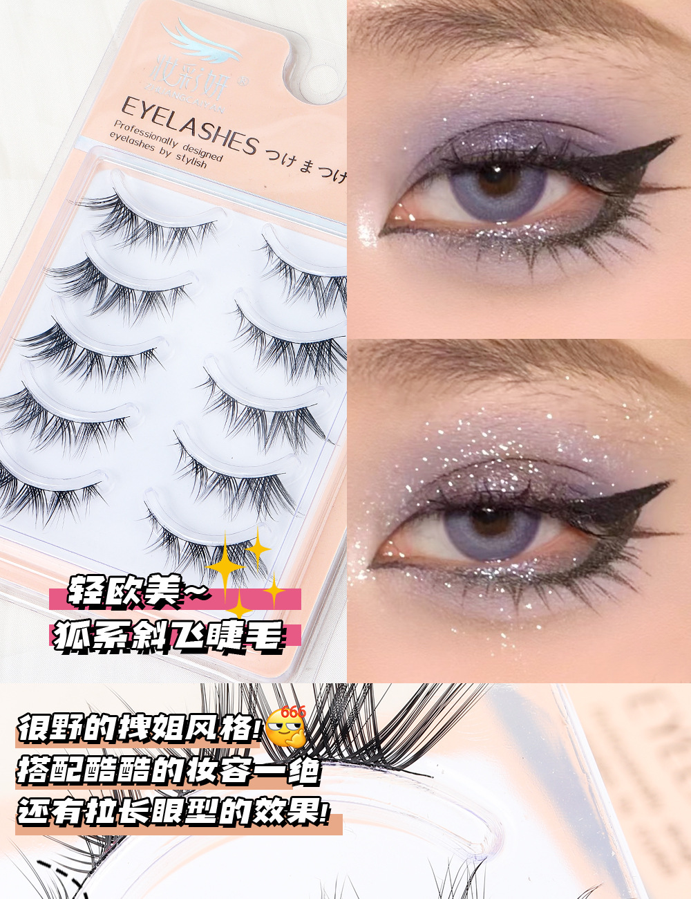 Pestañas postizas voladoras oblicuas de estilo zorro luz cola de ojo europea y americana alargadas pestañas de ojo de diablo gruesas pestañas de ojo de zorro de sangre mixta de dibujos animados
