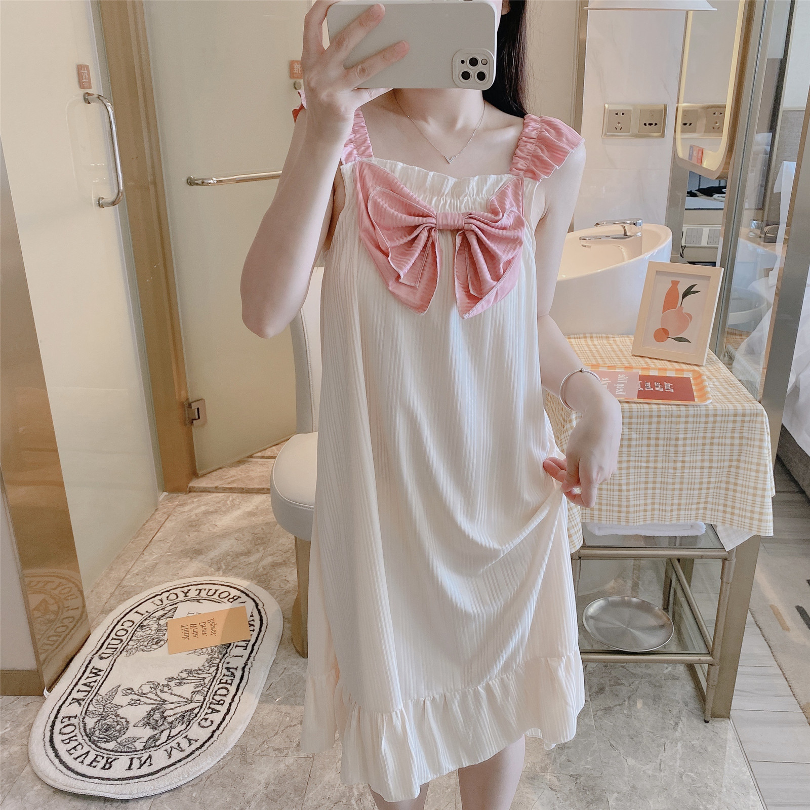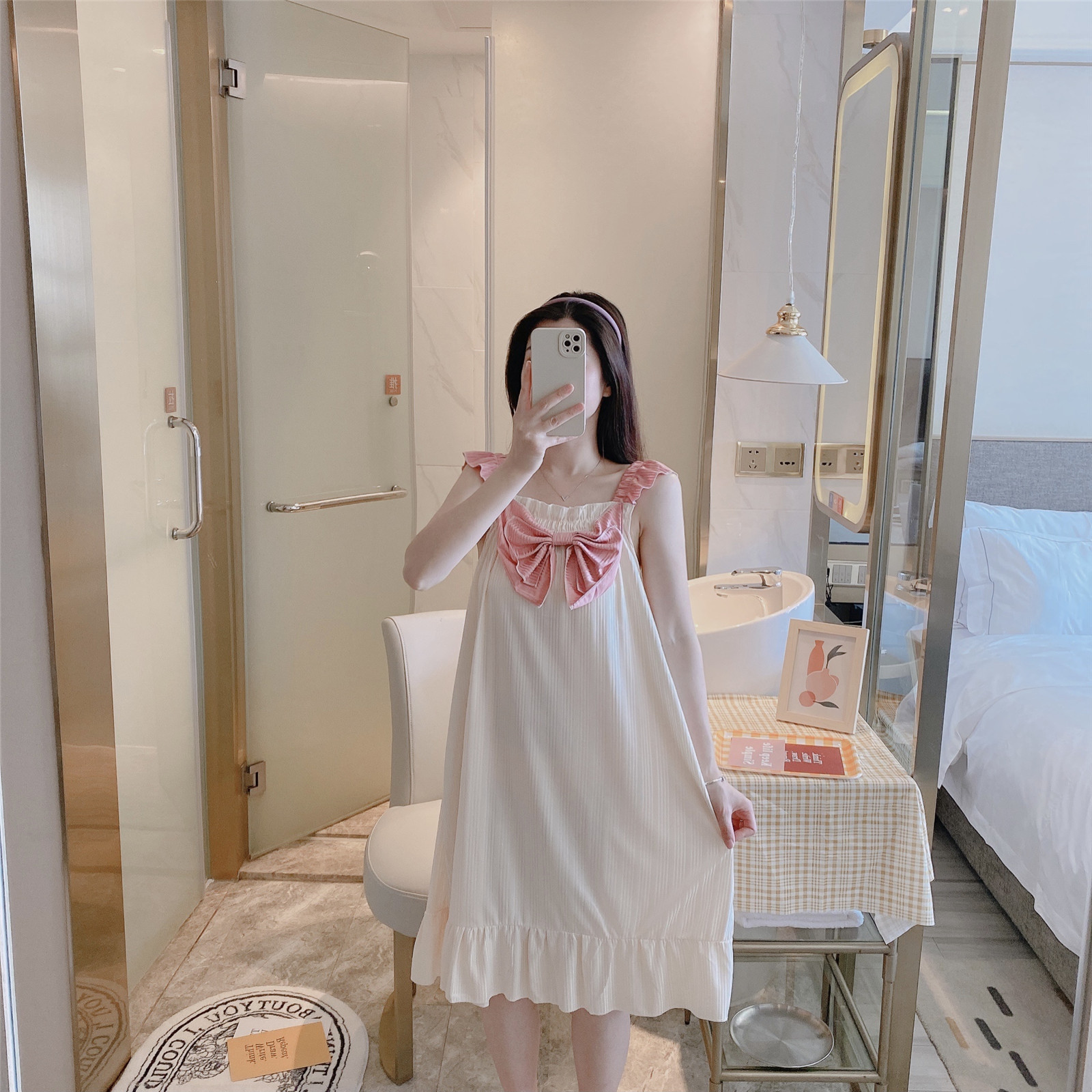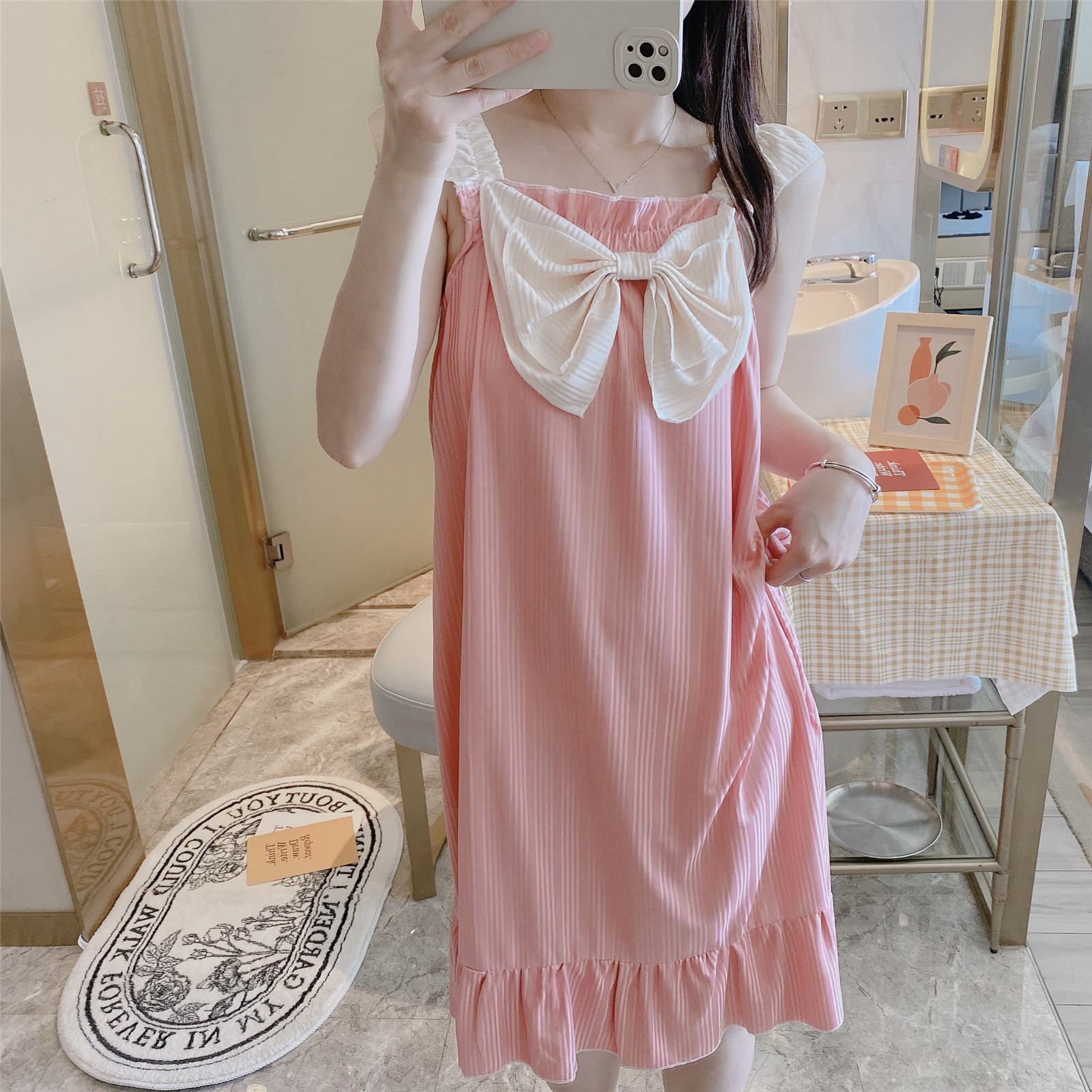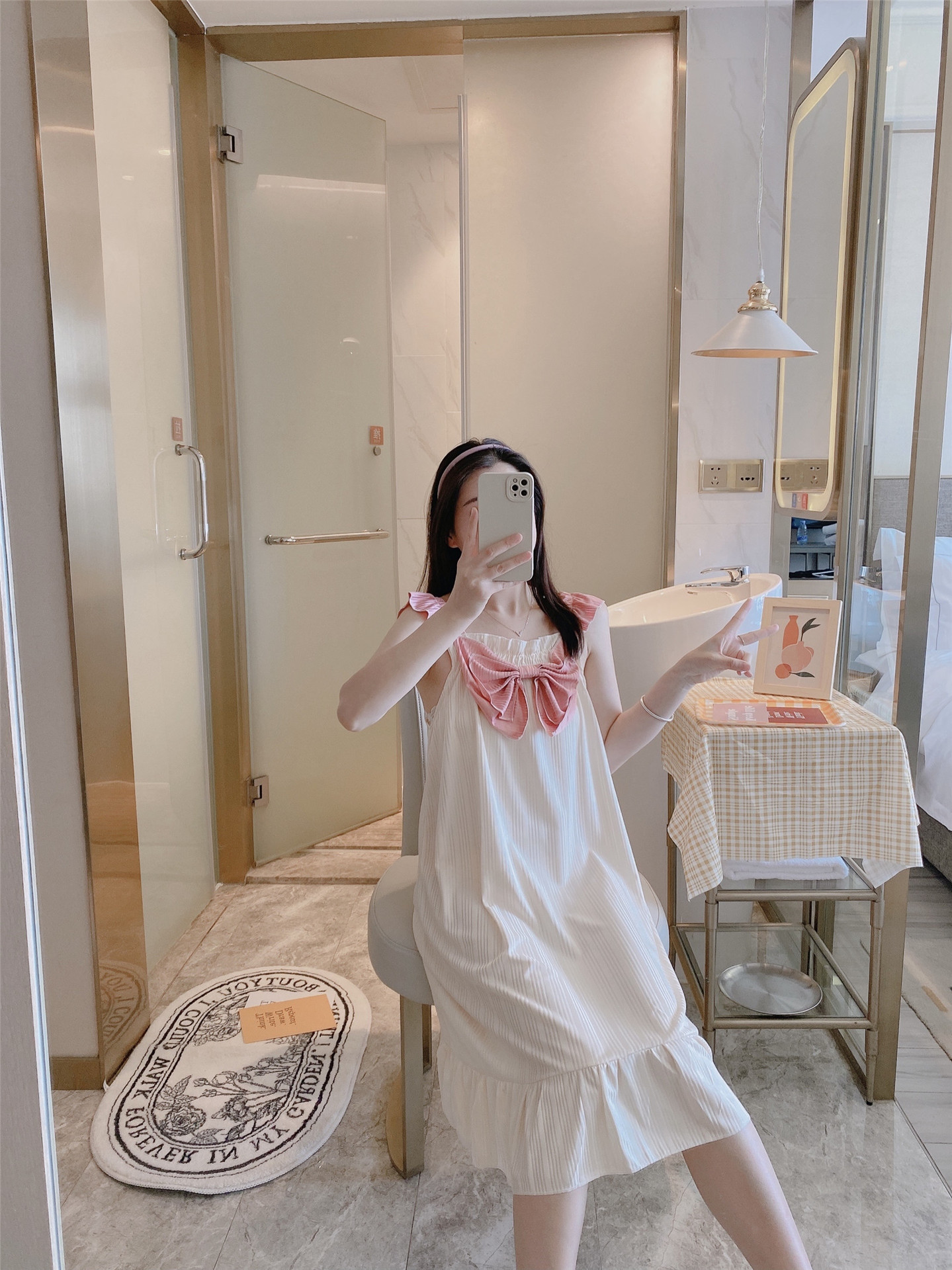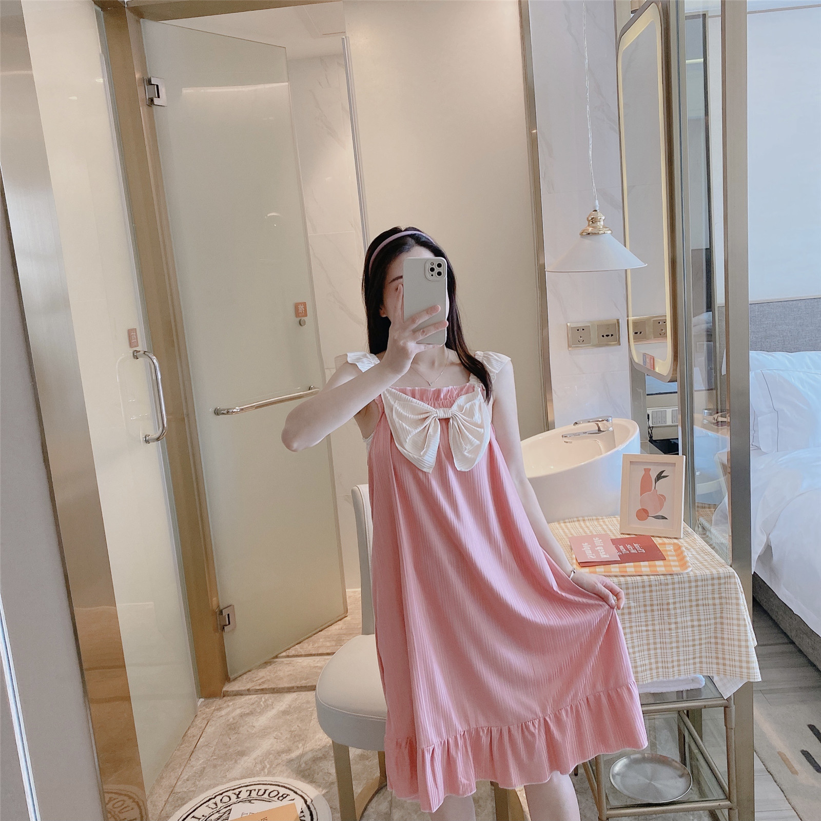2023 camisón de verano de las mujeres suspender pijamas dulce lindo arco estudiante en línea rojo ins estilo desgaste del hogar de verano