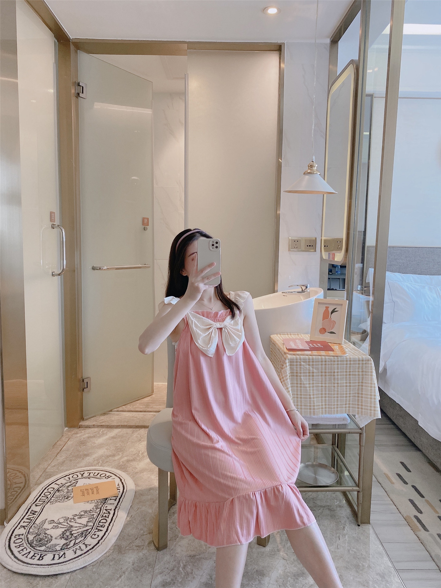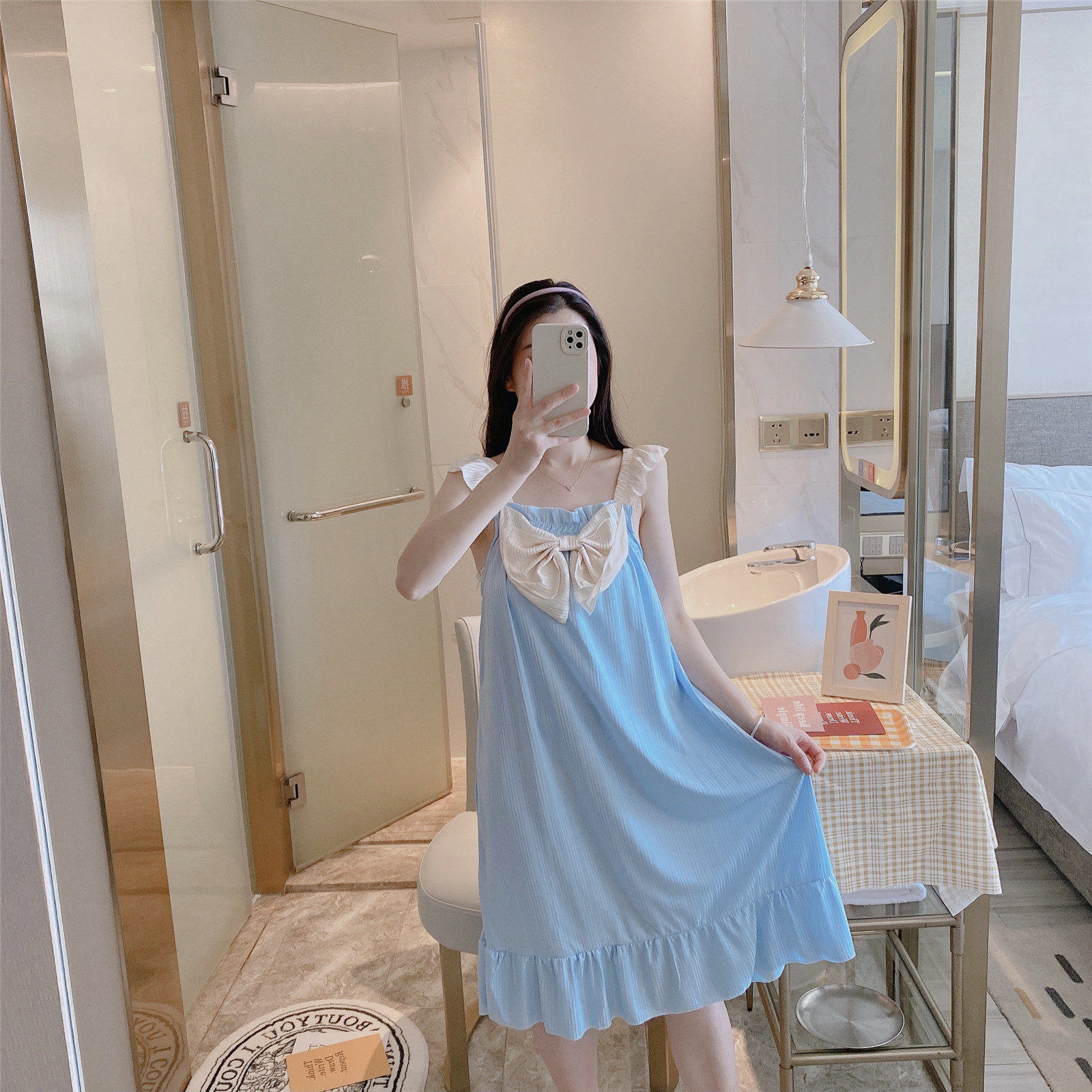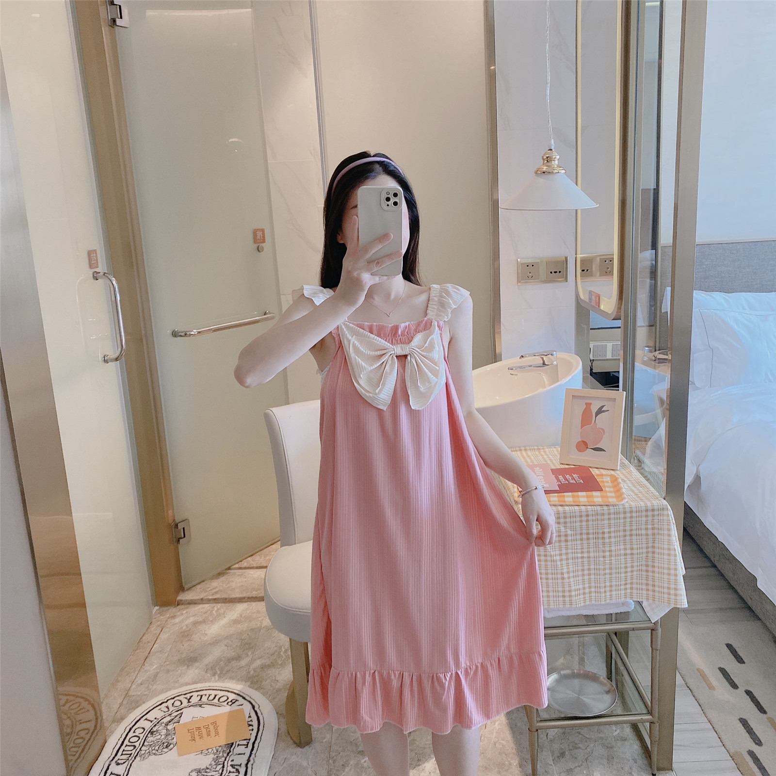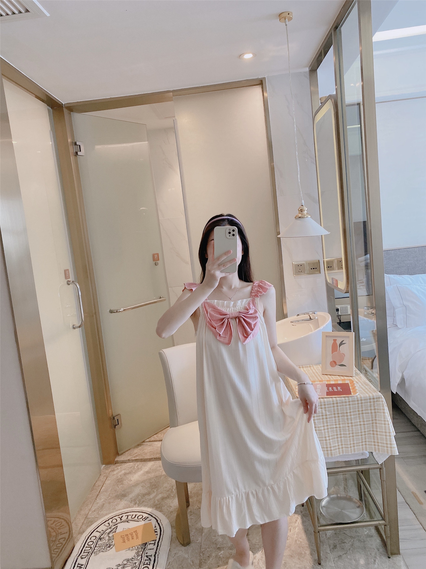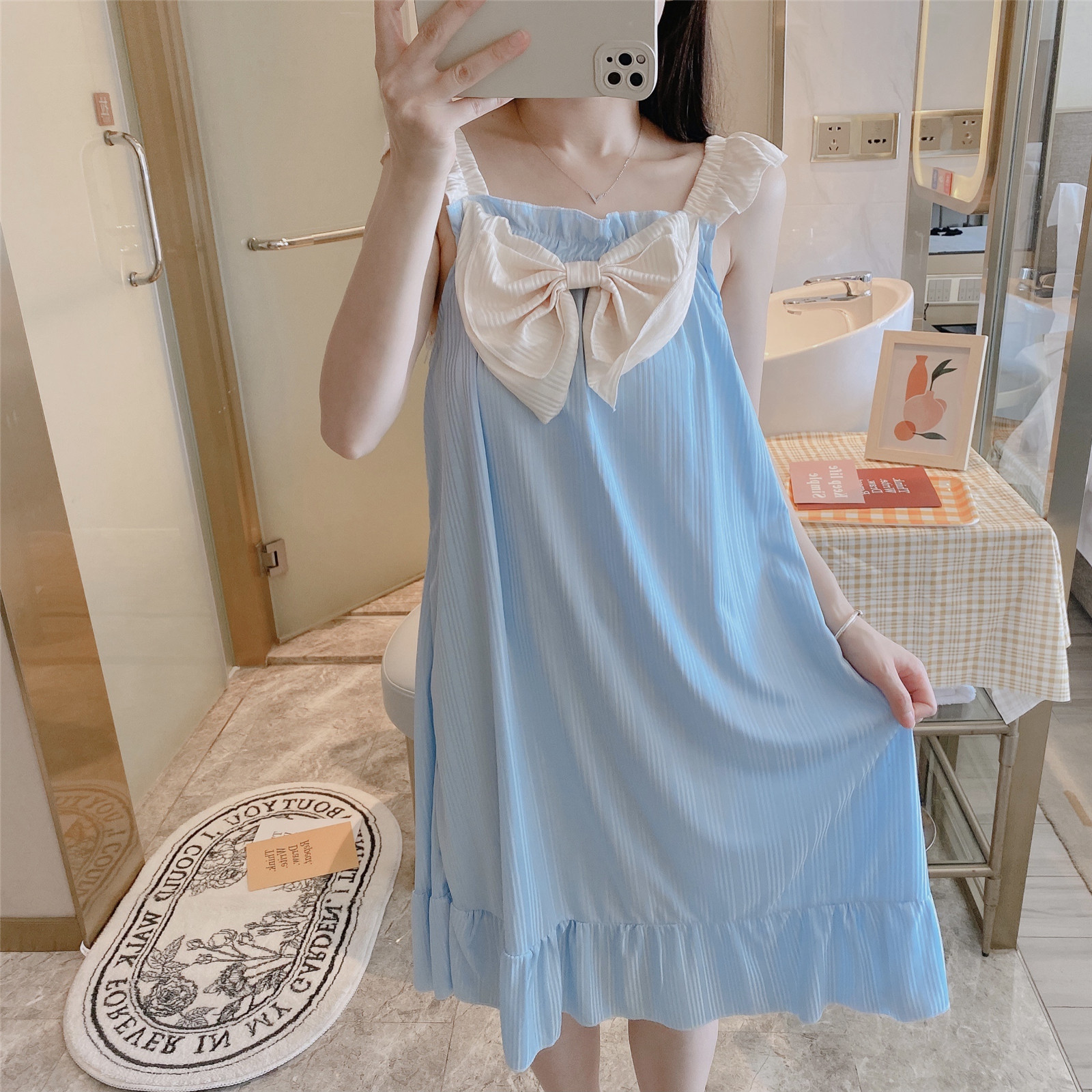 2023 camisón de verano de las mujeres suspender pijamas dulce lindo arco estudiante en línea rojo ins estilo desgaste del hogar de verano