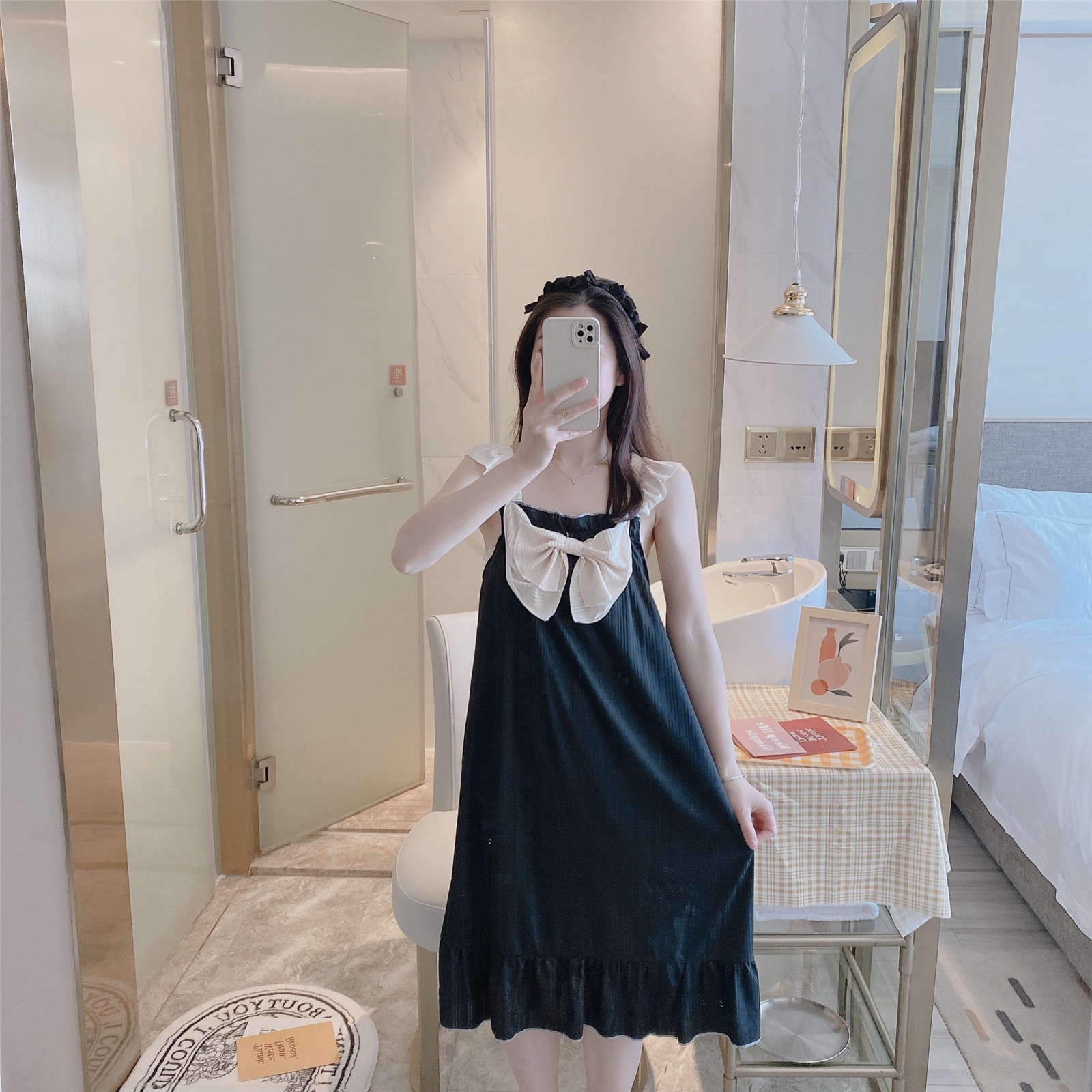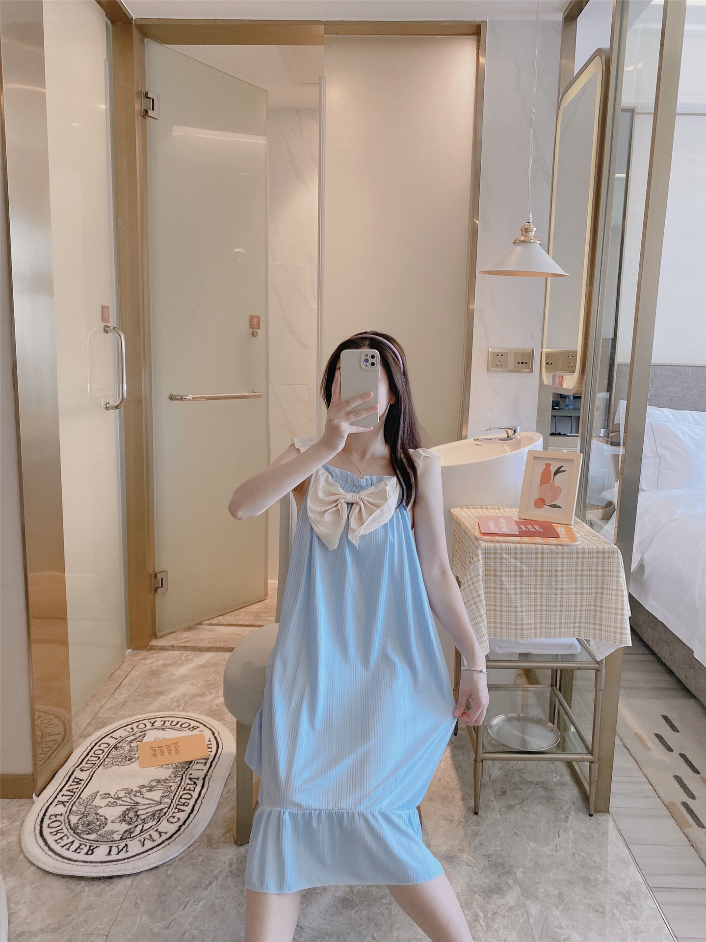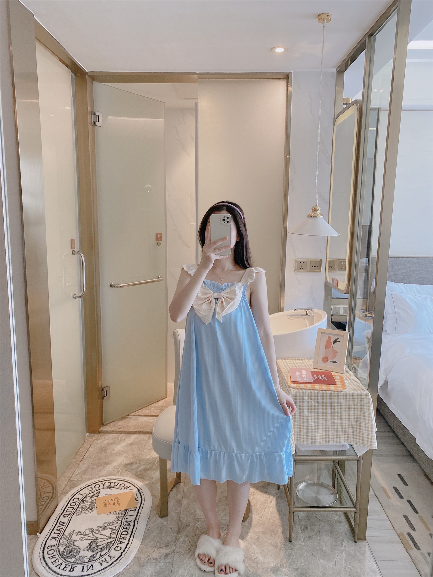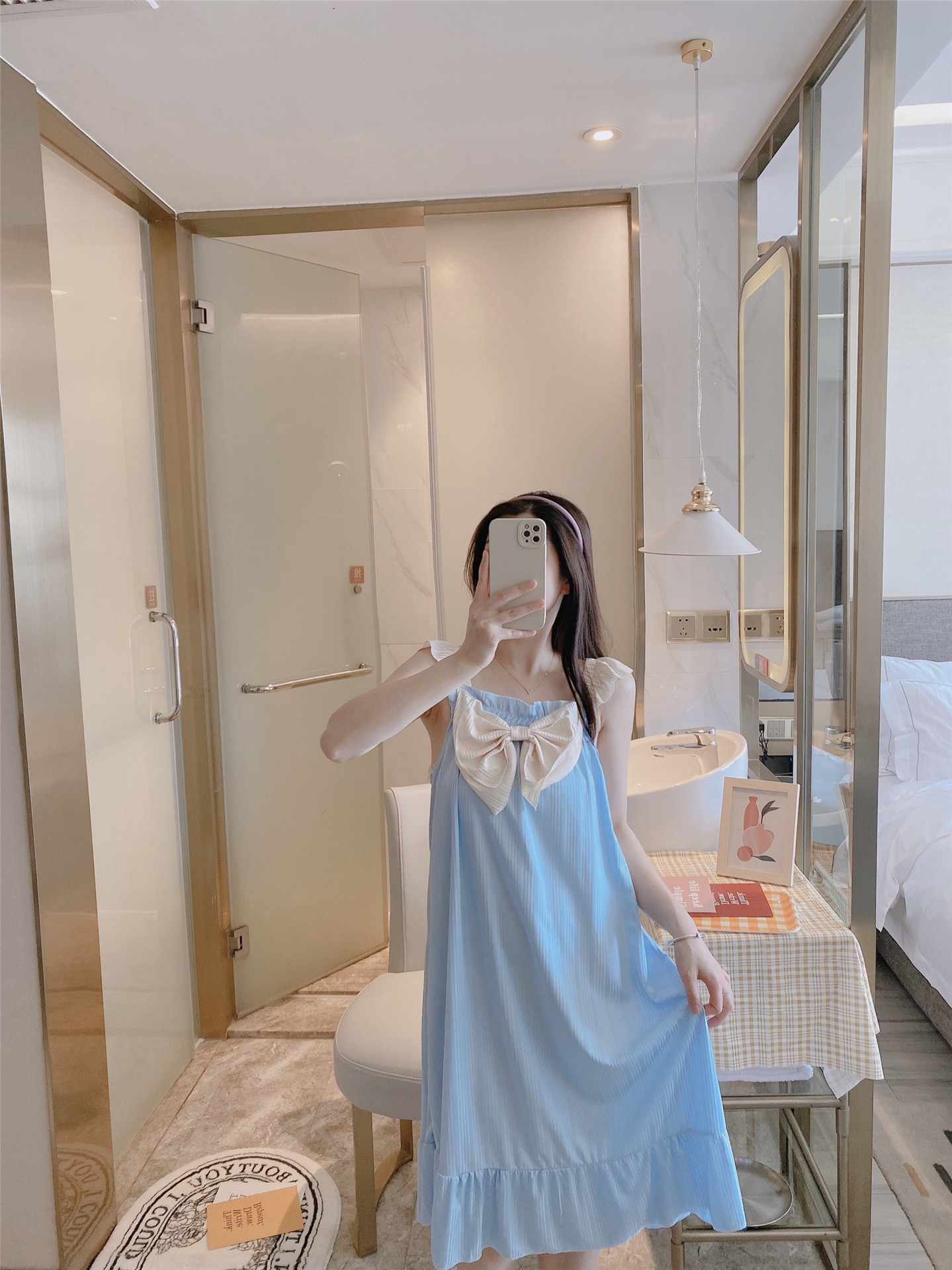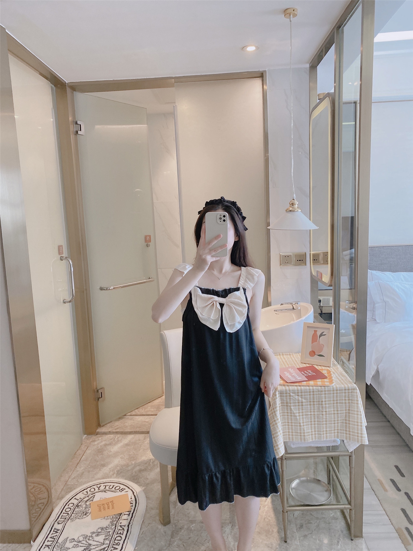 2023 camisón de verano de las mujeres suspender pijamas dulce lindo arco estudiante en línea rojo ins estilo desgaste del hogar de verano