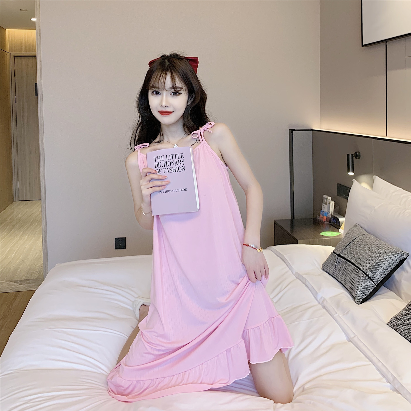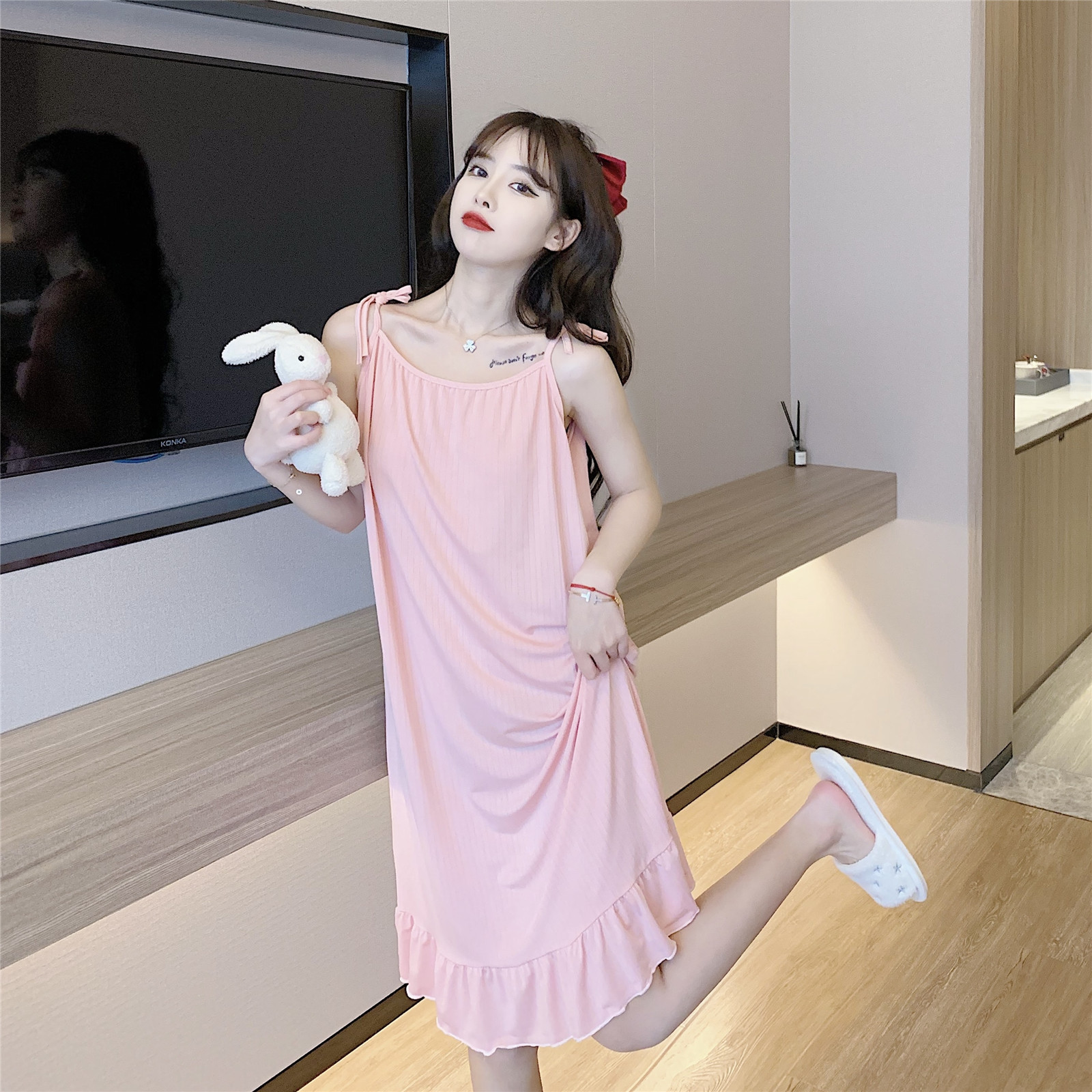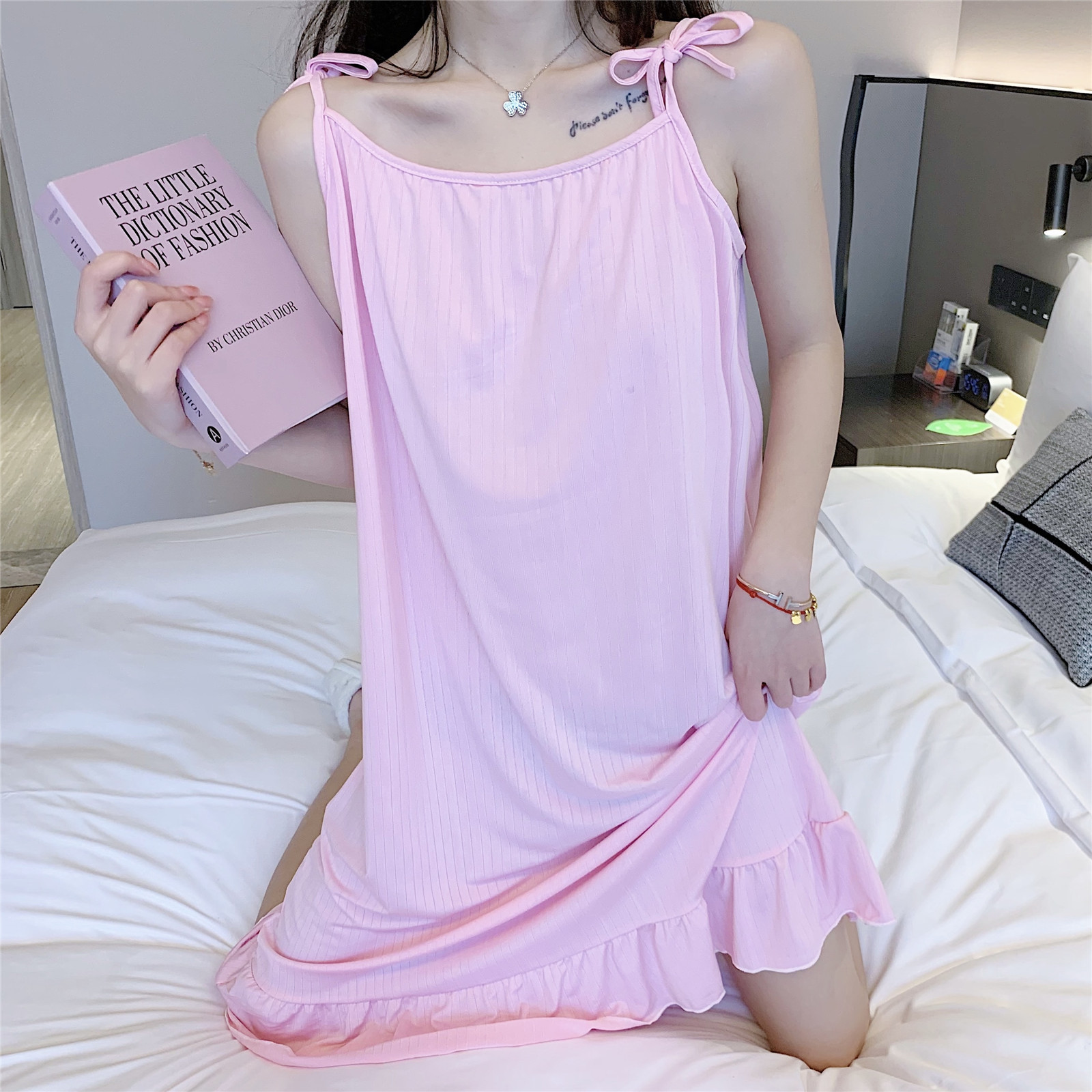 Directo de fábrica del camisón verano puro deseo estilo arco Correa pijamas mujeres japonés Dulce fino sedoso desgaste hogar