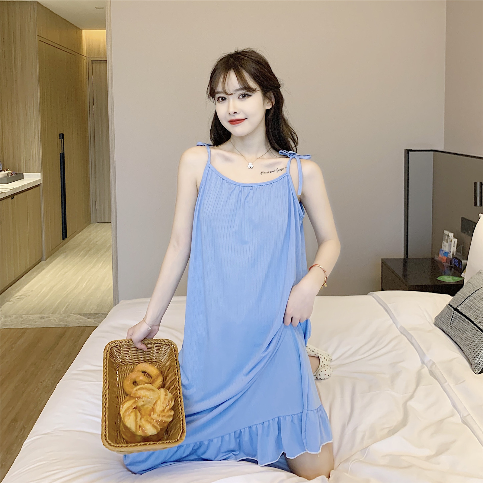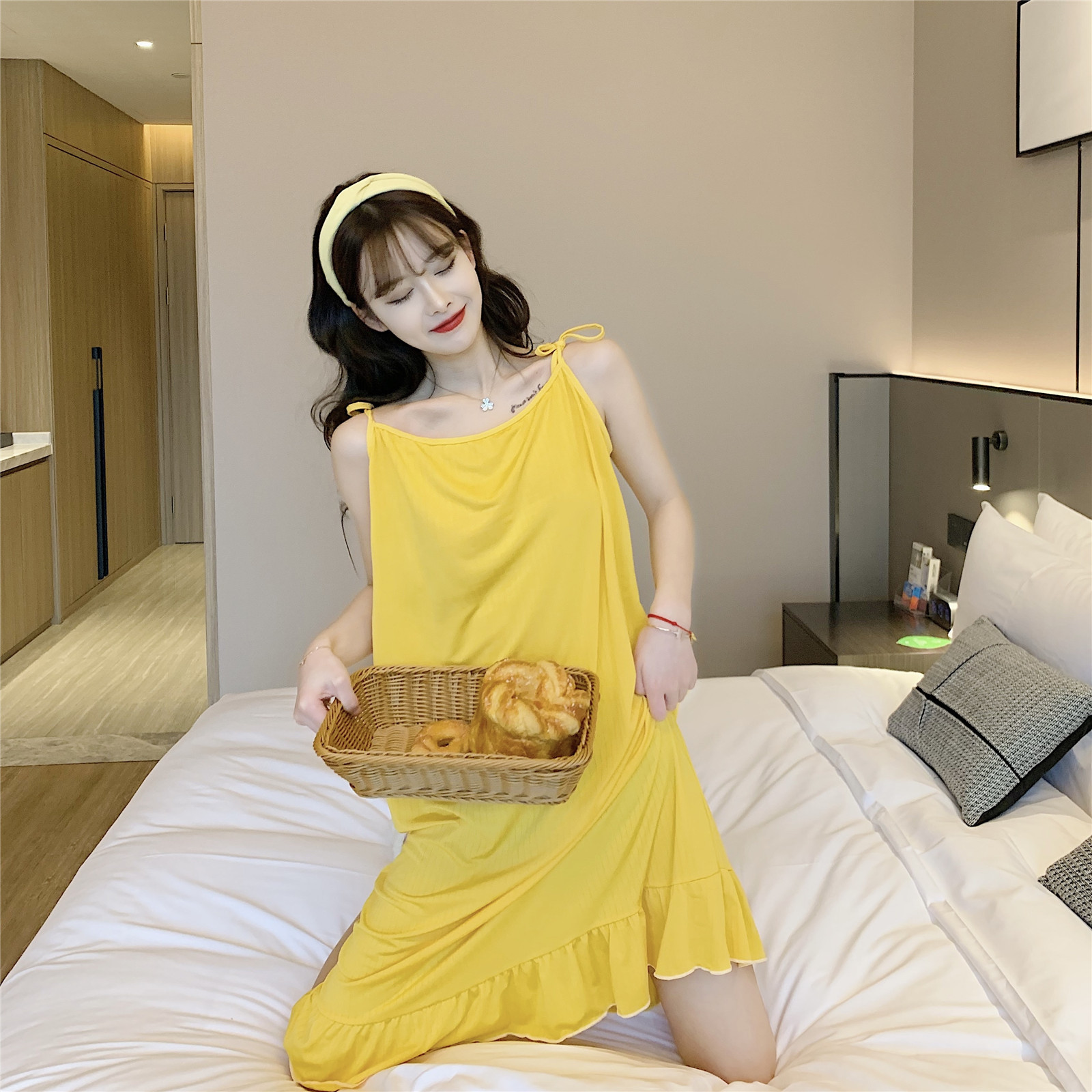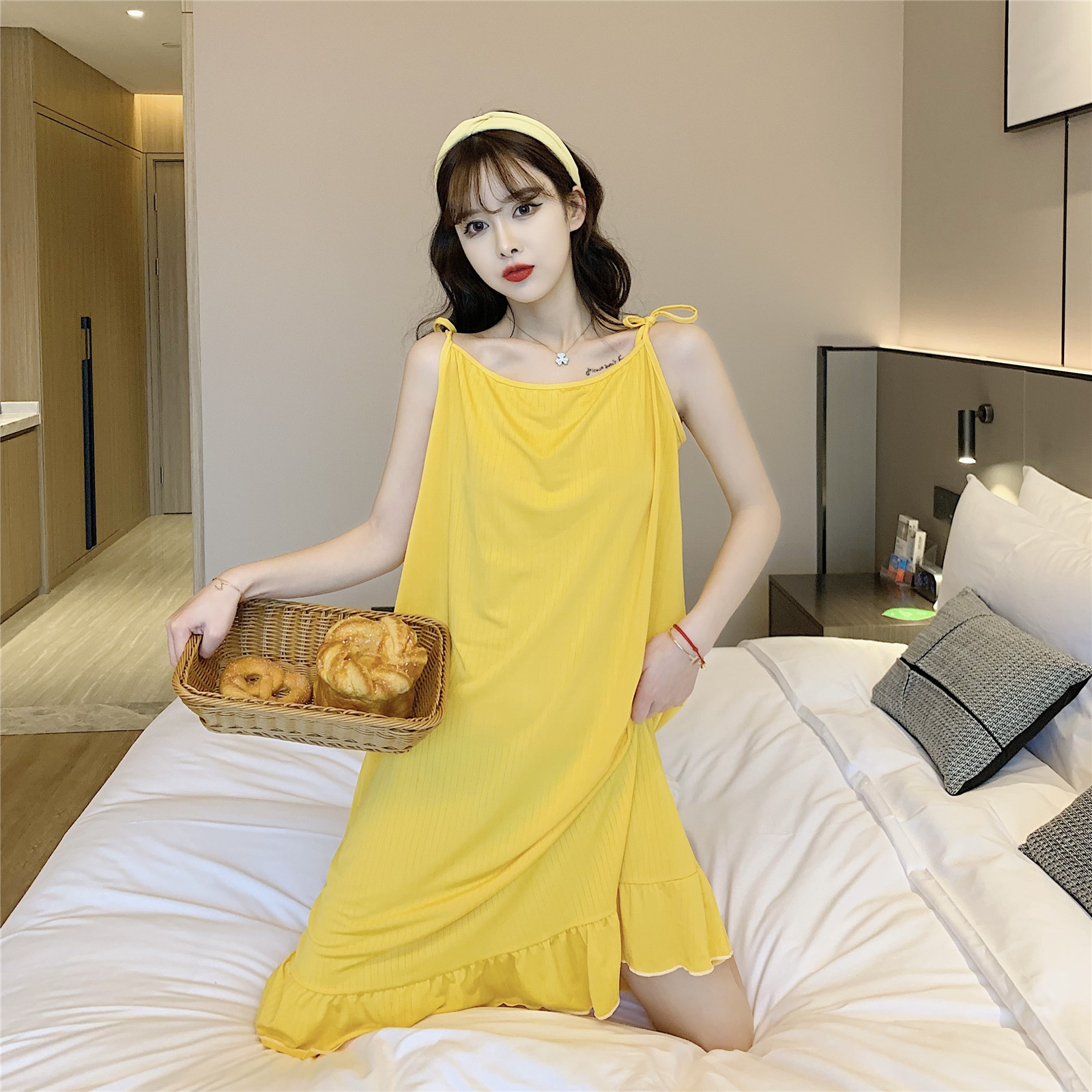 Directo de fábrica del camisón verano puro deseo estilo arco Correa pijamas mujeres japonés Dulce fino sedoso desgaste hogar