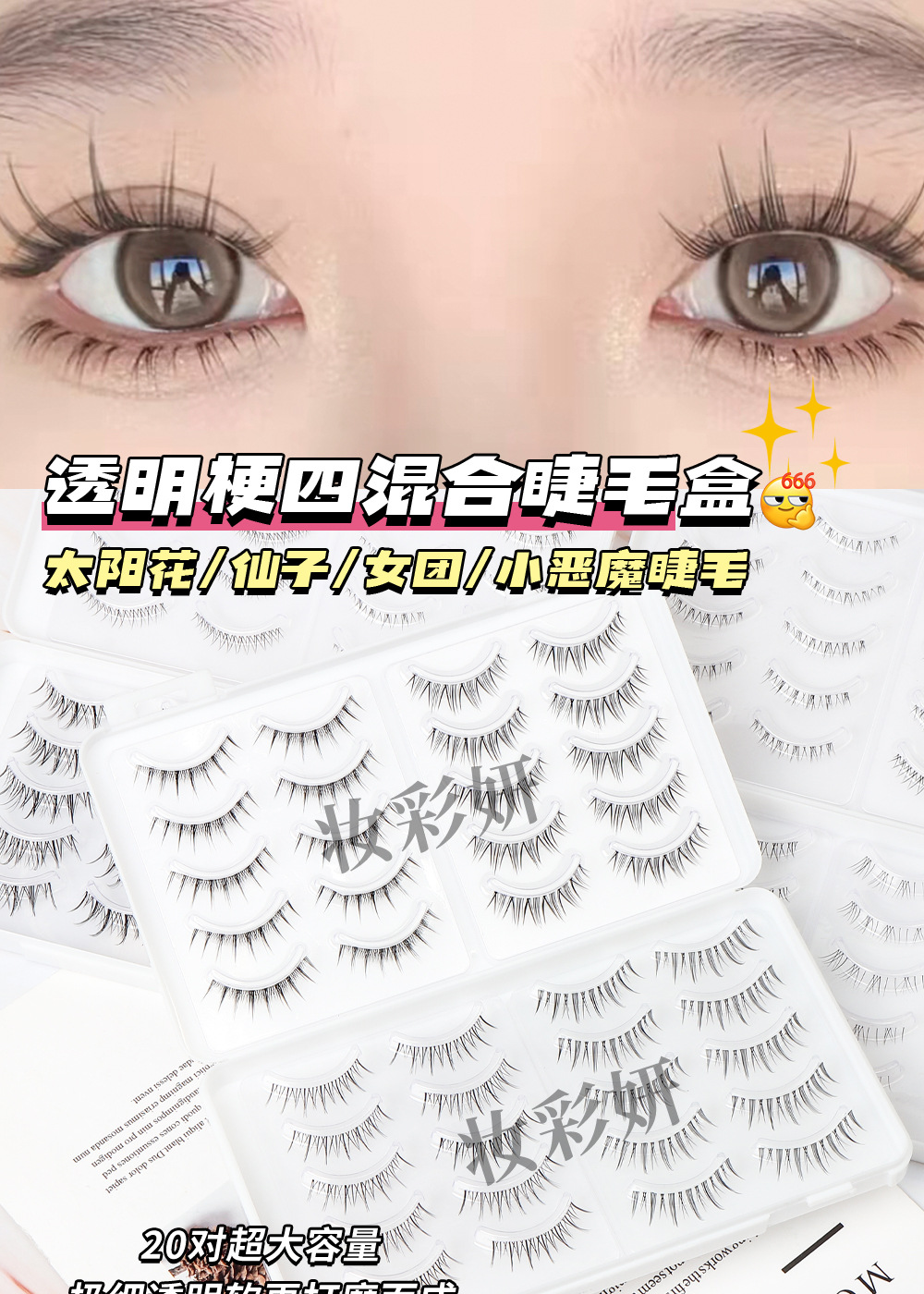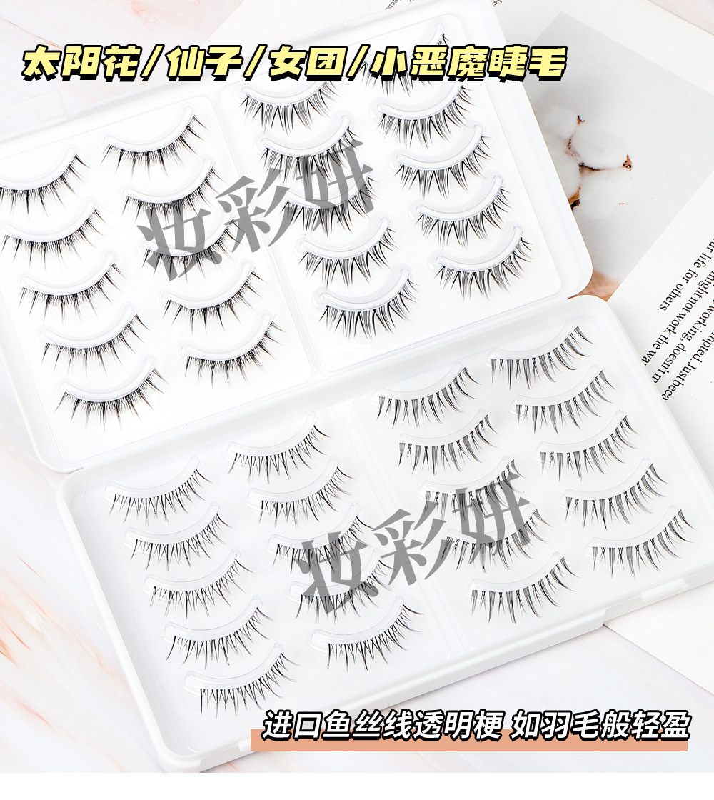 20 pares de pestañas con tallos ultrafinos transparentes, maquillaje tailandés desordenado, grupo de chicas, diablita, ojos de manga, pestañas postizas de tira completa de aspecto natural
