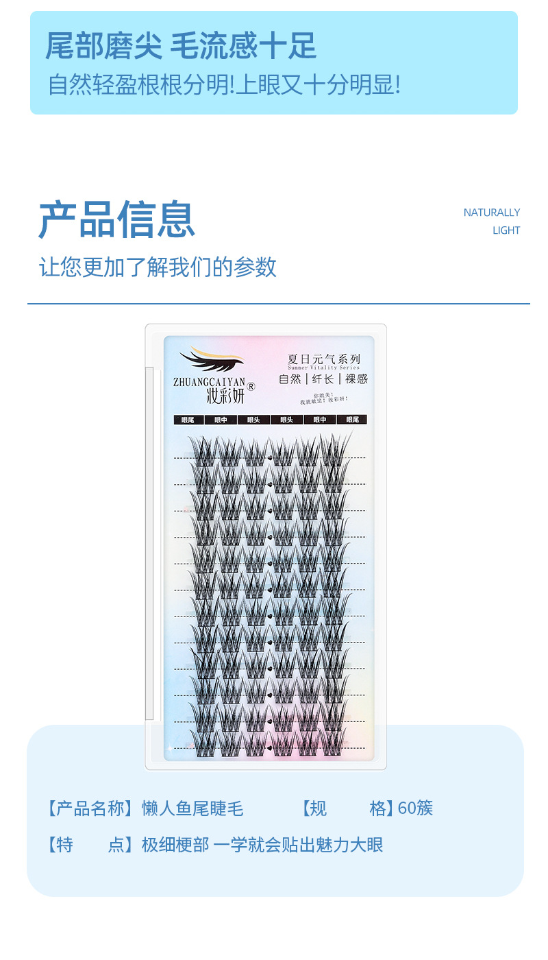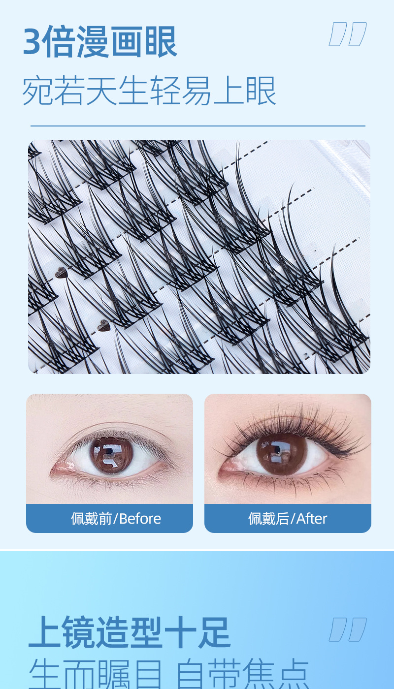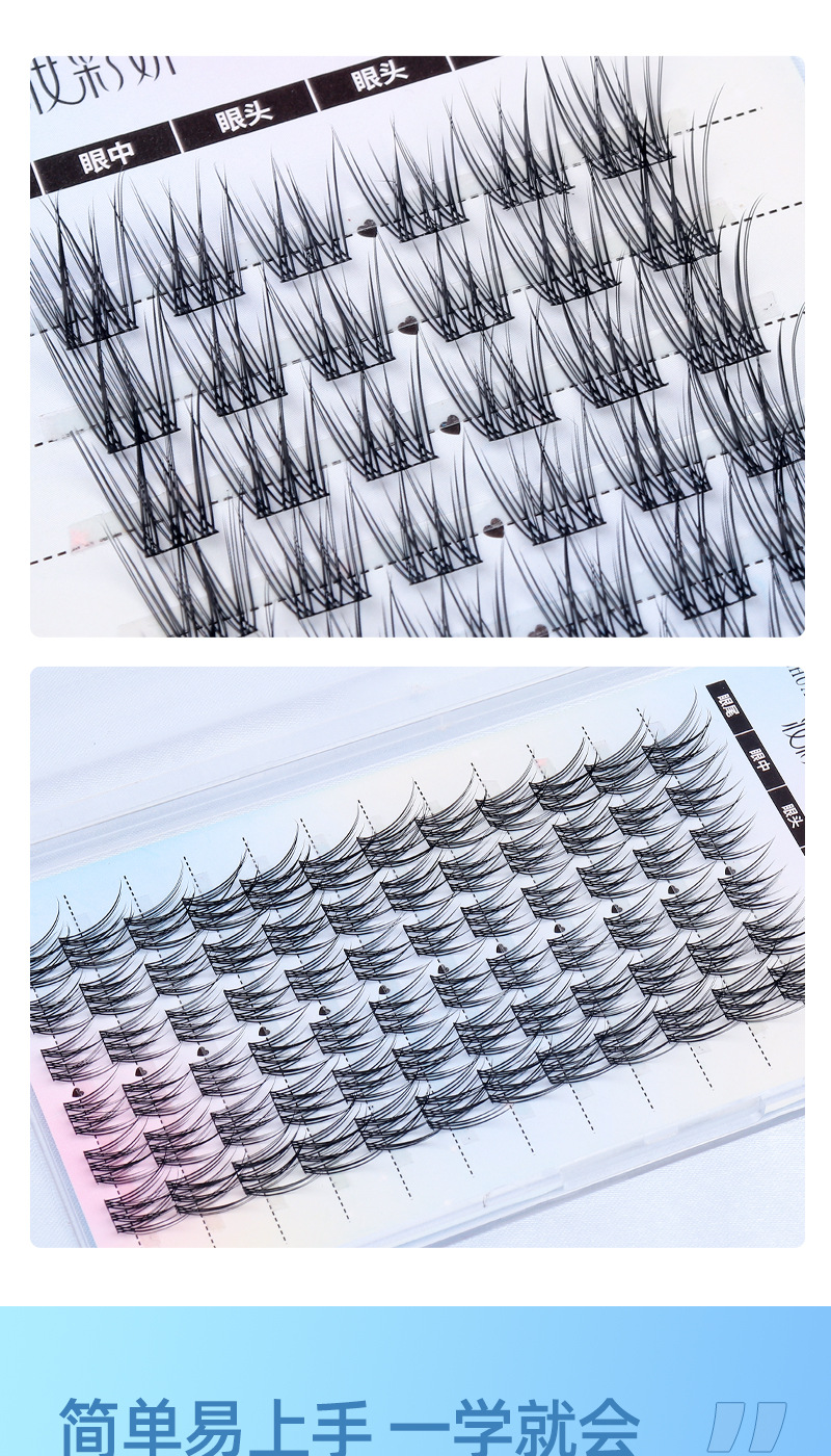 Perezosa cola de pescado gradiente zorro línea de pestañas falsas de gran volumen trilogía diablo ultrafinos terrier natural un solo clúster cómic pestañas