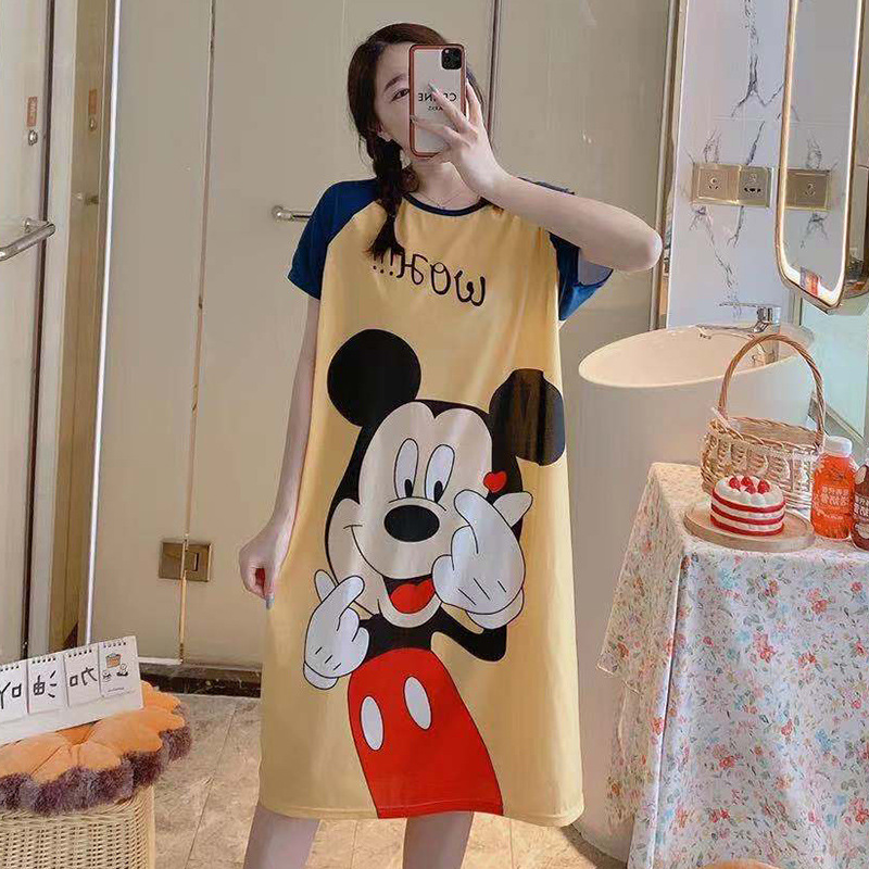 Pijamas de las mujeres de verano manga corta transpirable de dibujos animados delgada camisón suelto perezoso de las mujeres de longitud media de la fábrica al por mayor puede ser enviado en nombre