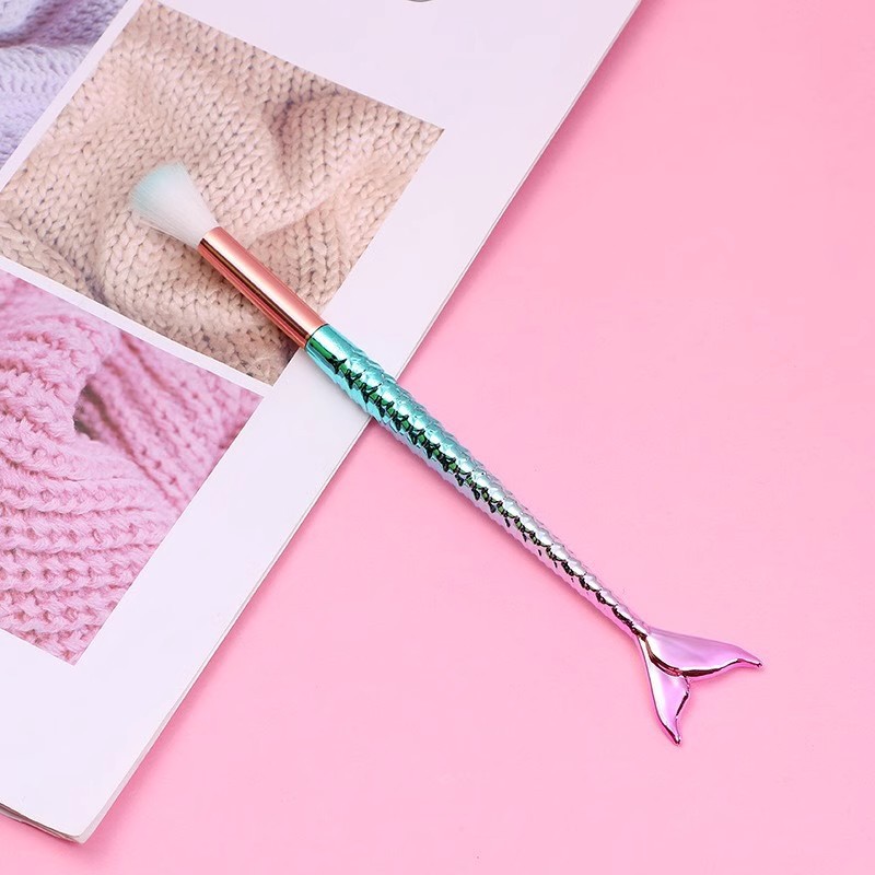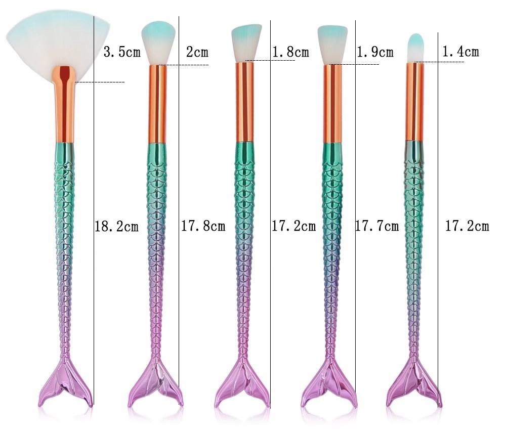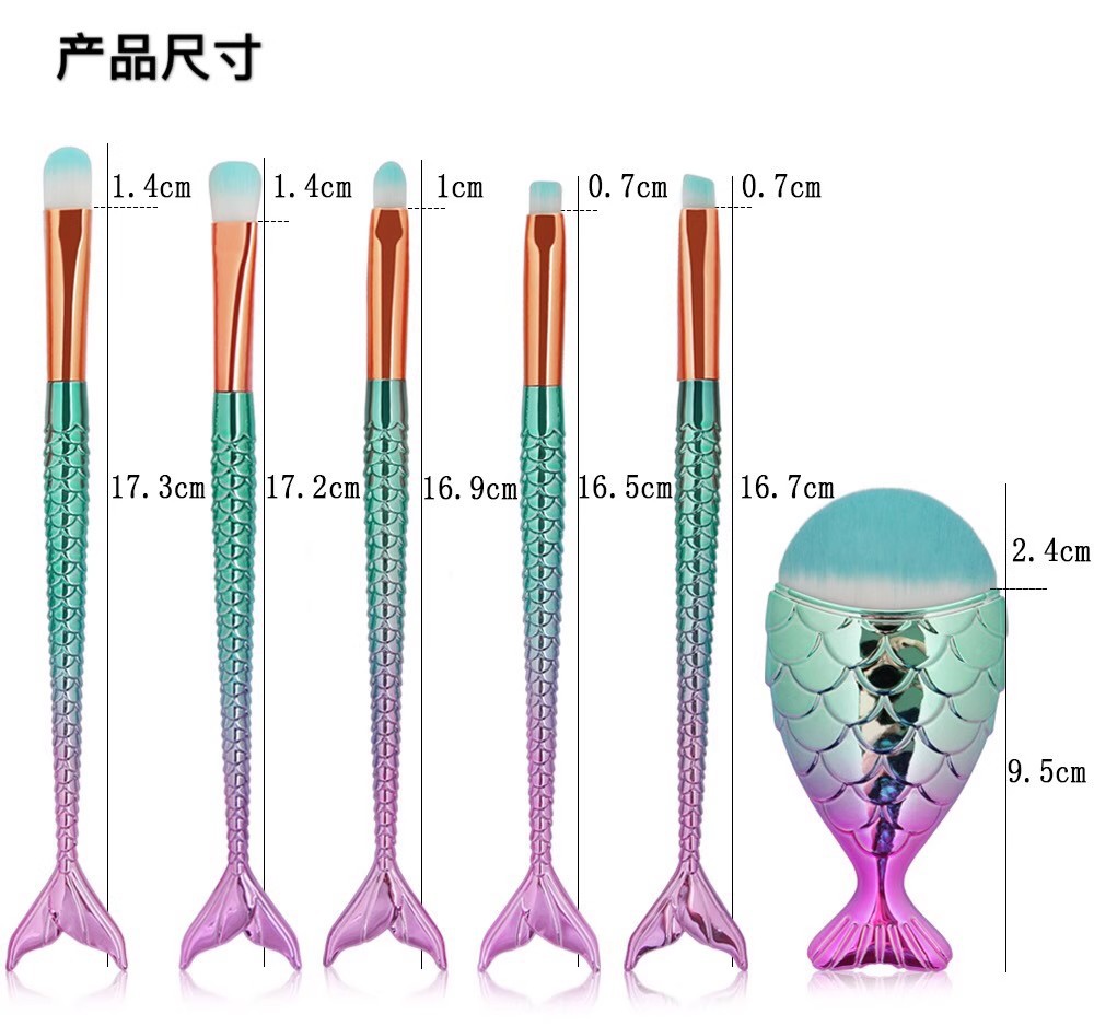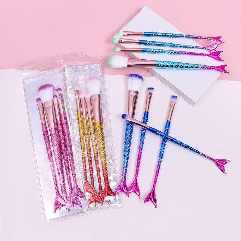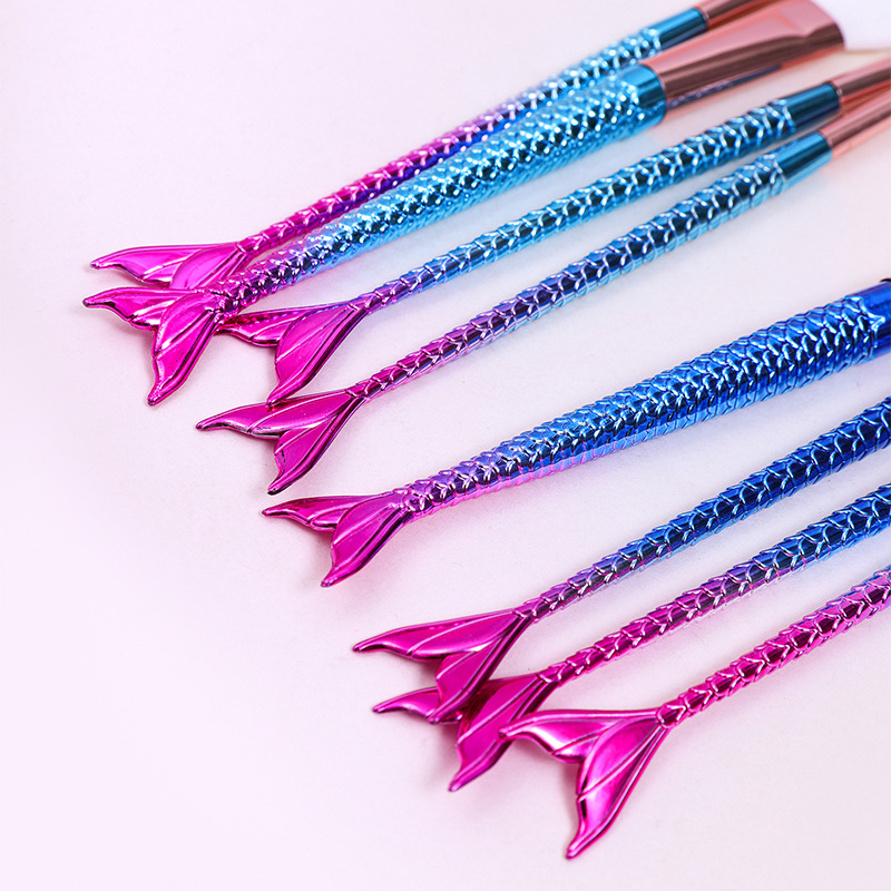 Set de brochas de maquillaje de sirena transfronterizo con color degradado para ojos, incluye brocha para polvos, brocha para sombras de ojos, brocha para cejas, brocha de maquillaje en forma de cola de pez.