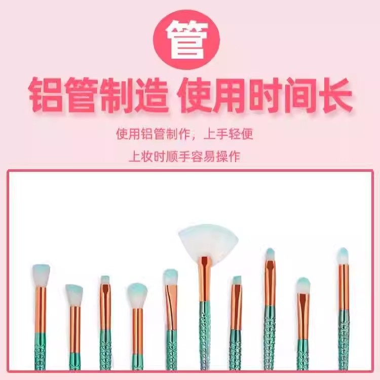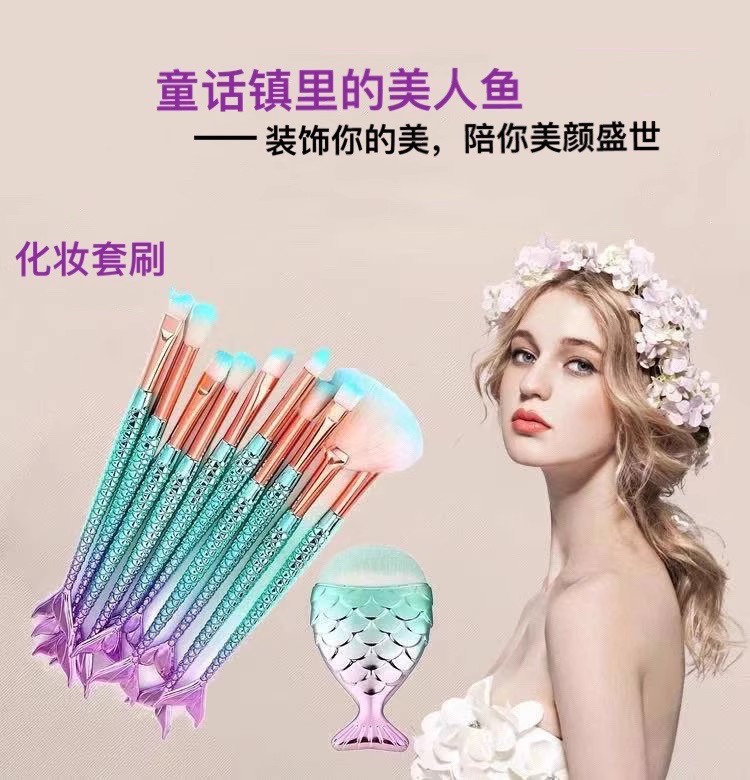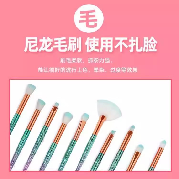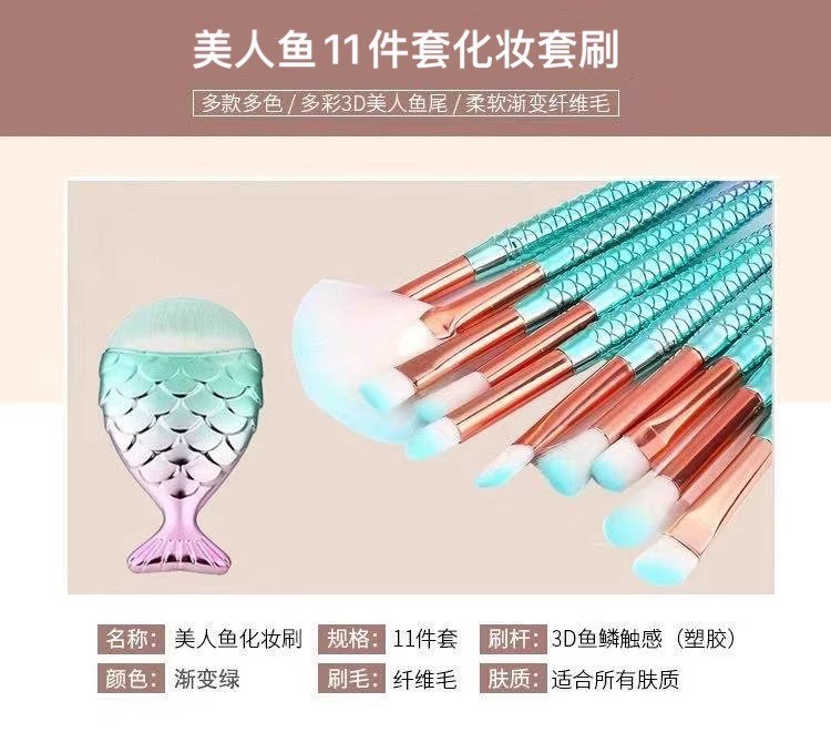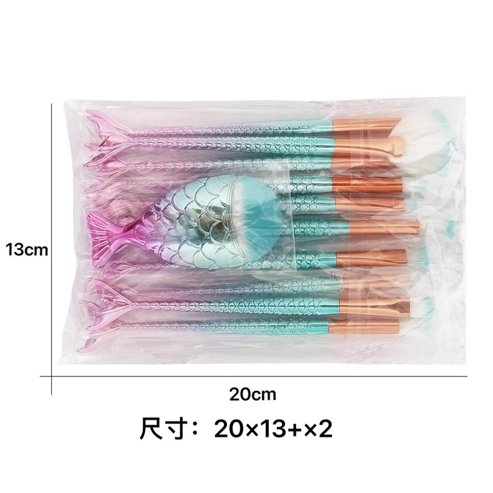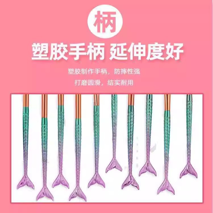 Set de brochas de maquillaje de sirena transfronterizo con color degradado para ojos, incluye brocha para polvos, brocha para sombras de ojos, brocha para cejas, brocha de maquillaje en forma de cola de pez.