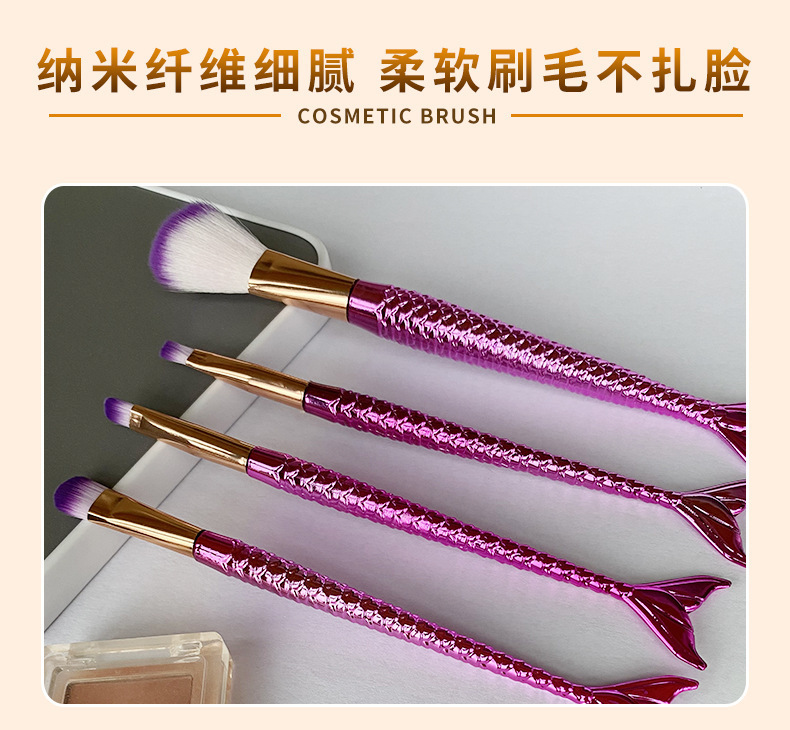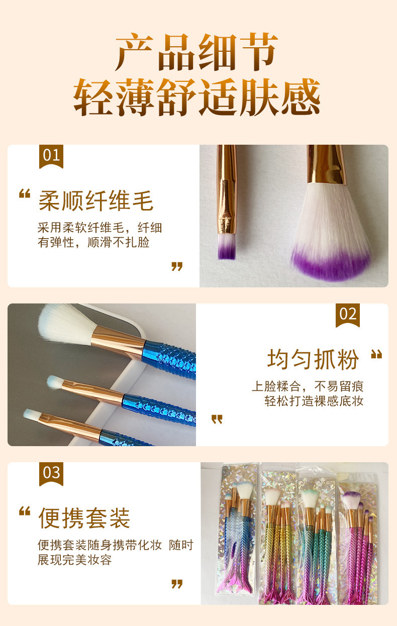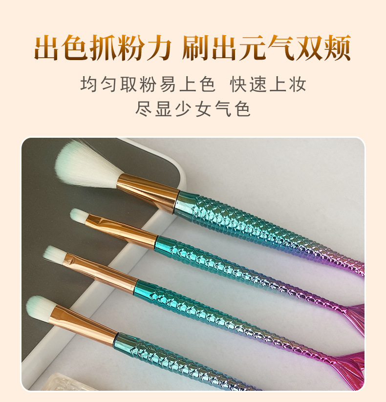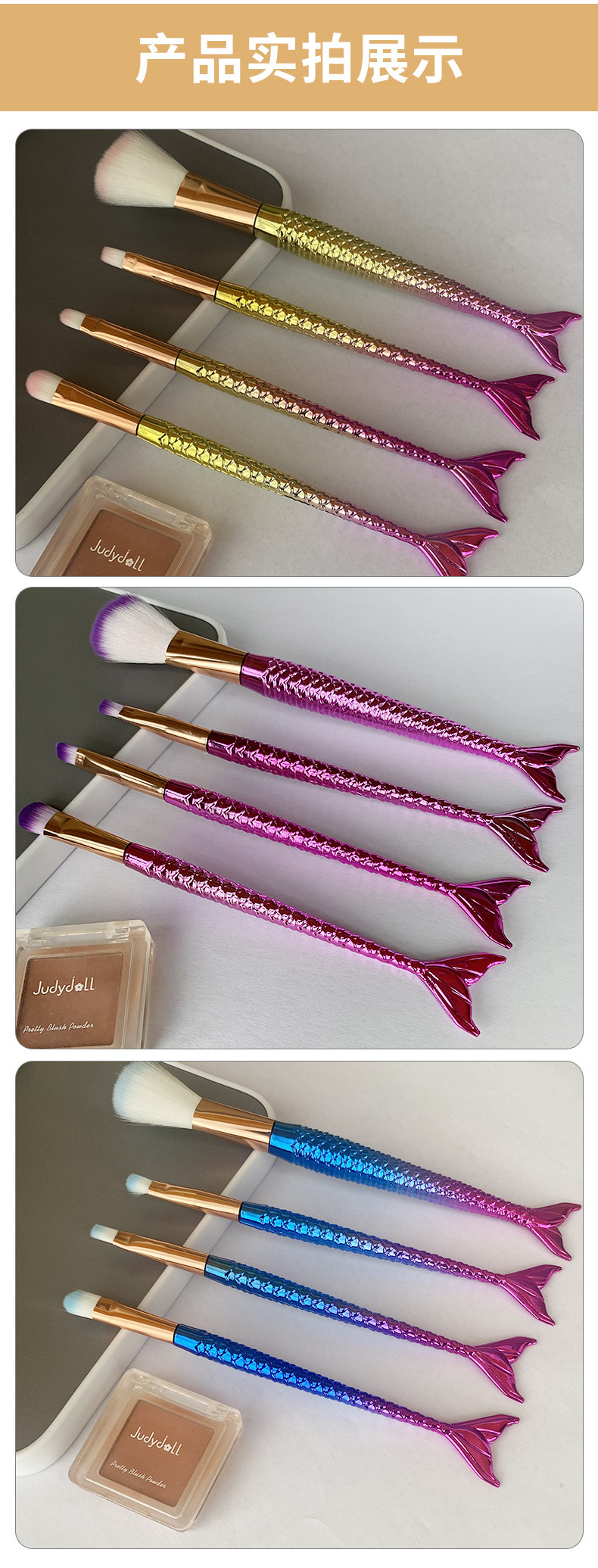 Sirena graduada cepillo de maquillaje de ojos bifurcado tipo cola de pez colorido pincel de teñido de pintura en polvo set de productos de venta calientes transfronterizos