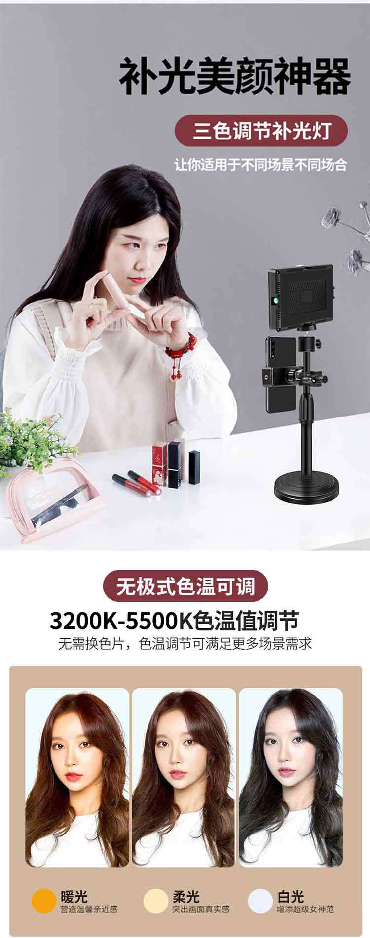 Lámpara de disparo profesional, lámpara de relleno especial para la fotografía de transmisión en vivo, lámpara de relleno LED tricolor, lámpara de mesa plana suave