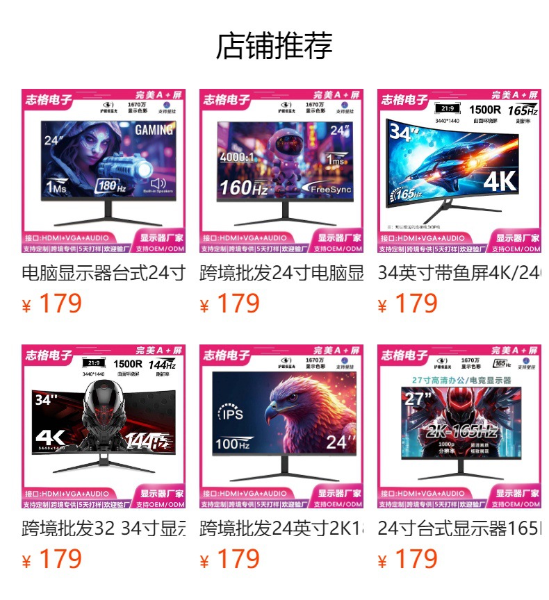 Transfronterizo al por mayor 24 pulgadas 2K180Hz monitor de computadora 27 pulgadas E-Sports HD 27 pulgadas pantalla curva ultrafina IPS