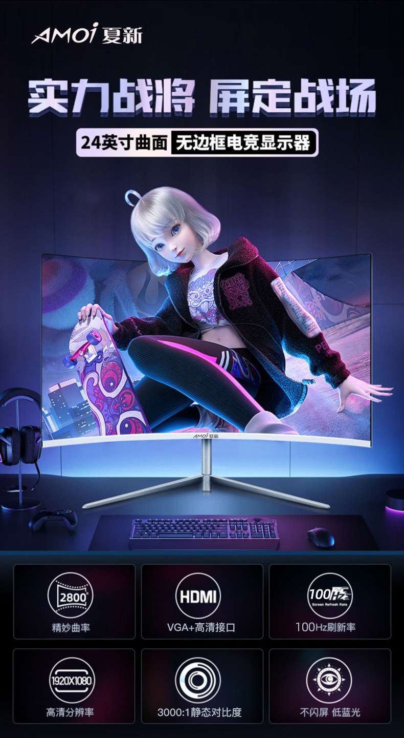 24 pulgadas curvas blancas [Sin borde - 100HZ] - estándar oficial