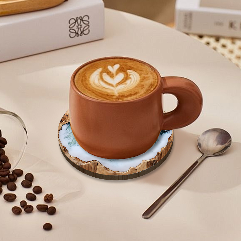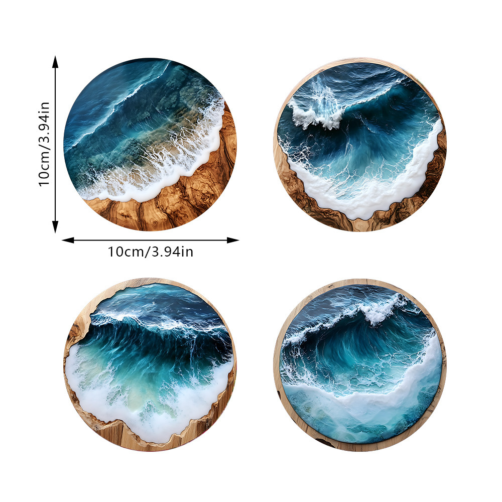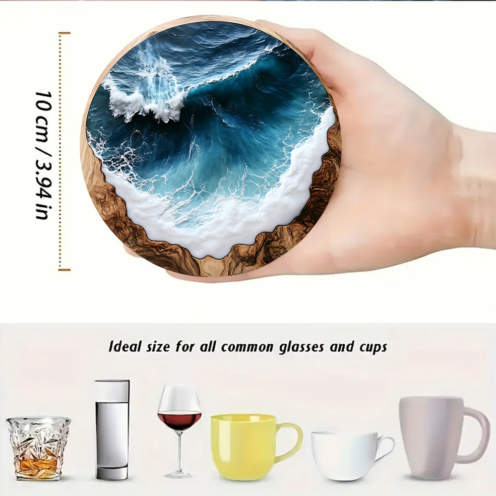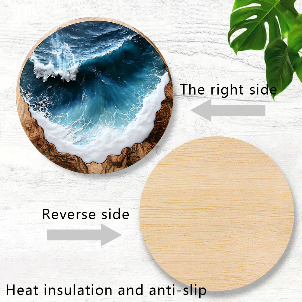 Nuevo estilo transfronterizo azul océano redondo de madera posavasos café en casa fiesta mesa de vestir posavasos mantel