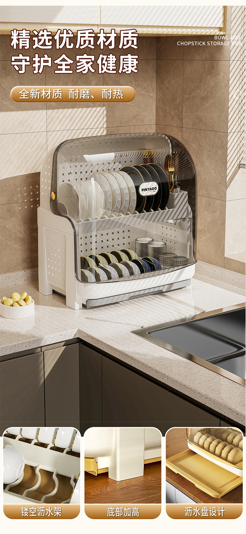 Estantes de cocina encimera de gran capacidad para el hogar, vajilla multifuncional, vajilla, almacenamiento, estante para platos, estante para drenaje de platos