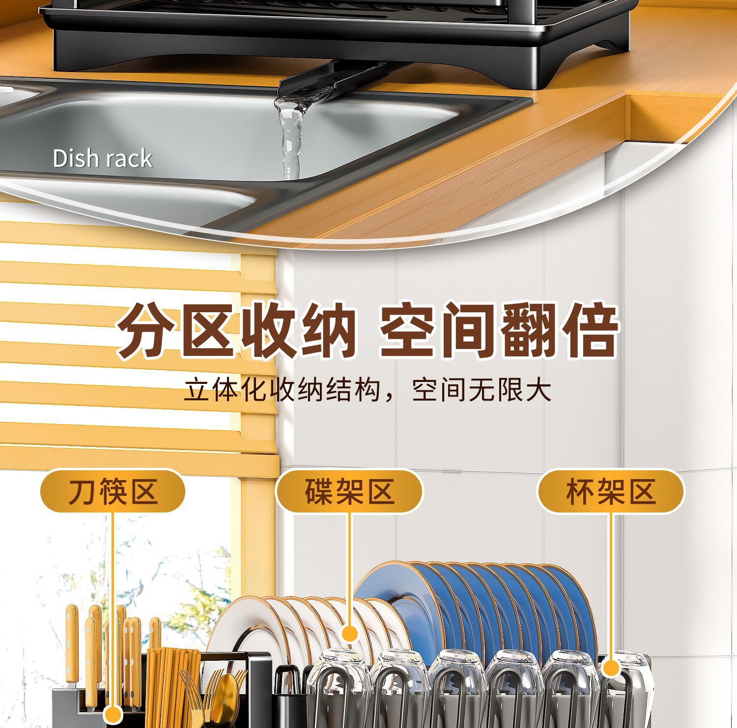 Cocina transfronteriza Estante para platos multifunción Fregadero de desvío, vajilla, vajilla, estante de almacenamiento para platos, encimera, estante para drenaje, estante para platos