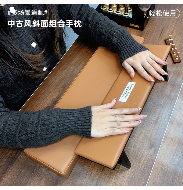 Cojín de mano conjunto de cuero mejorado confortable plano inclinado combinación almohadilla antideslizante soporte de mano de estilo ruso para usar pegamento de lámpara de horno libre