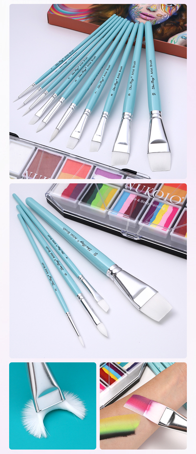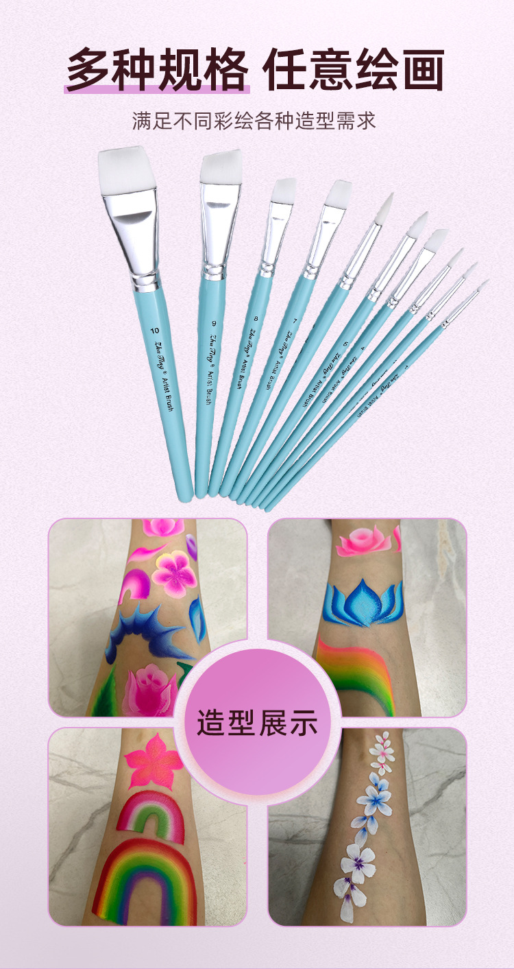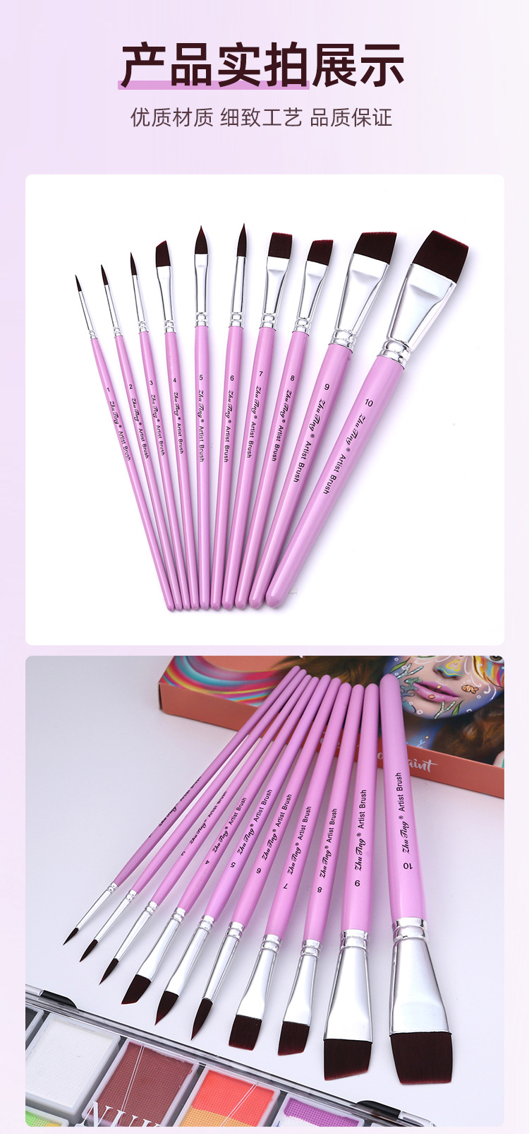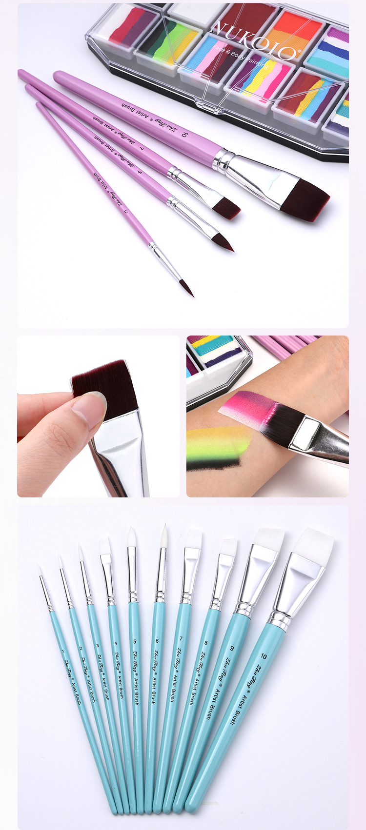Ventas transfronterizas calientes de pintura facial cepillo de teñido de color de agua cepillo de línea de pincel de dibujo profesional de 10 piezas