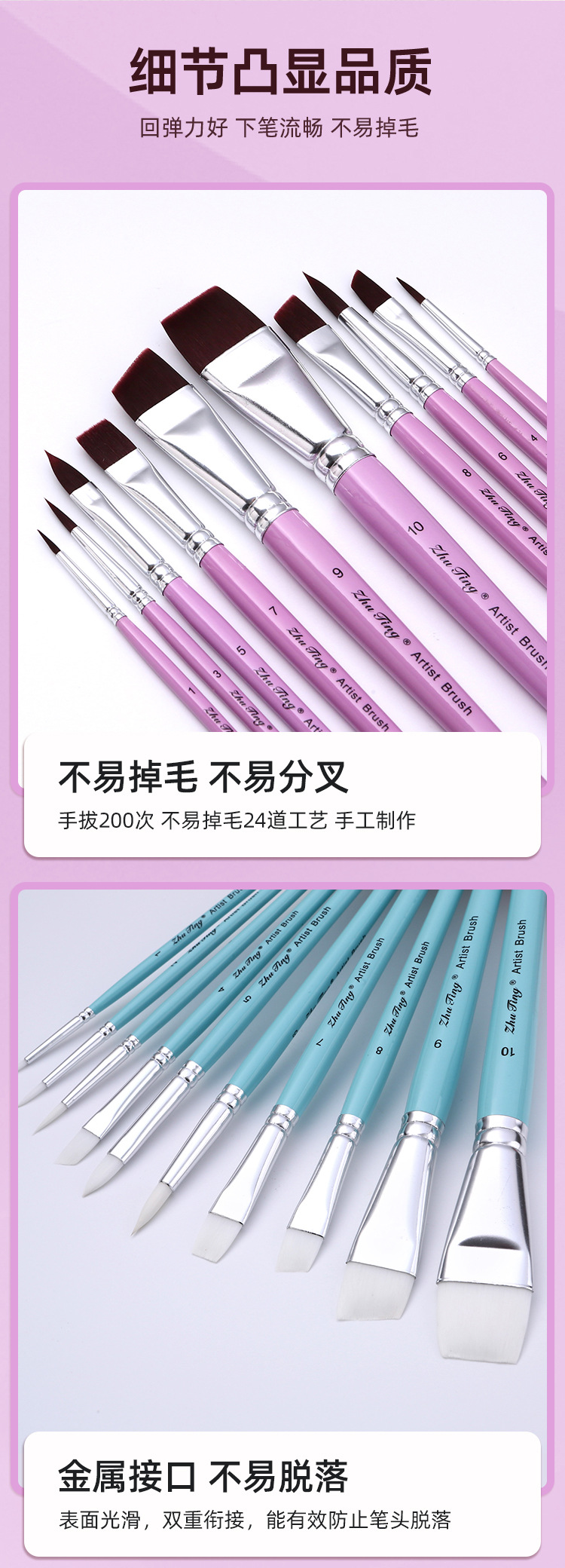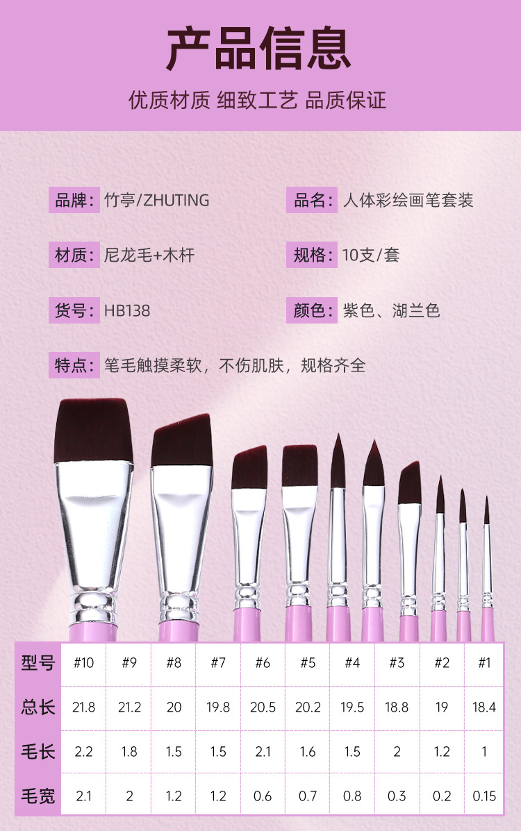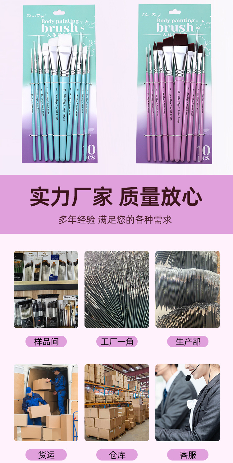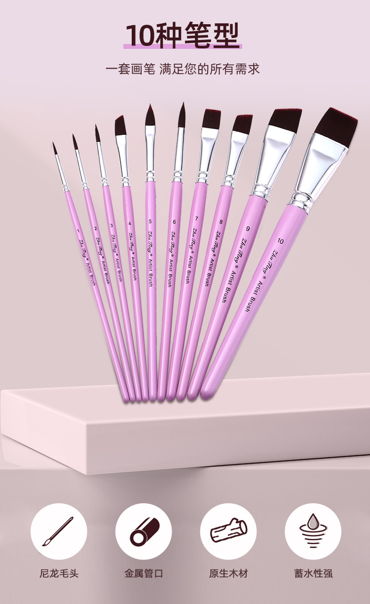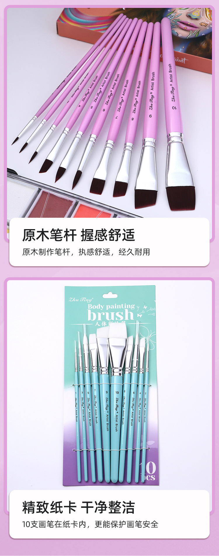 Ventas transfronterizas calientes de pintura facial cepillo de teñido de color de agua cepillo de línea de pincel de dibujo profesional de 10 piezas